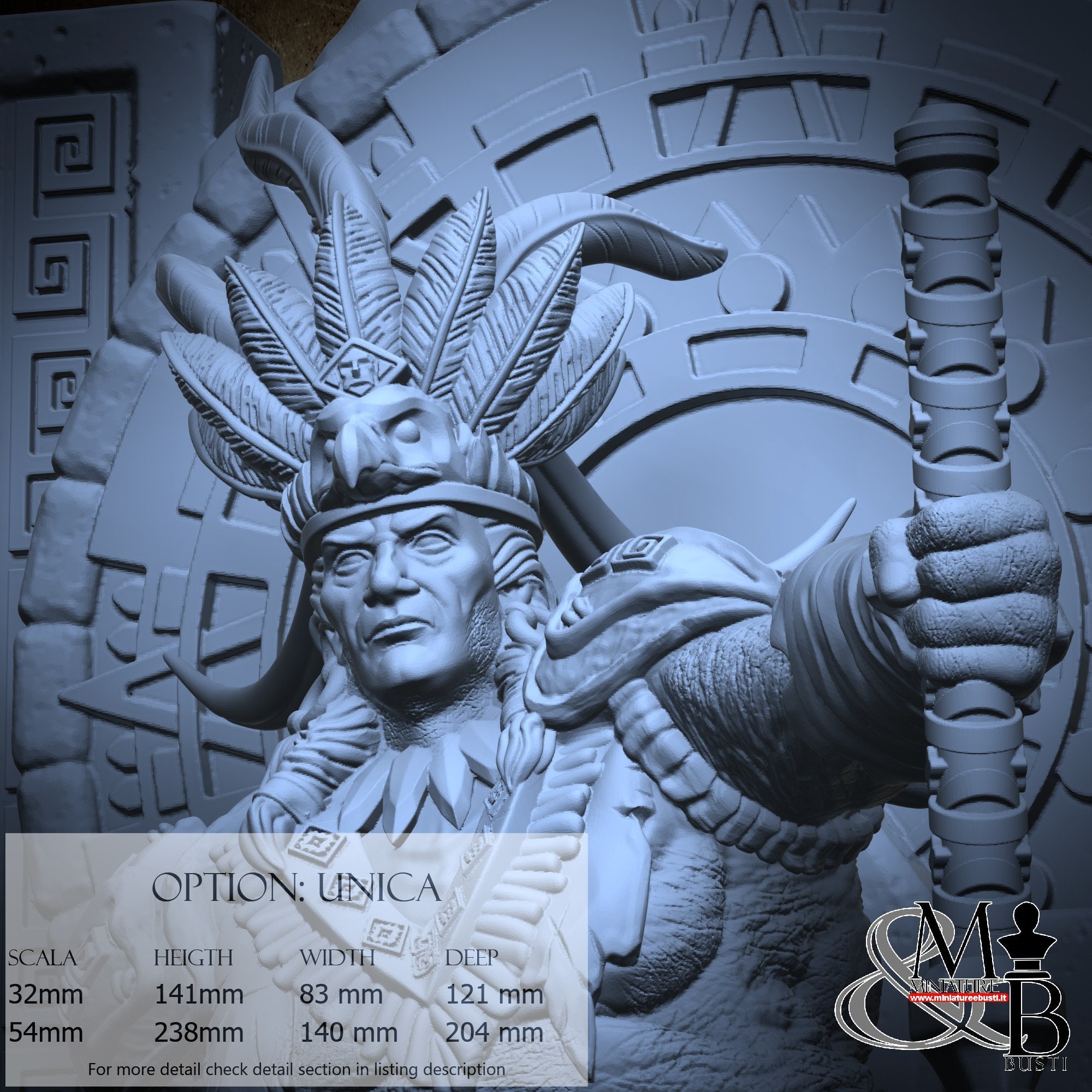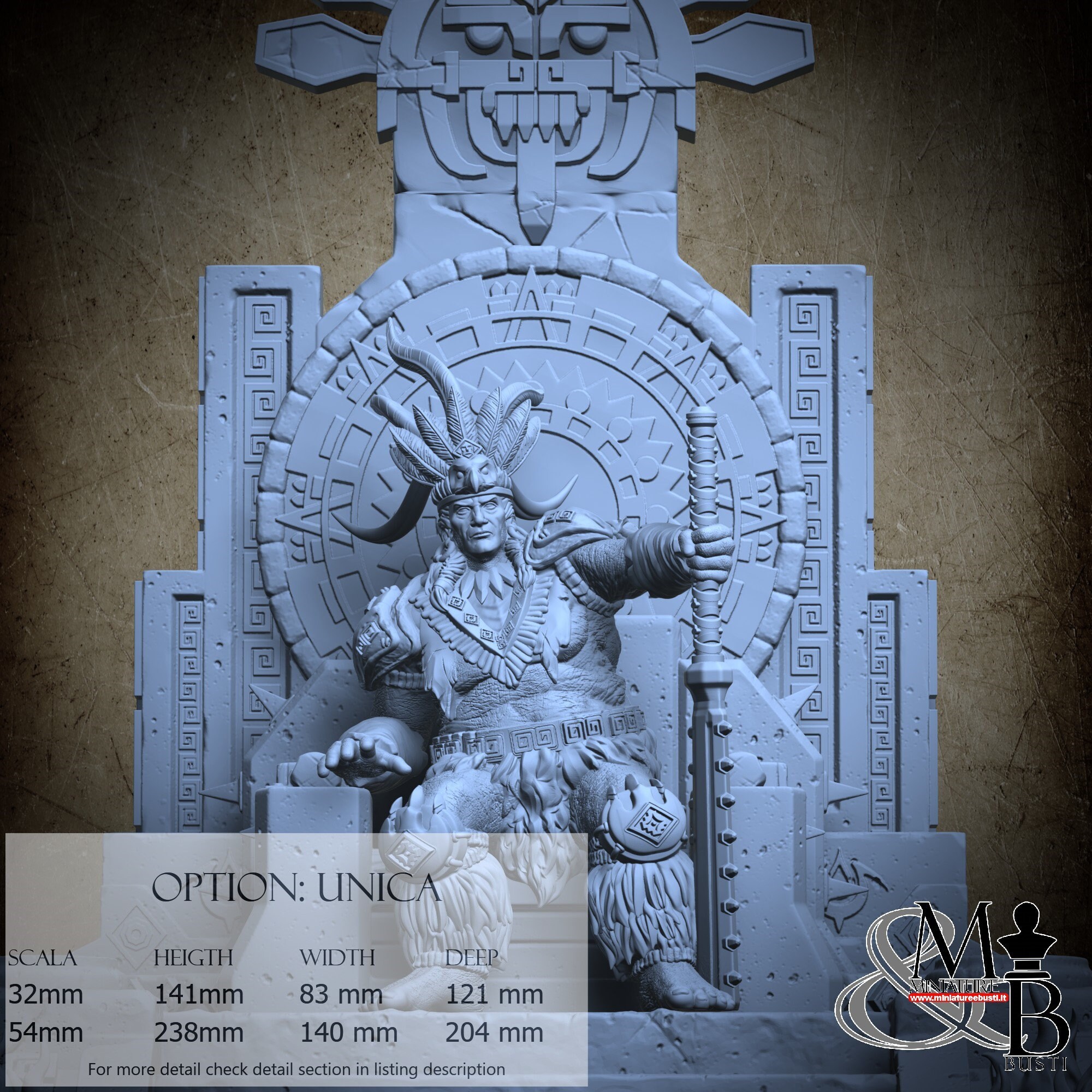 - Huitzilopochtli (1 piece) in Resin: Height: 51 mm, Width: 29 mm, Depth: 33 mm