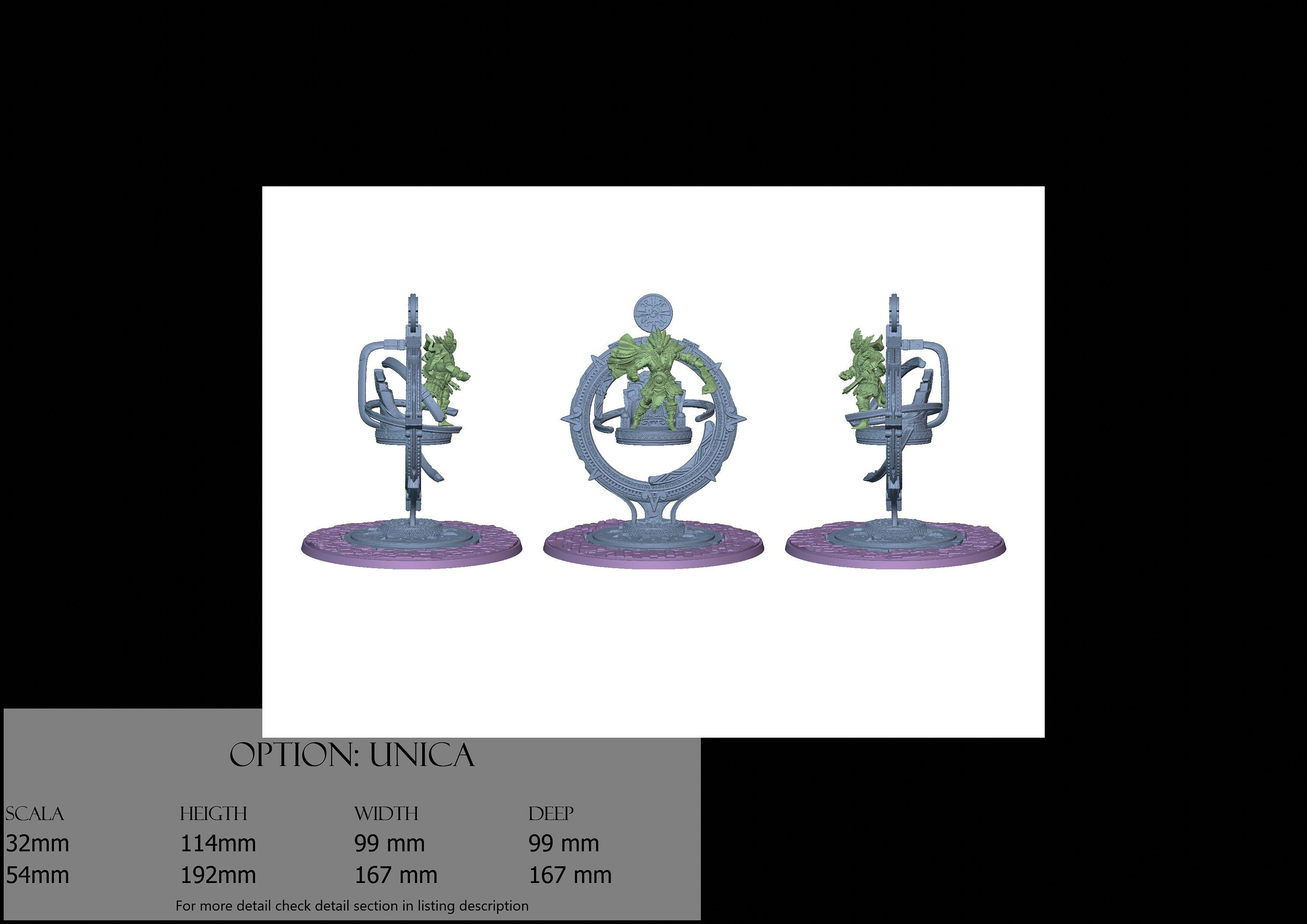 - Base and Throne (2 pieces) in Resin: Height: 114 mm, Width: 99 mm, Depth: 99 mm