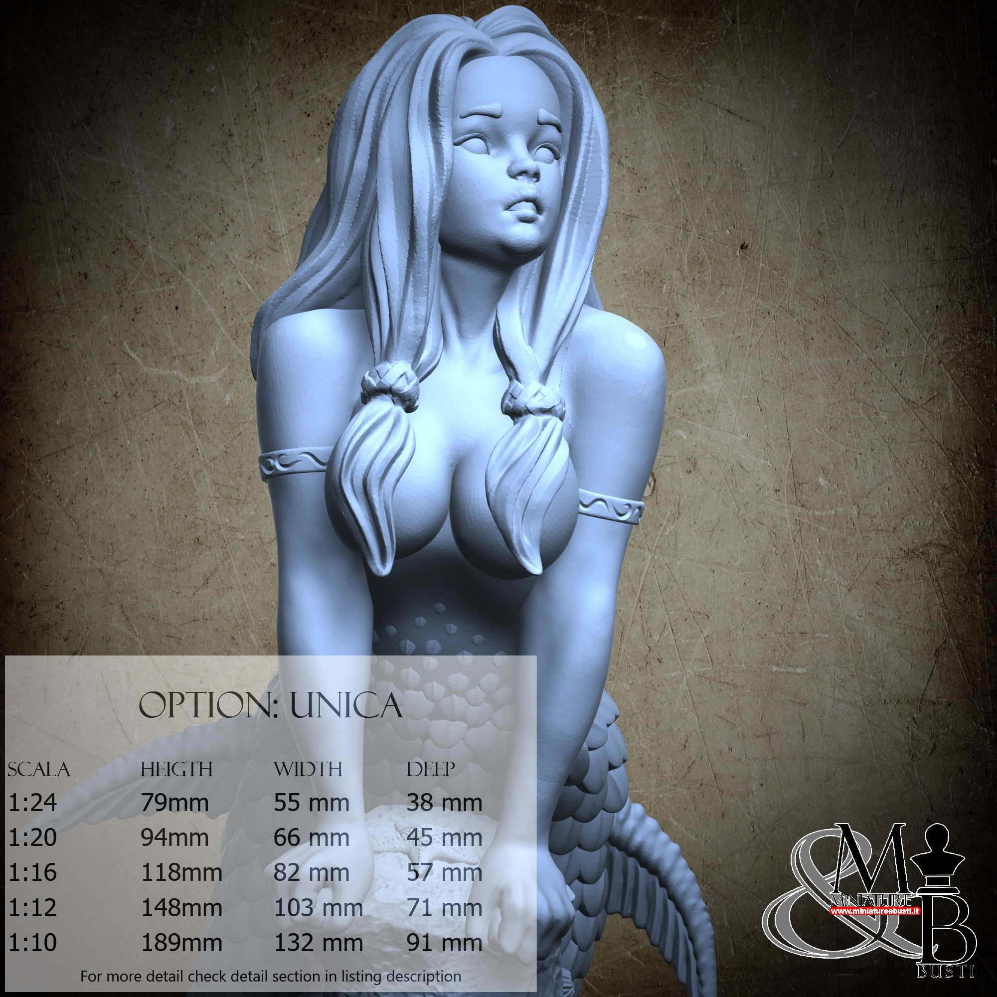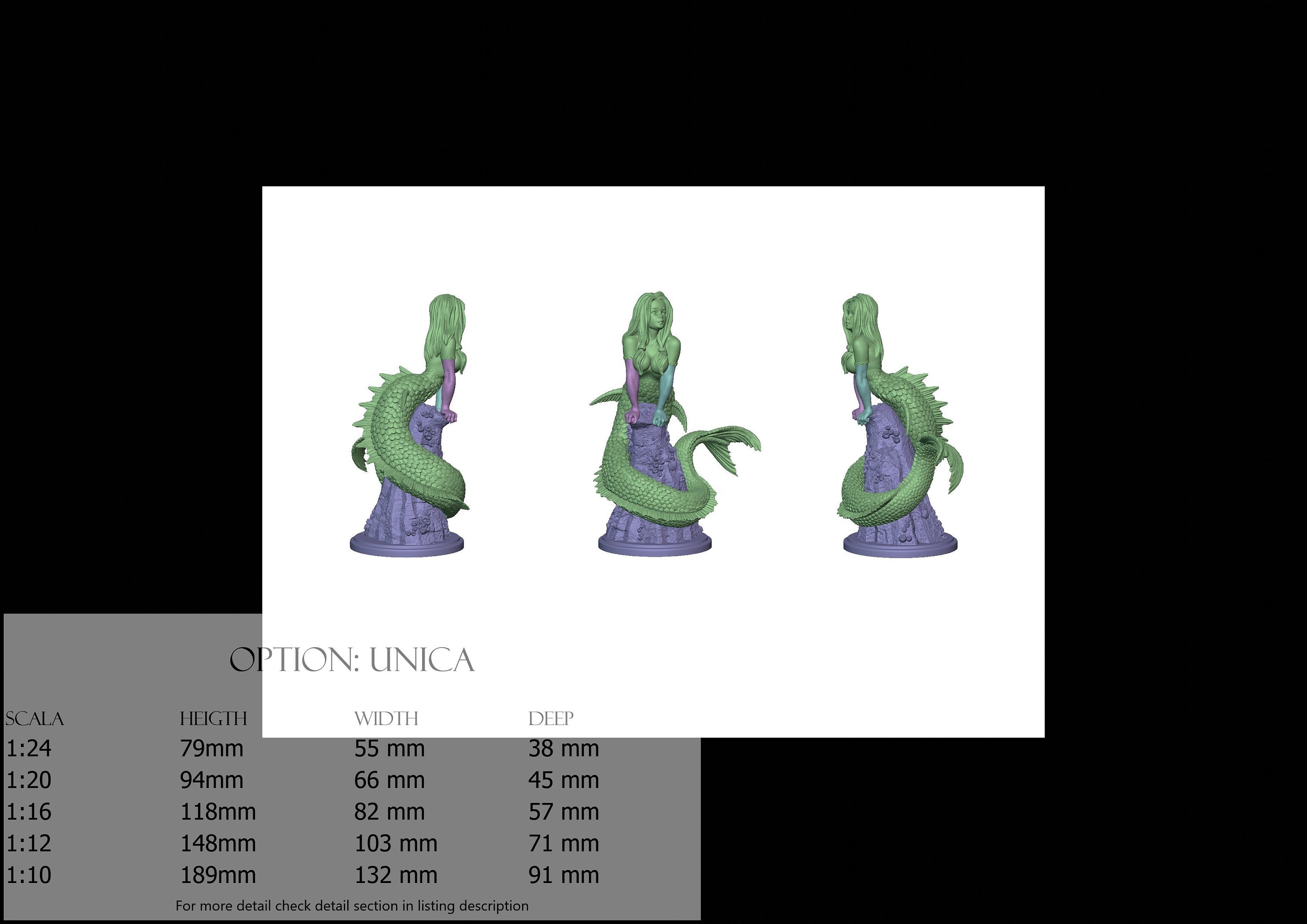 - Mermaid (3 pieces) in Resin: Height: 72 mm, Width: 55 mm, Depth: 38 mm