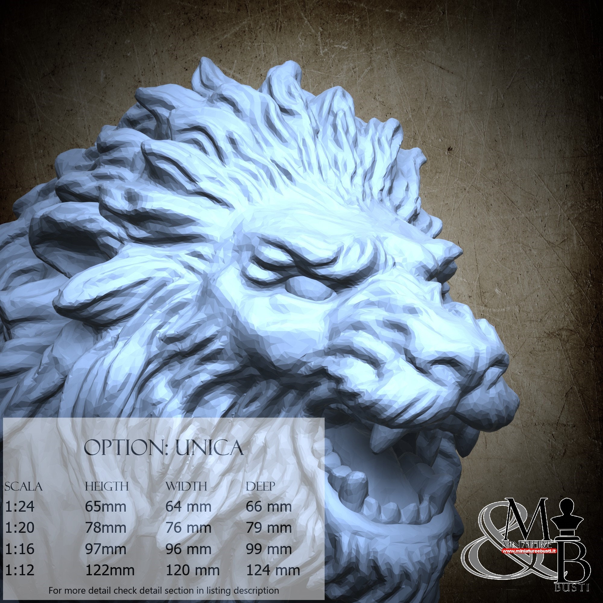 - Lion (1 piece) in Resin: Height: 62 mm, Width: 51 mm, Depth: 57 mm