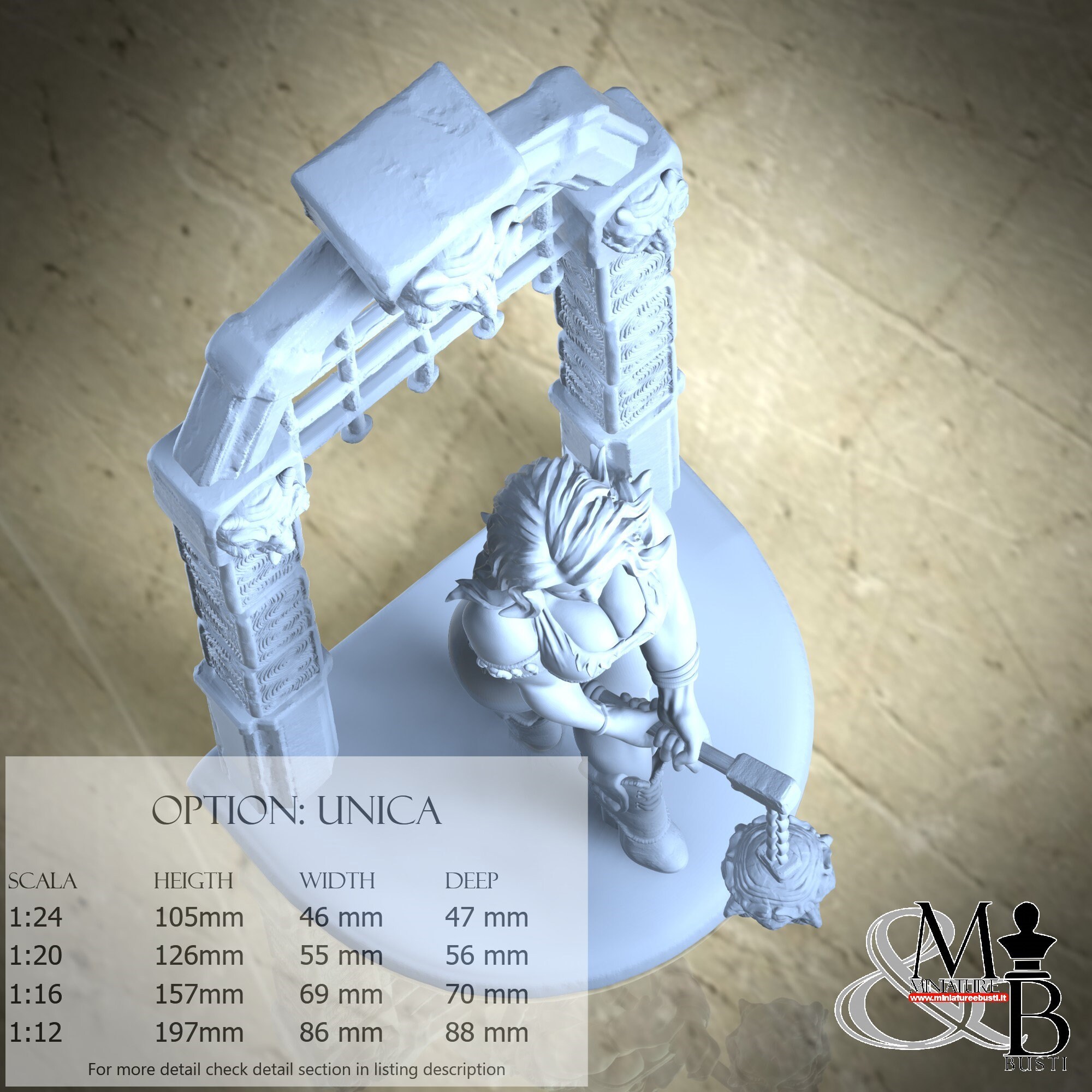 - Base with gate (2 pieces) in Resin: Height: 105 mm, Width: 49 mm, Depth: 38 mm