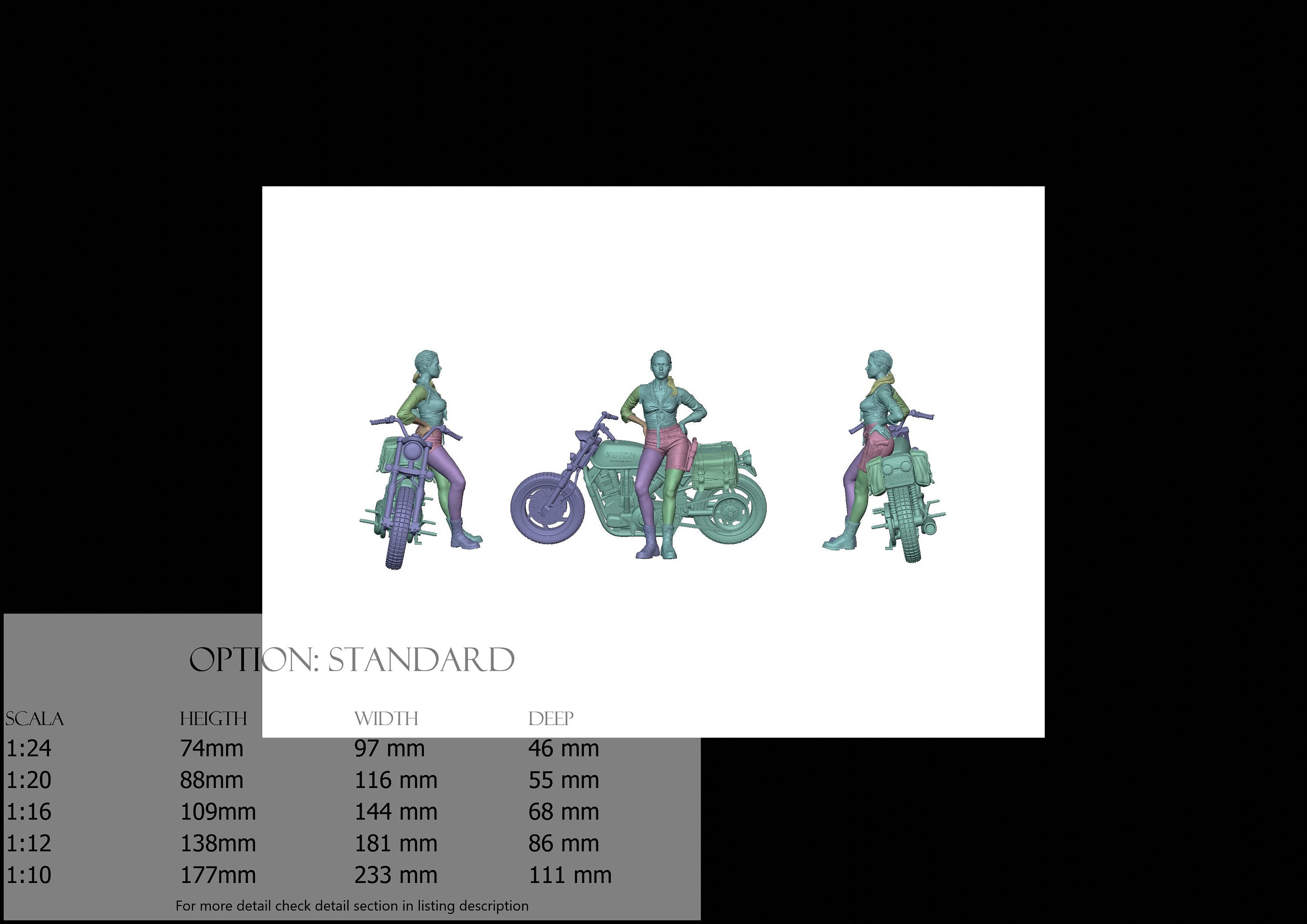 - Moto (4 pezzi) in Resina : Altezza: 50 mm, Larghezza: 97 mm, Profondità: 37 mm
