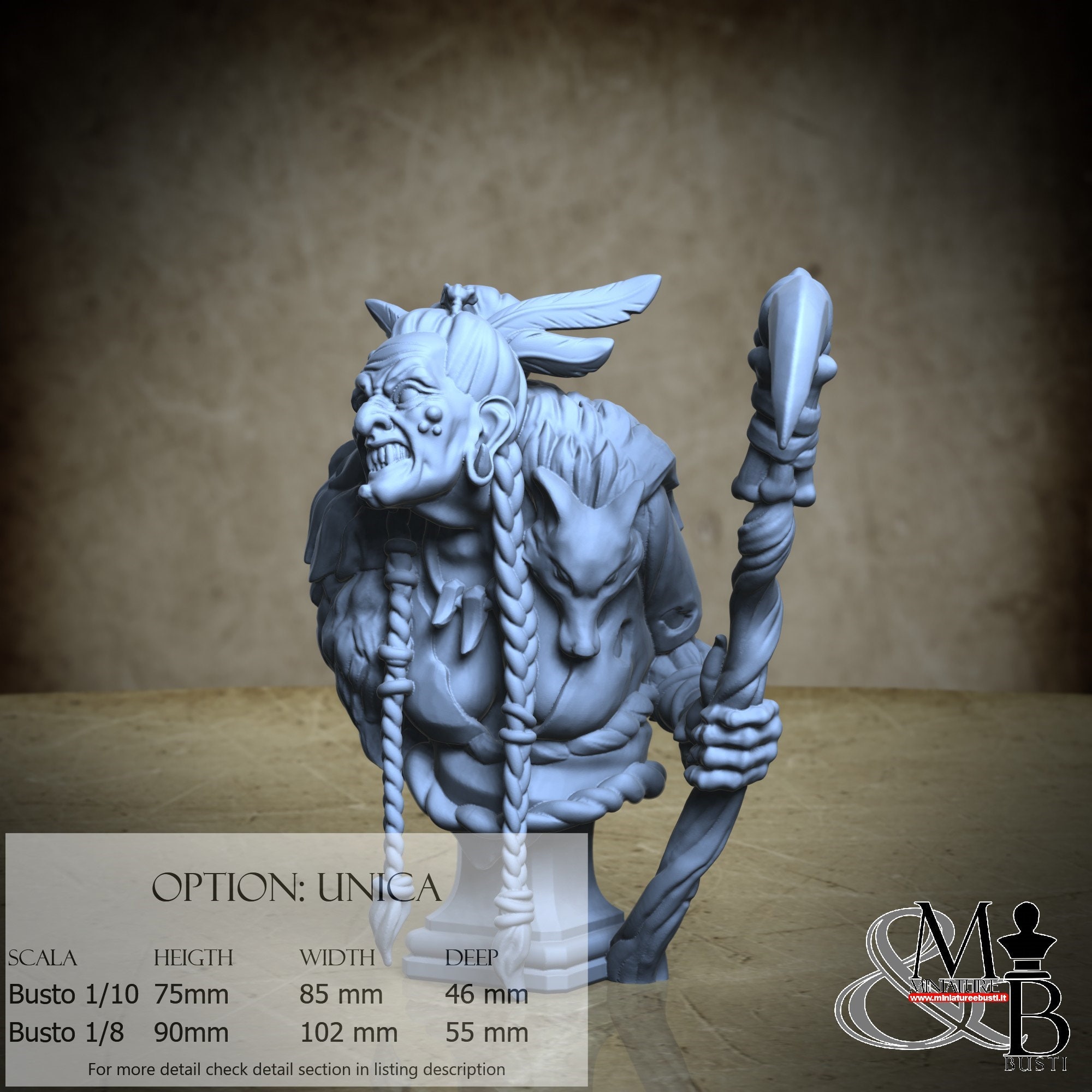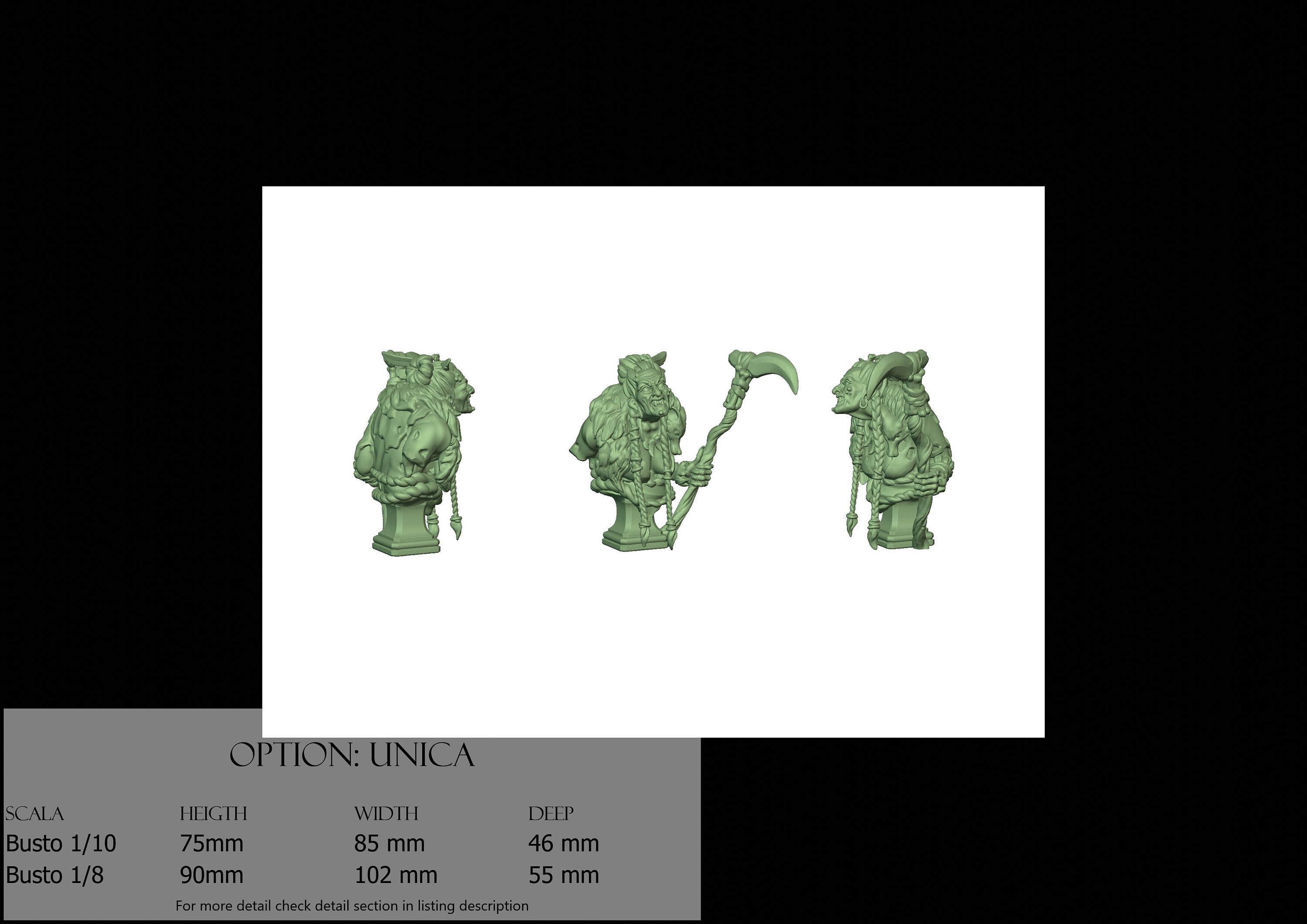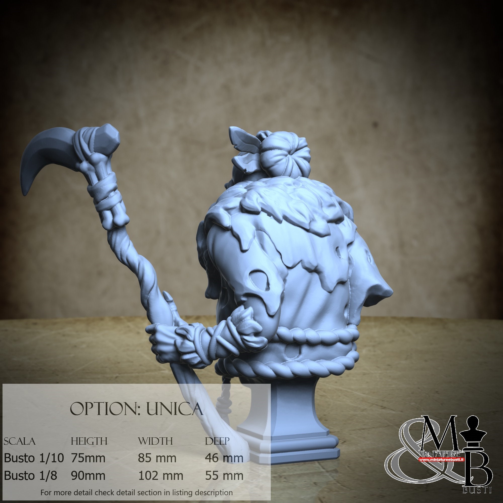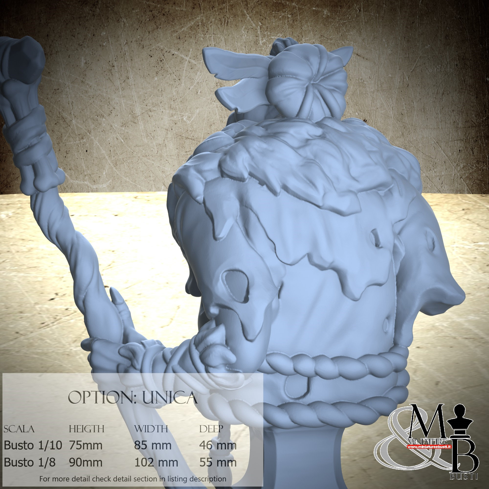 Bust Scale 1/10, cost €35.00 (Height: 75 mm, Width: 85 mm, Depth: 46 mm), composed of the following components: