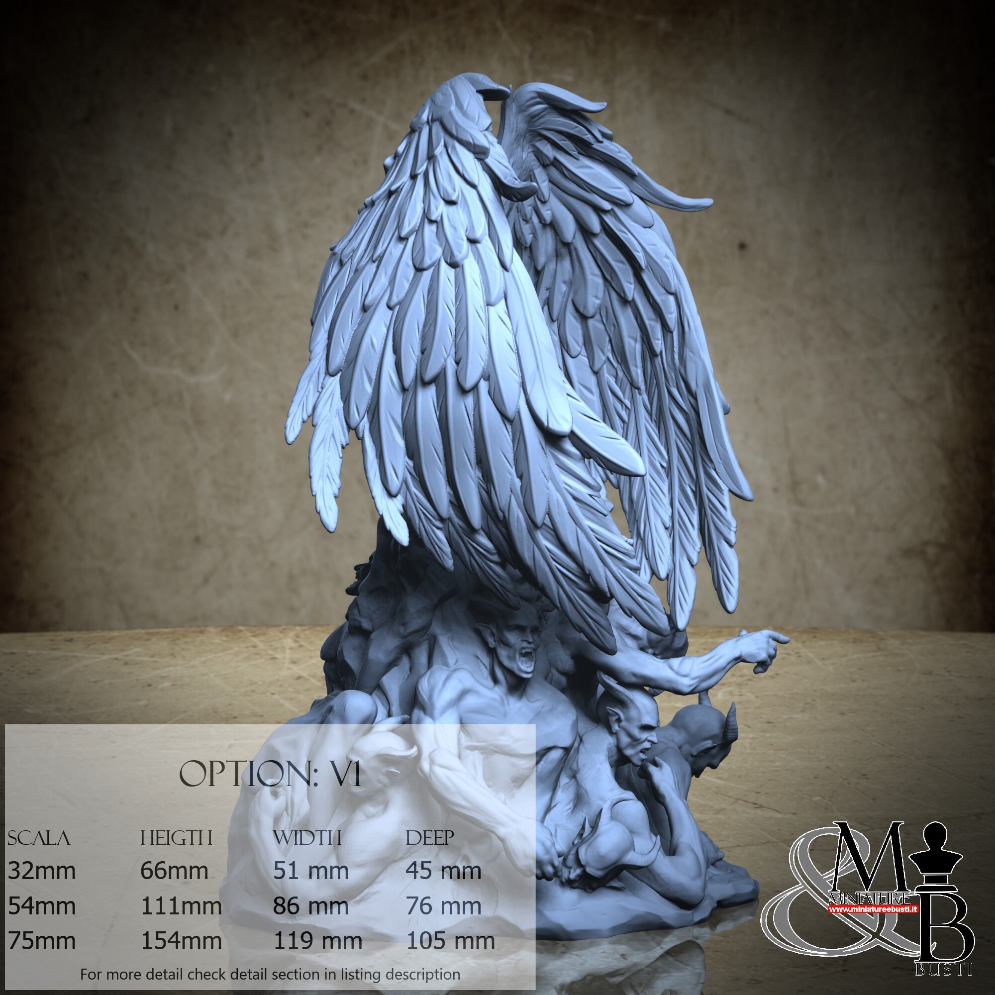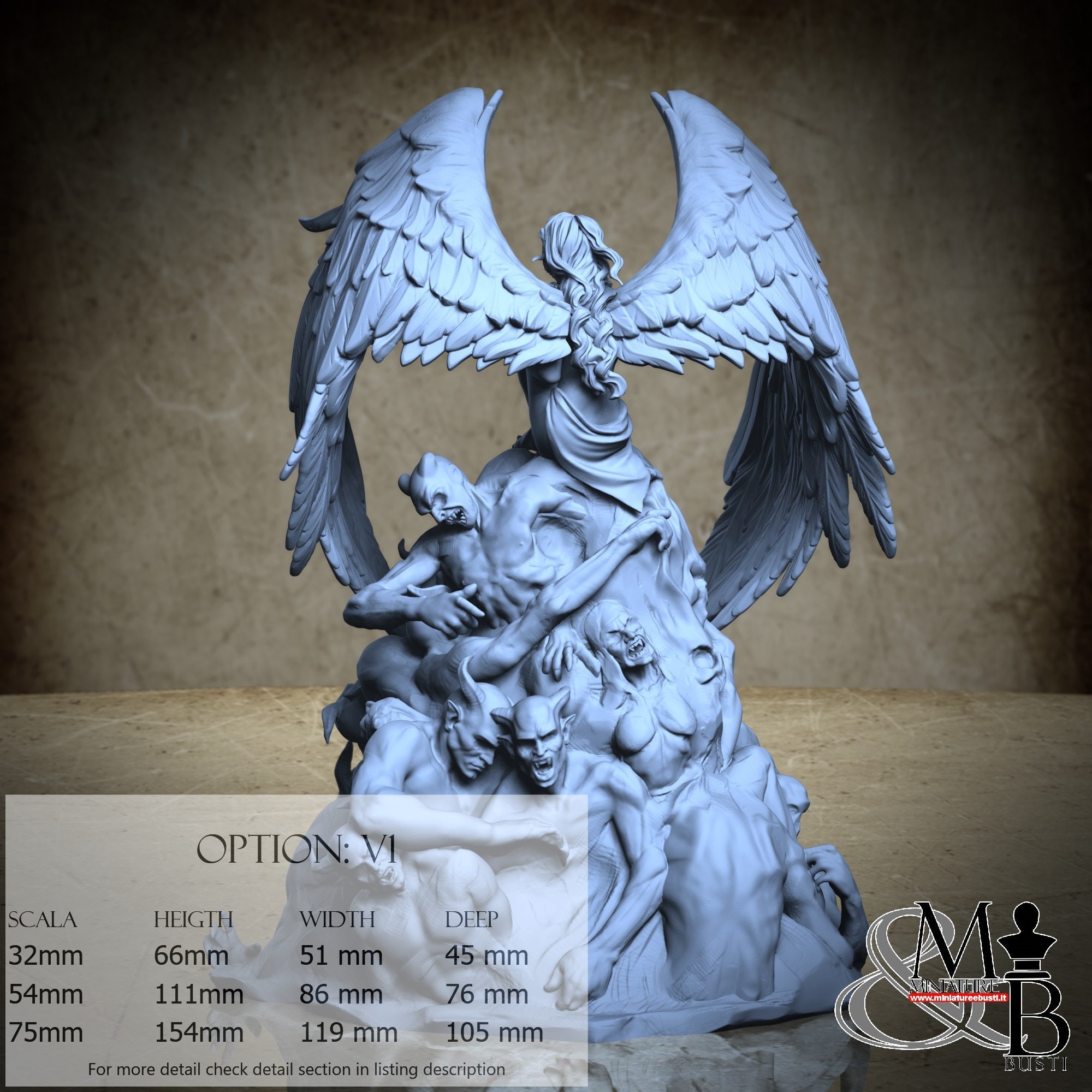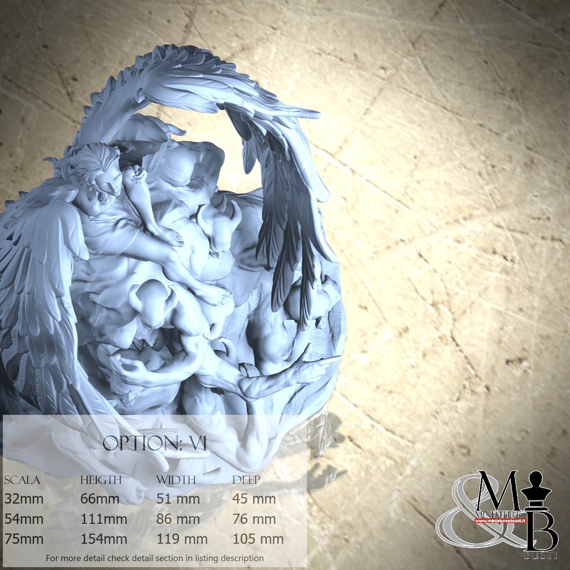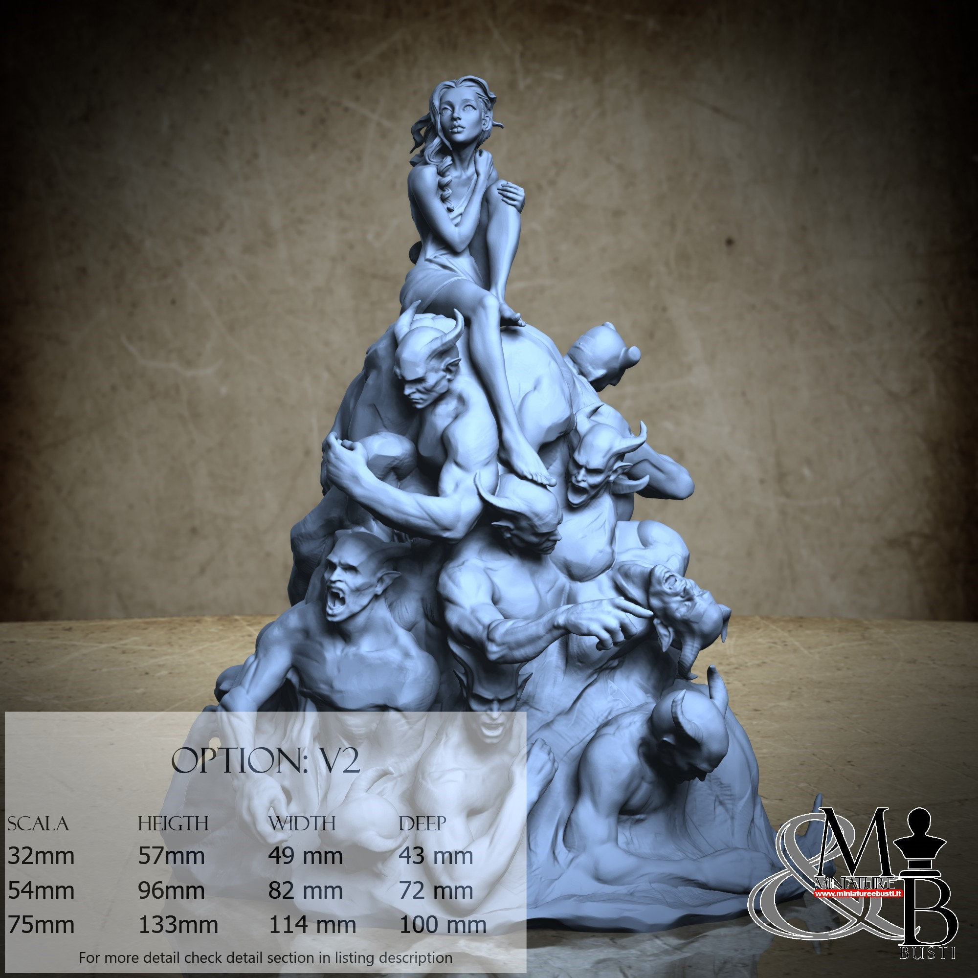 - Figure (1 piece) in Resin: Height: 65 mm, Width: 28 mm, Depth: 42 mm