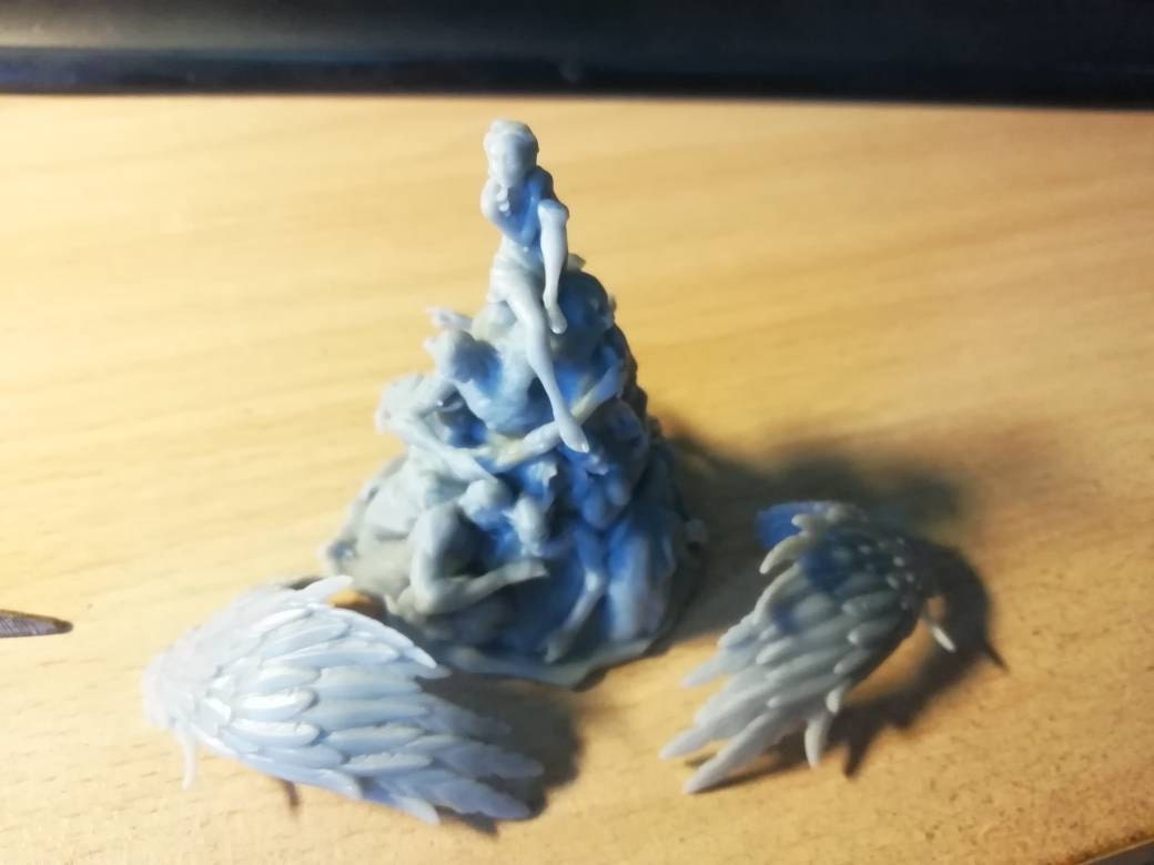 Okay, how to say this. Product 5 stars Packing zero stars? The packing has a beautiful little box with the model printed on it as a label. Looks great. You open that box and have one polsterbag containing all parts. The model comes as many parts. One of them a massive base of demon skulls, pretty heavy stuff. Throw all together in one polsterbag and send it per mail to get - smashed wingtips. Okay, can all be glued - I think at least here if found the relevant parts of the wings. Please change your packing! Do not put fragile parts and big blocks in one polsterbag!