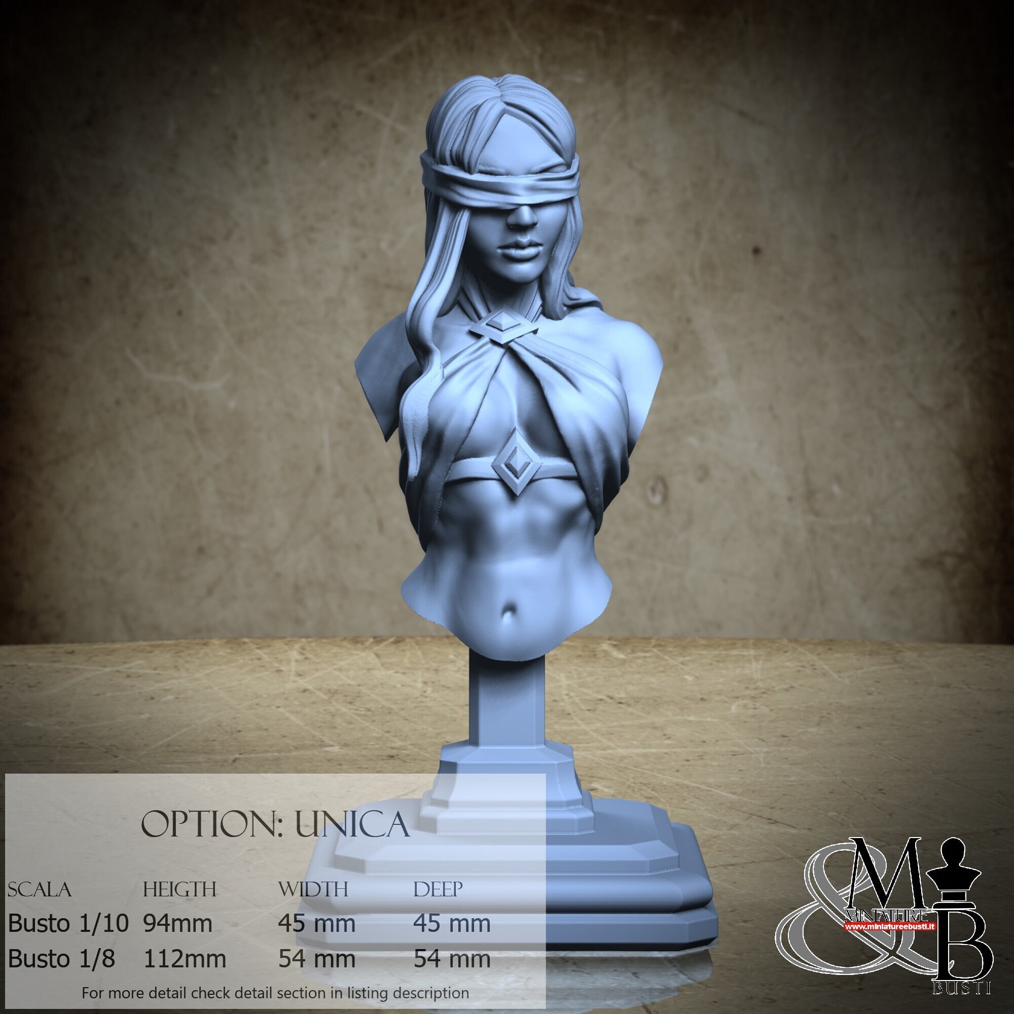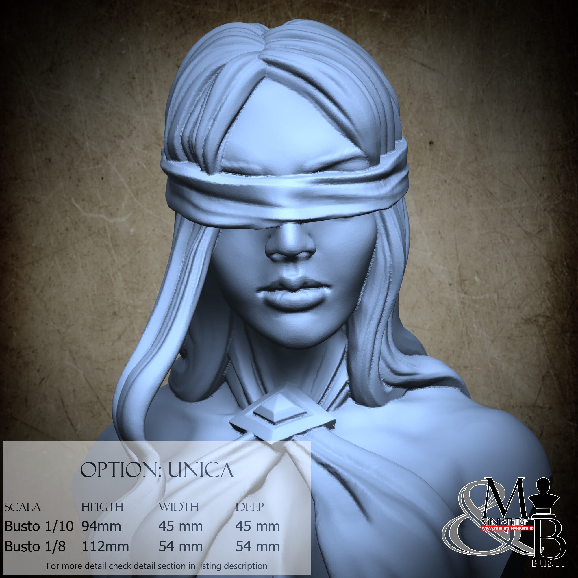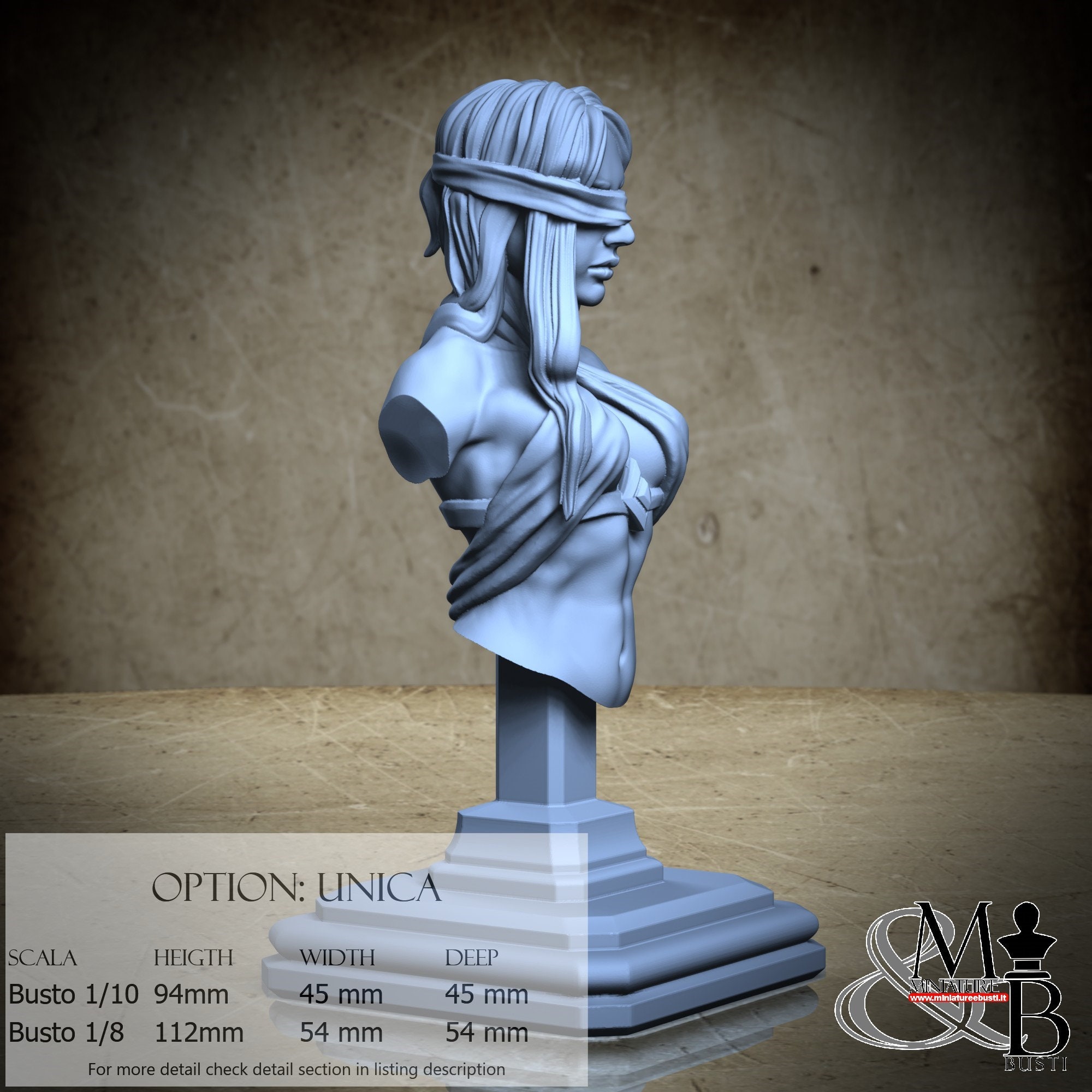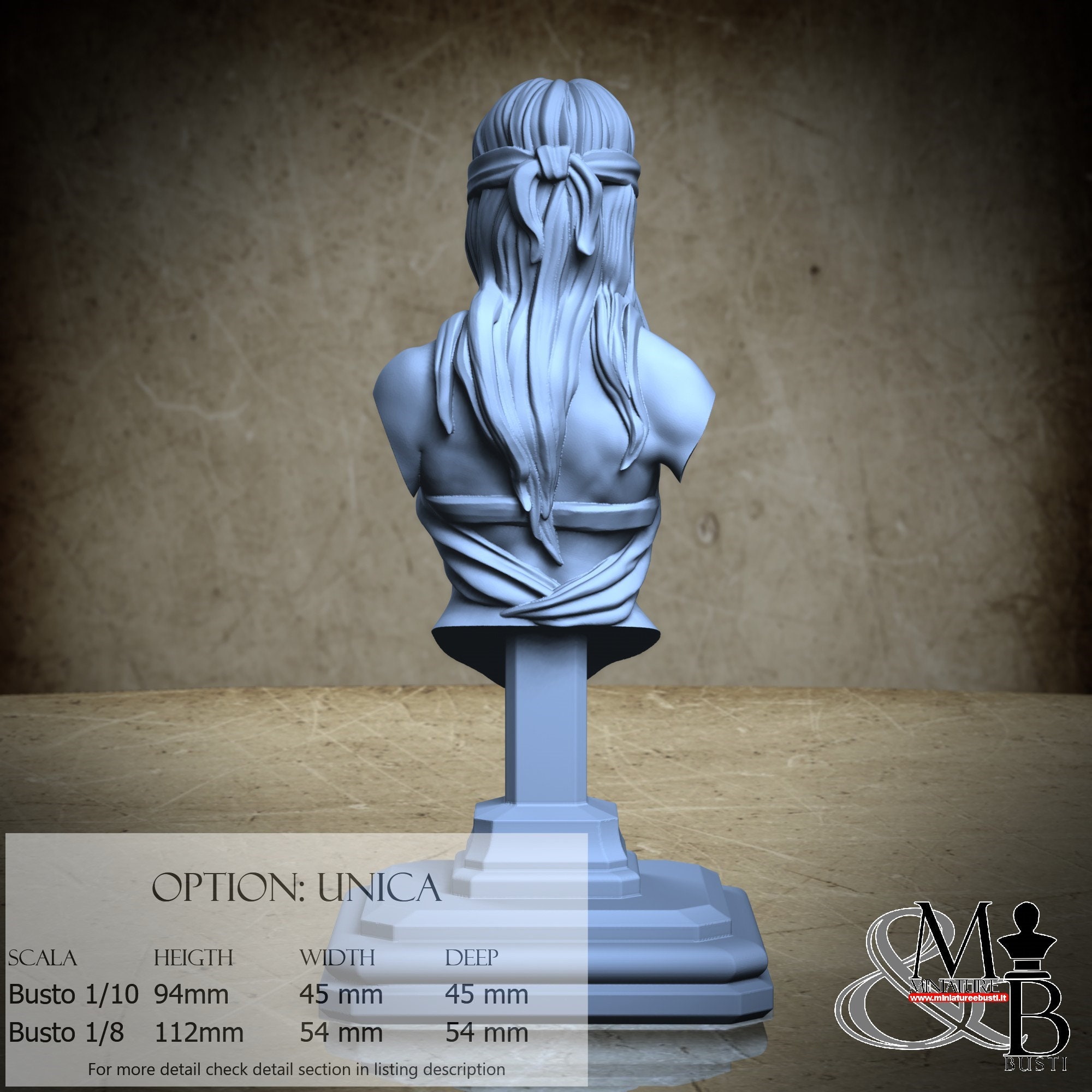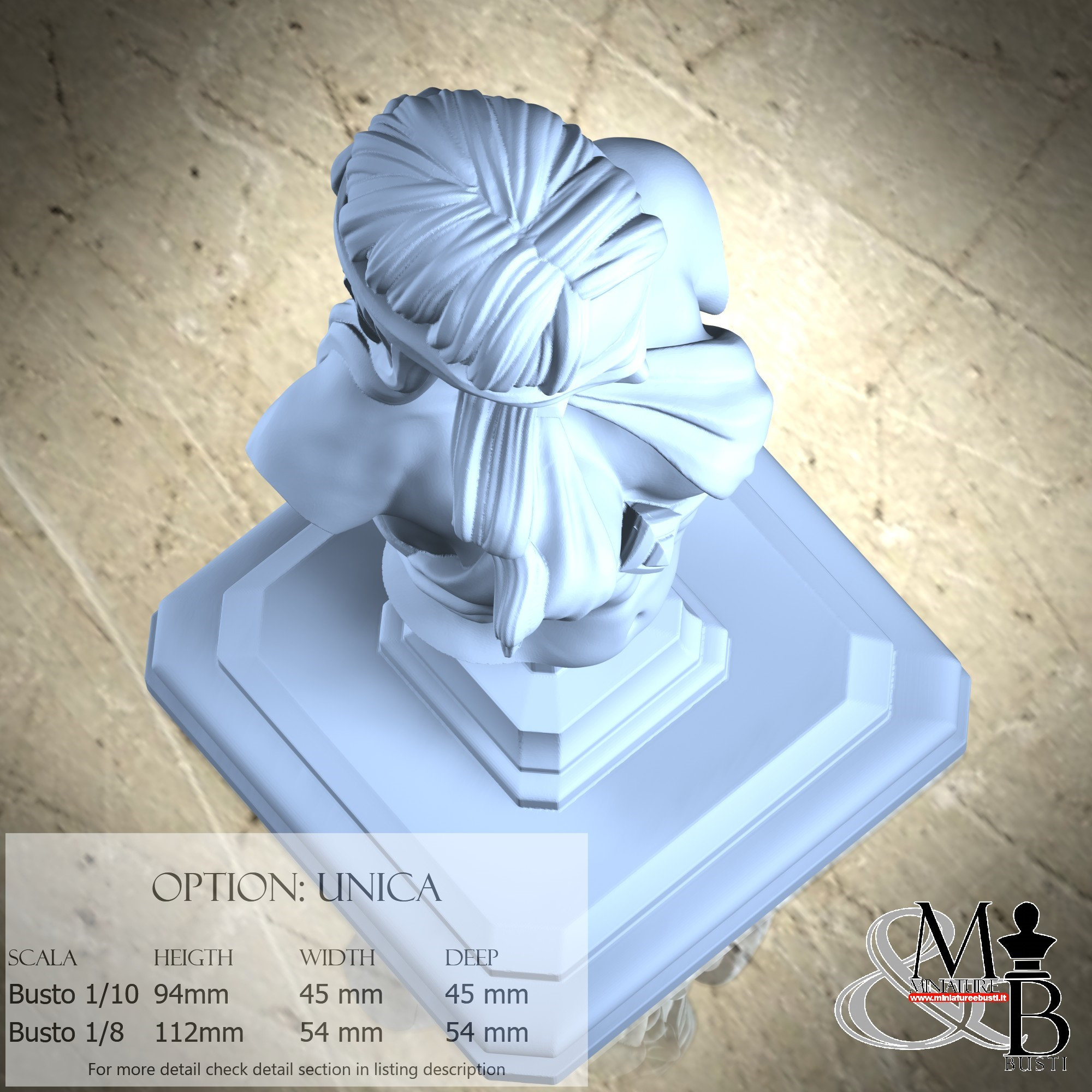 Bust Scale 1/10, cost €35.00 (Height: 94 mm, Width: 45 mm, Depth: 45 mm), composed of the following components: