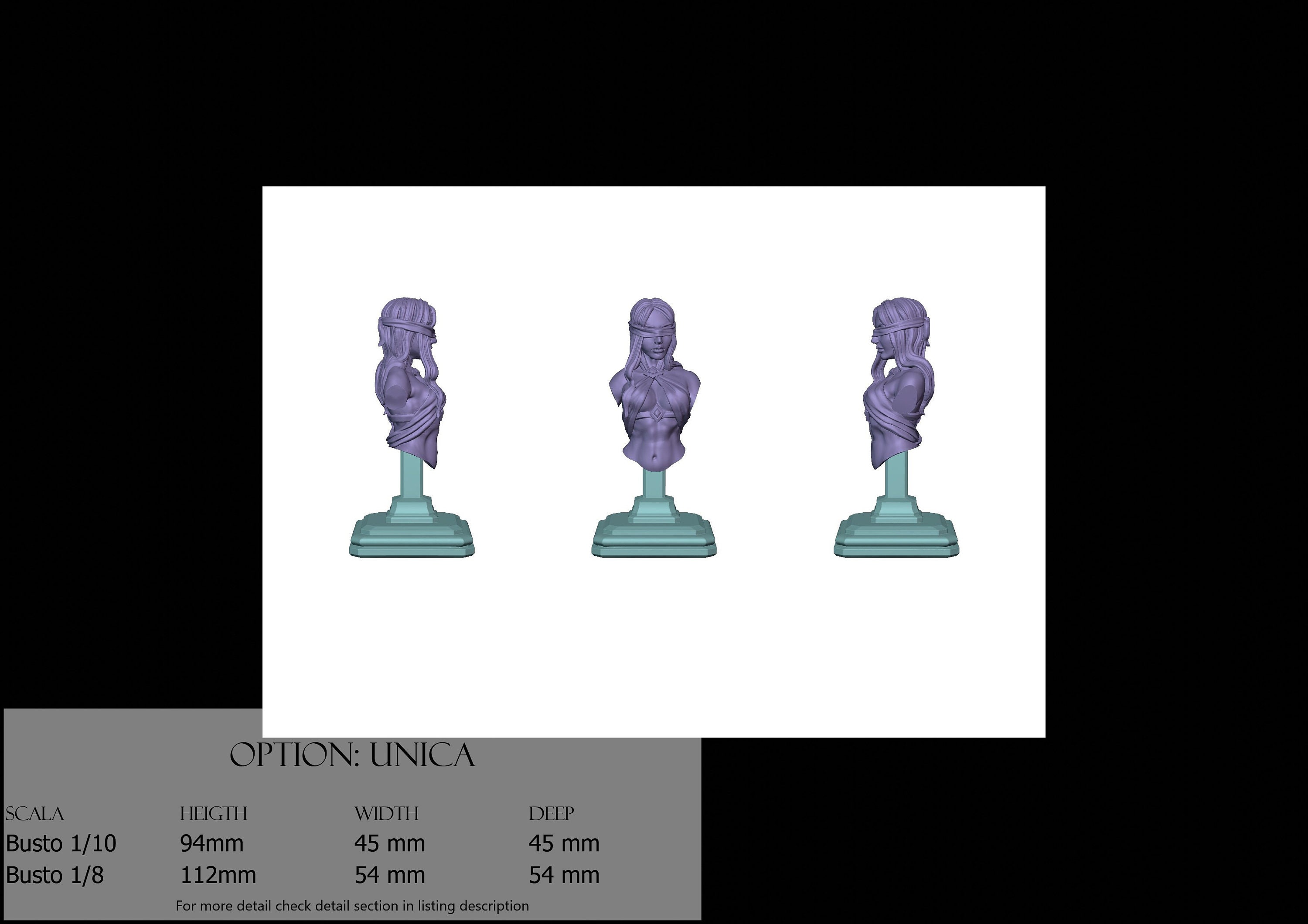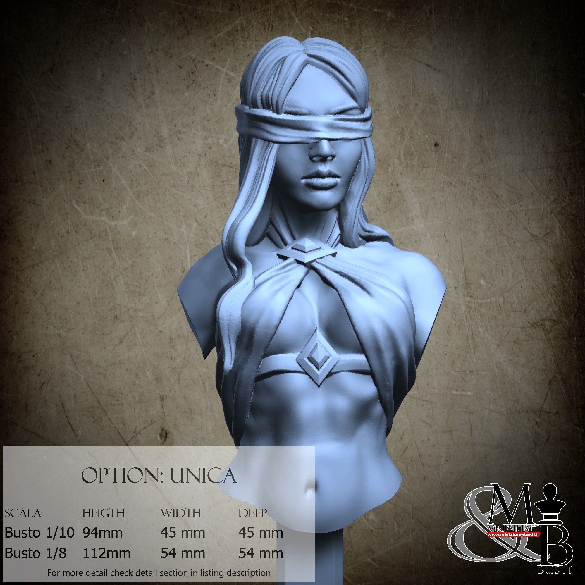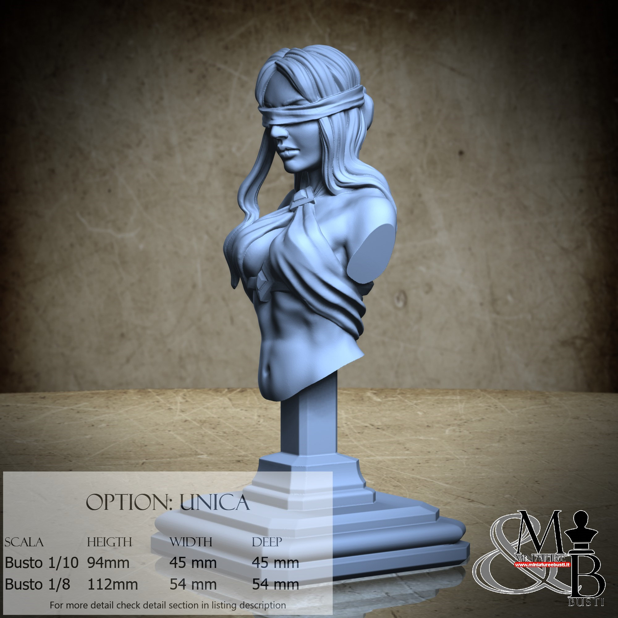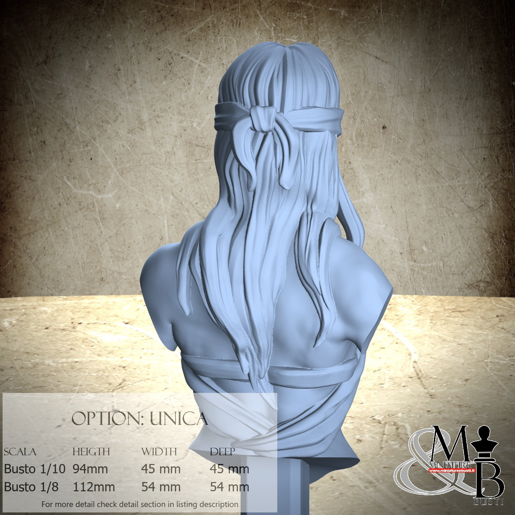 1/8 Bust Scale, cost €45.00 (Height: 112 mm, Width: 54 mm, Depth: 54 mm), composed of the following components: