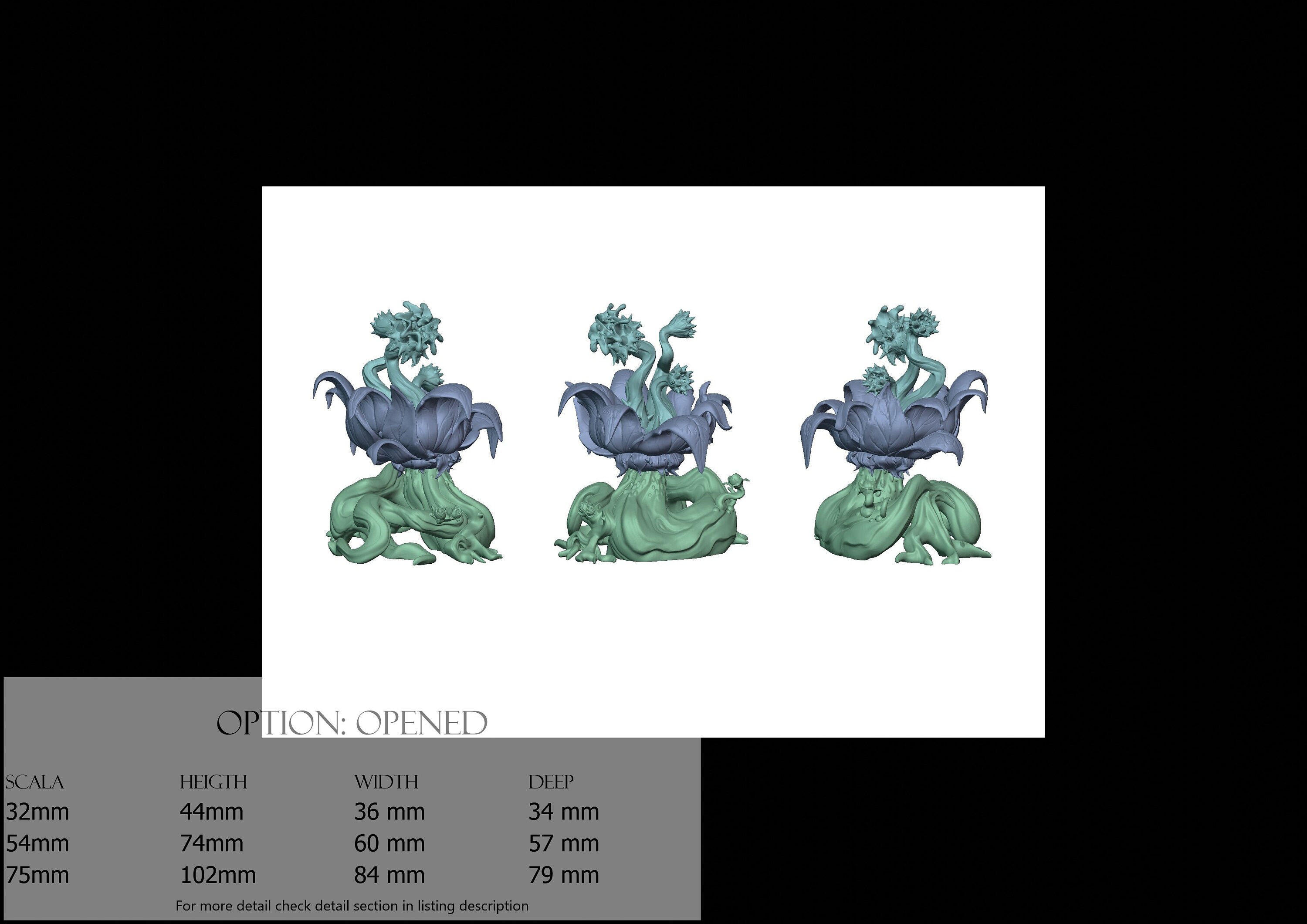 Normalmente i nostri modelli sono proposti con delle scale fisse, ma se avete necessità di scalare in alto o in basso un modello contatteci e vedremo cosa fare. In alcuni casi scalare un modello potrebbe necessitare di dover stampare in PLA alcune delle parti più grandi.