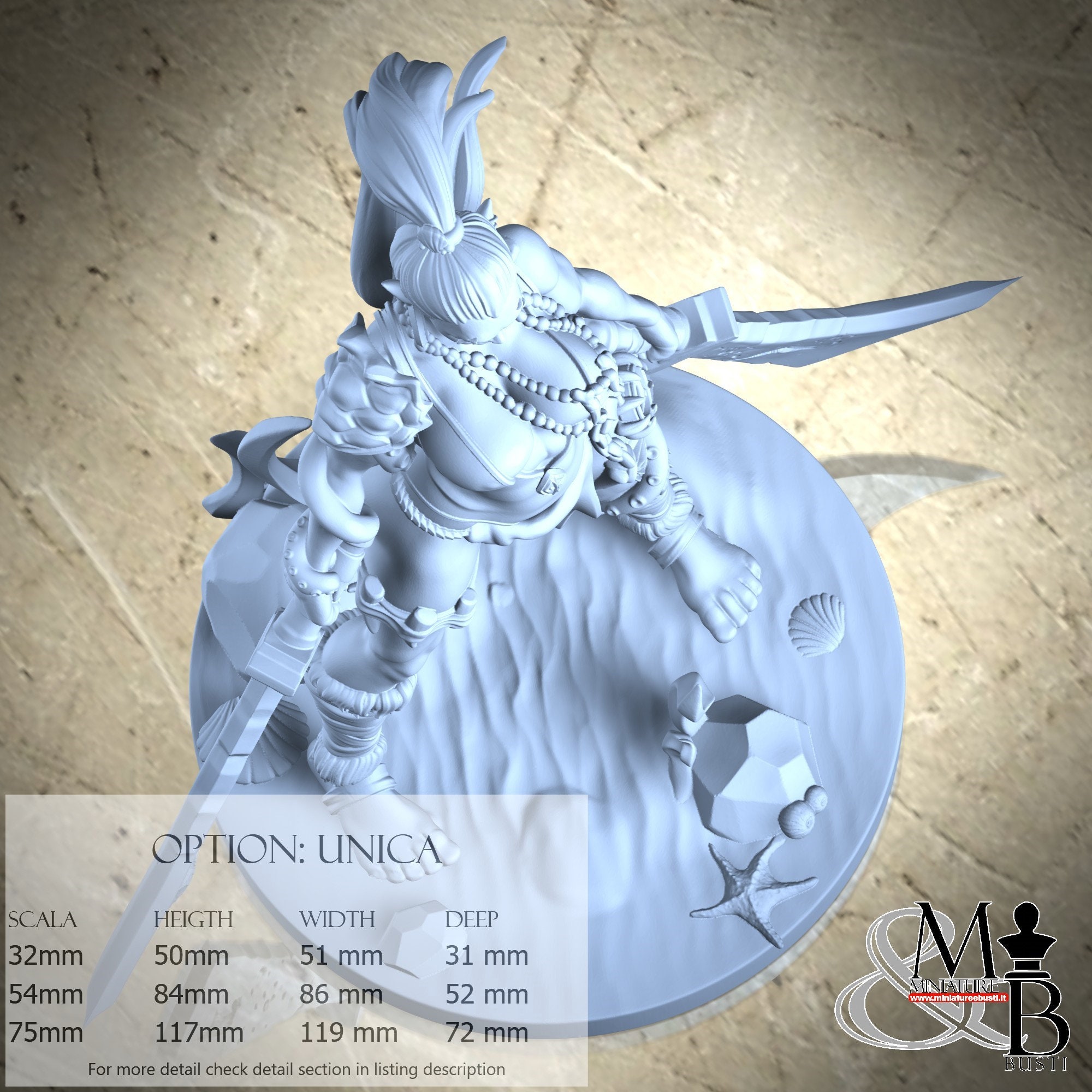 - Base (1 piece) in Resin: Height: 35 mm, Width: 72 mm, Depth: 72 mm