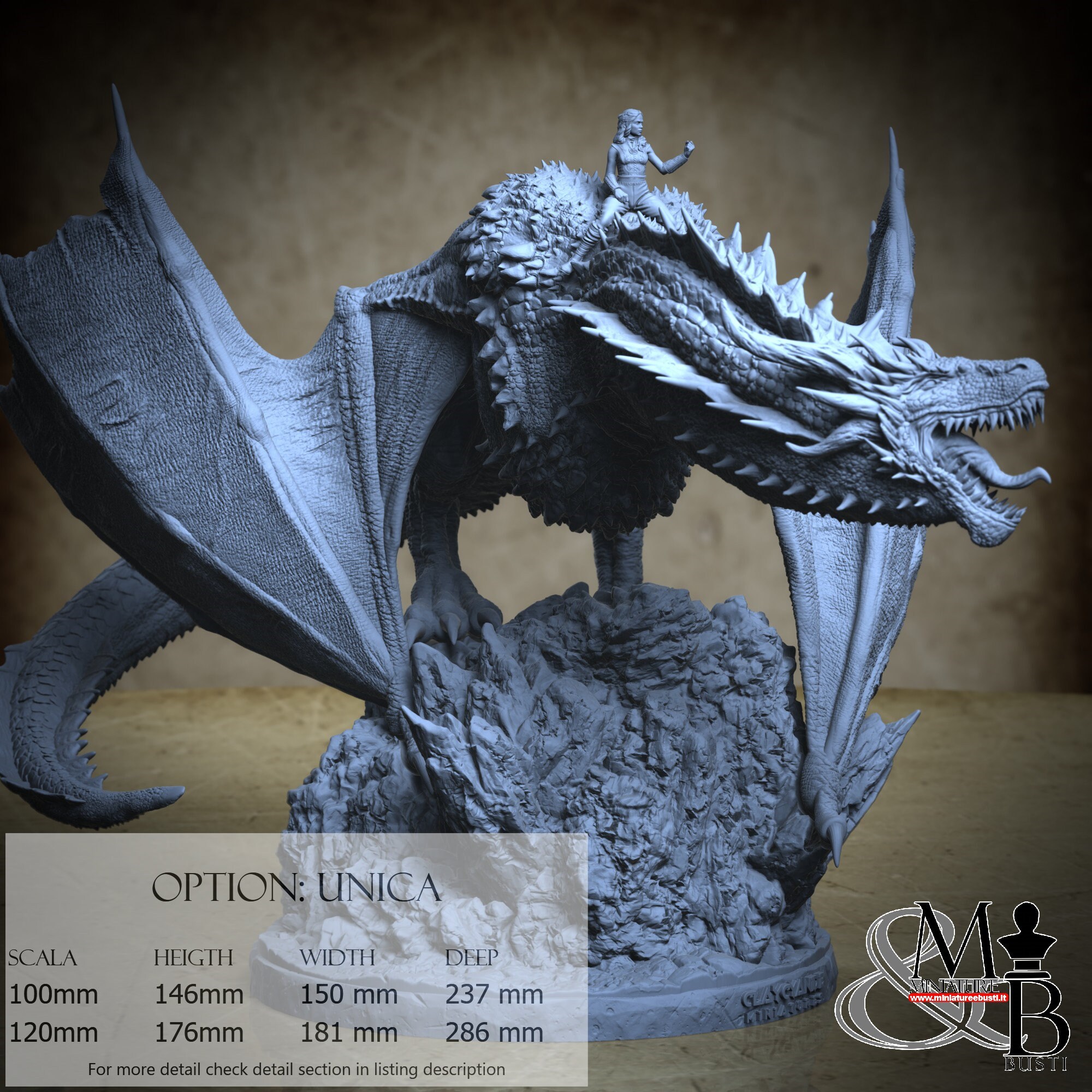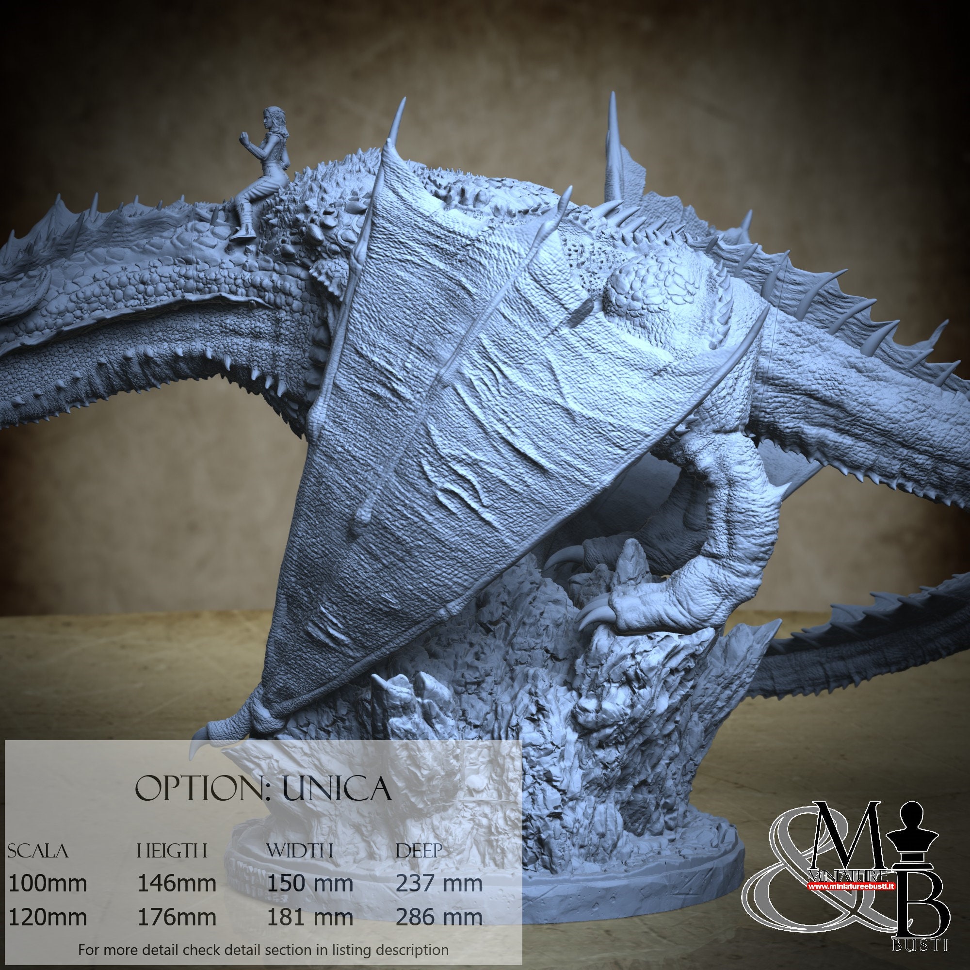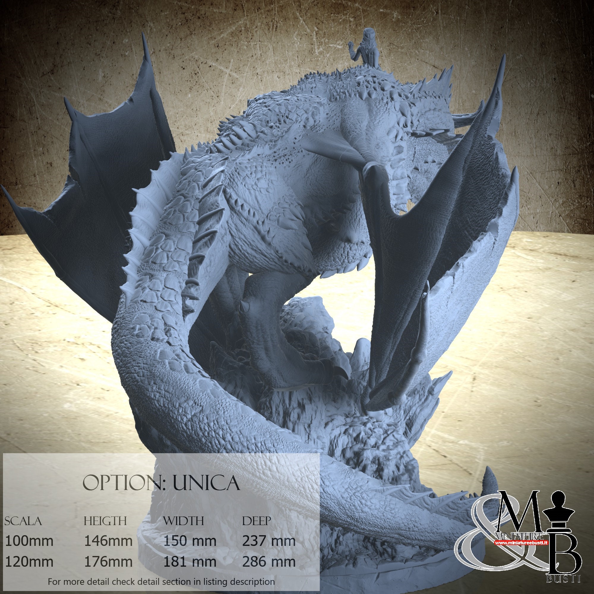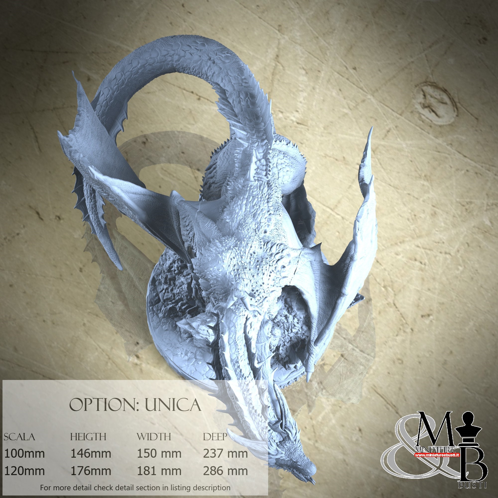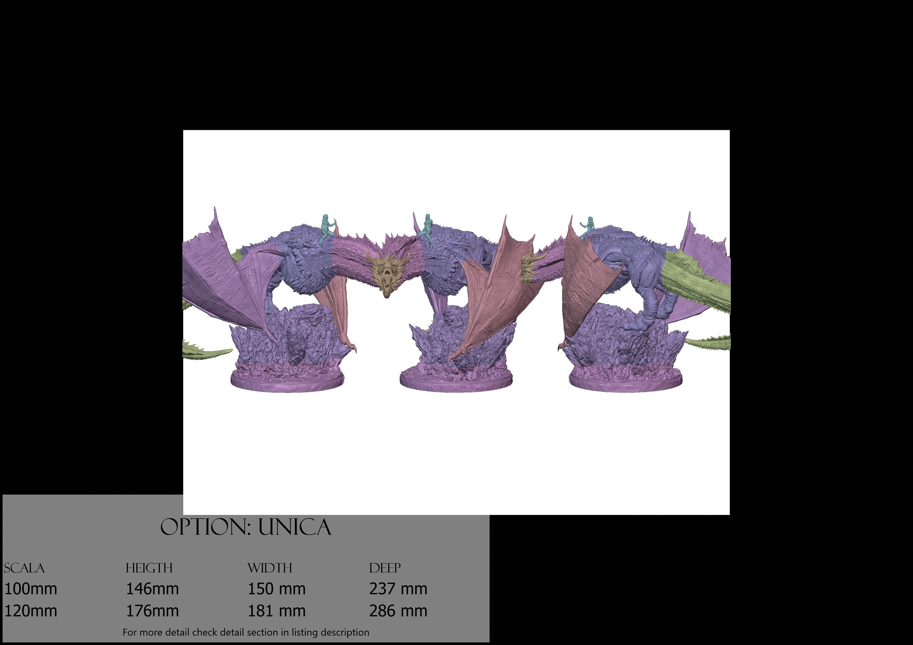 - Dragon (7 pieces) in Resin: Height: 148 mm, Width: 181 mm, Depth: 286 mm