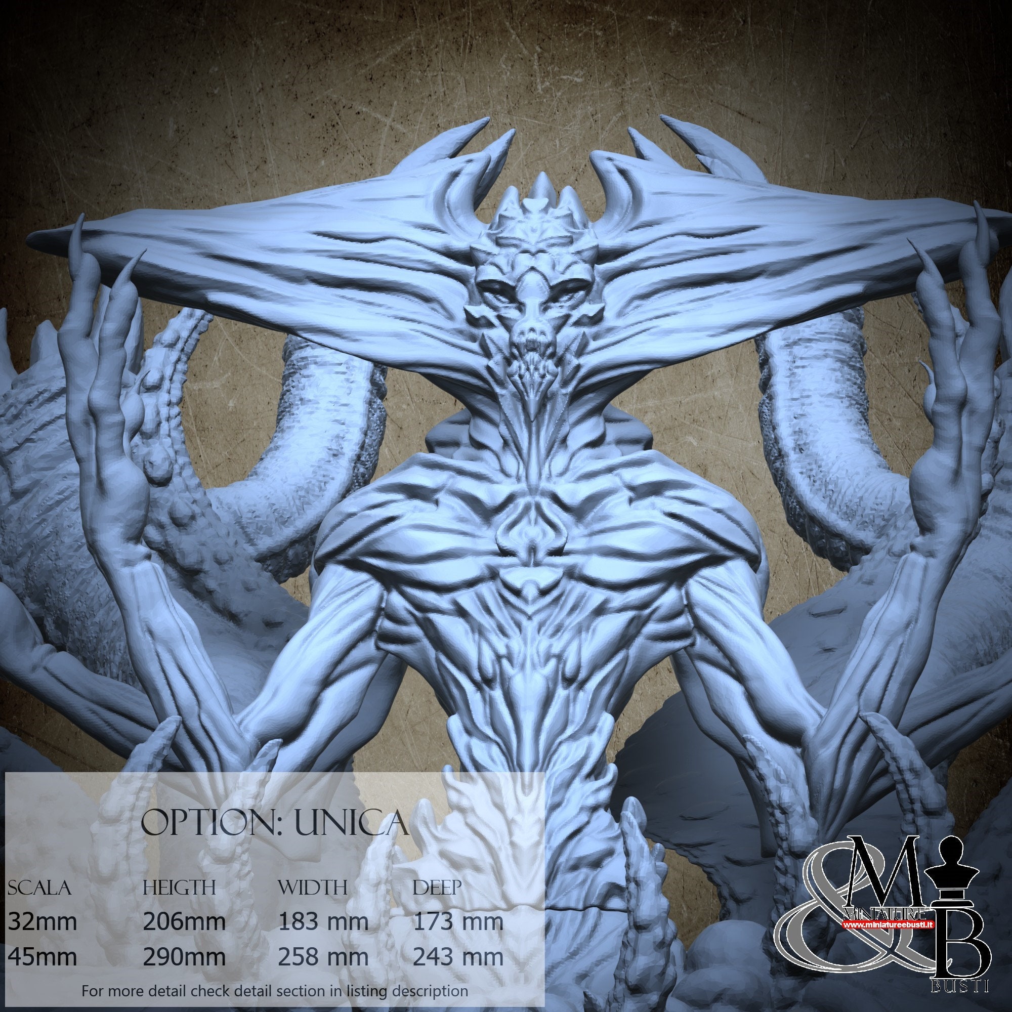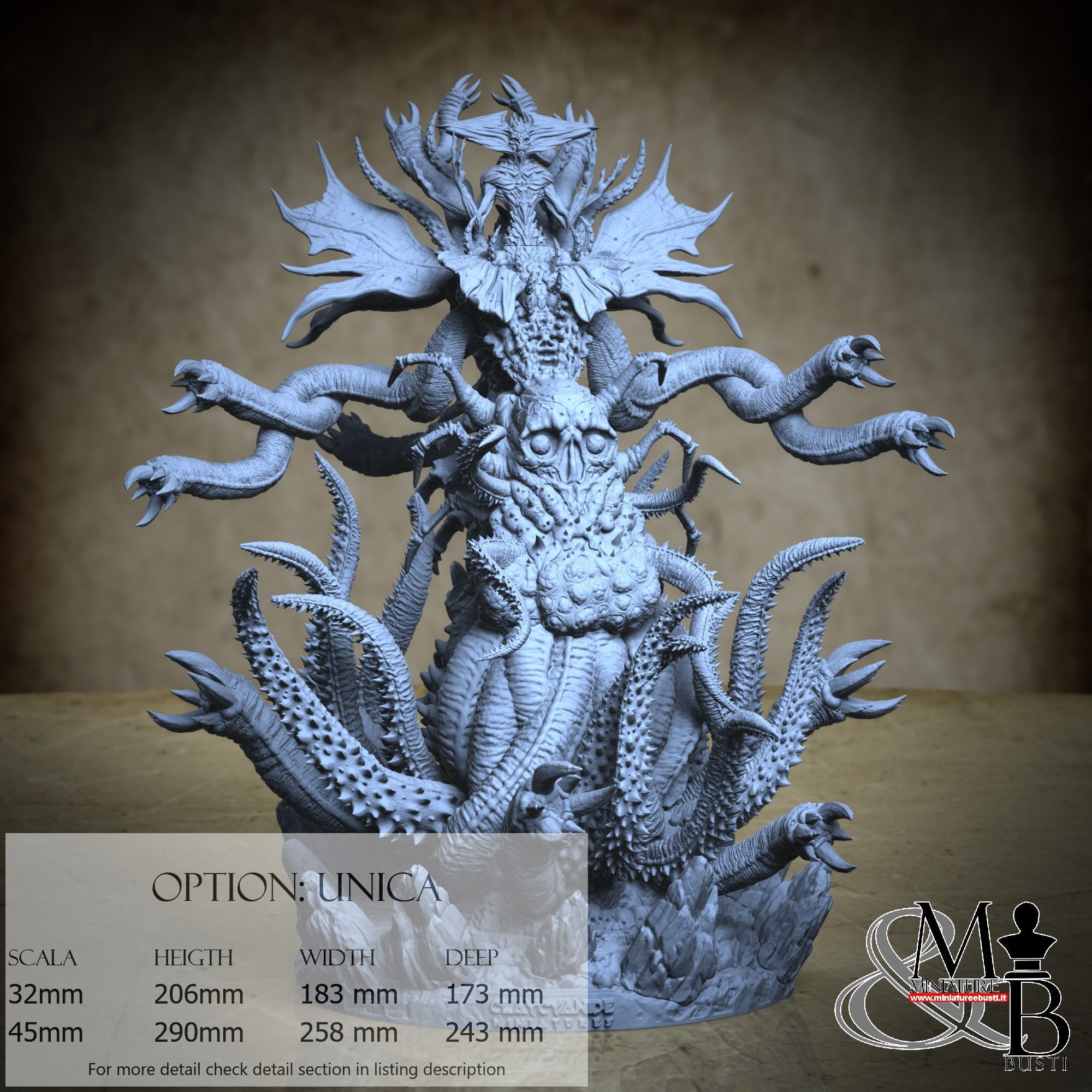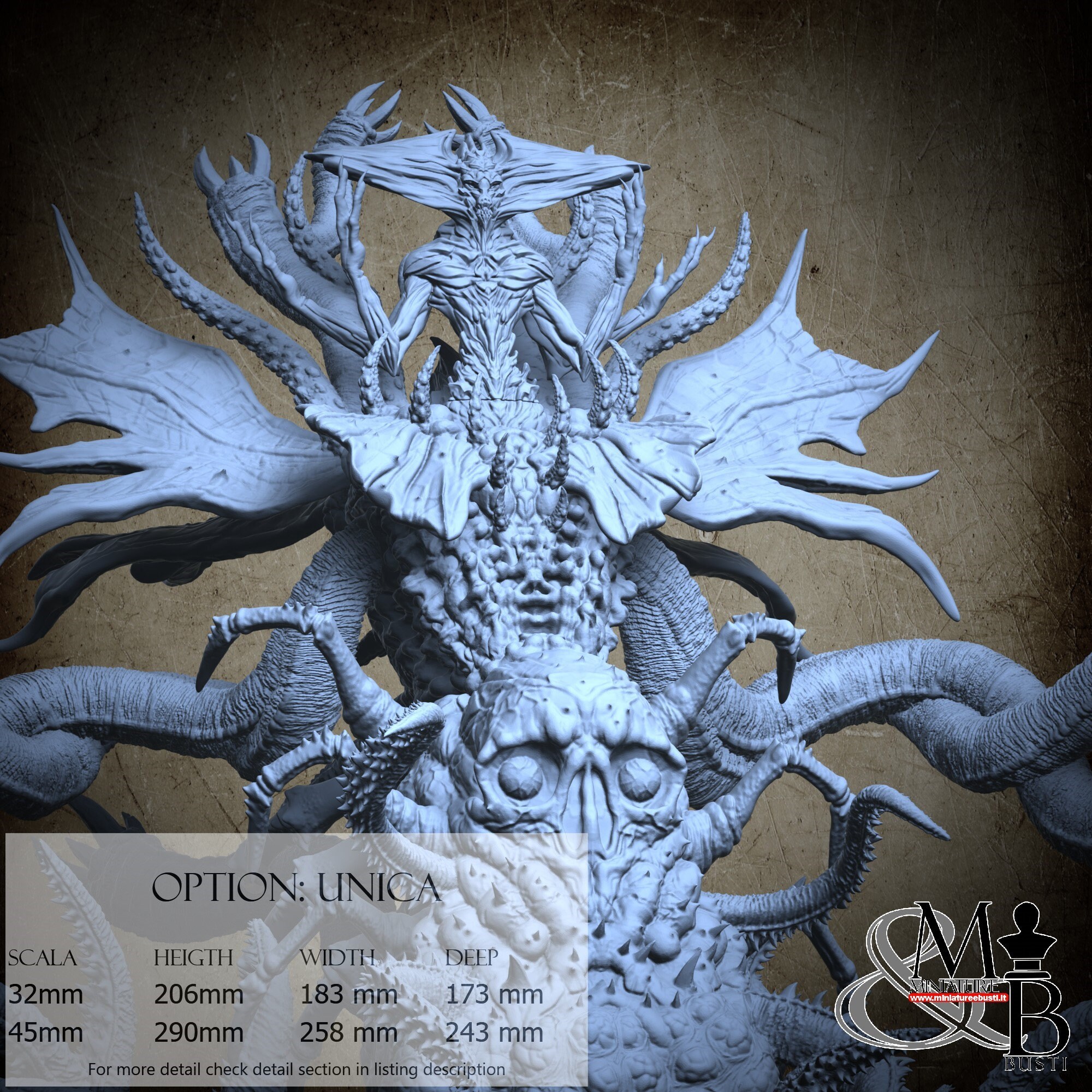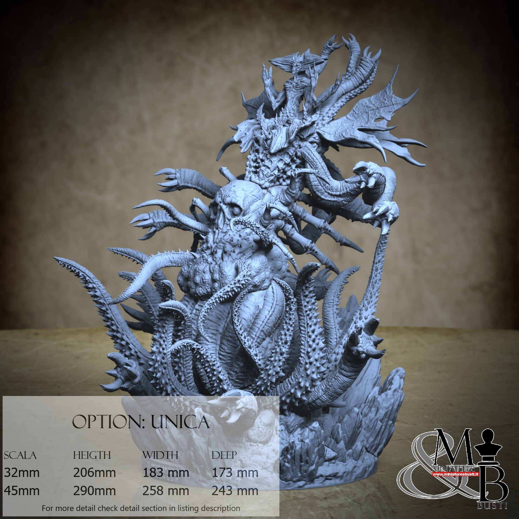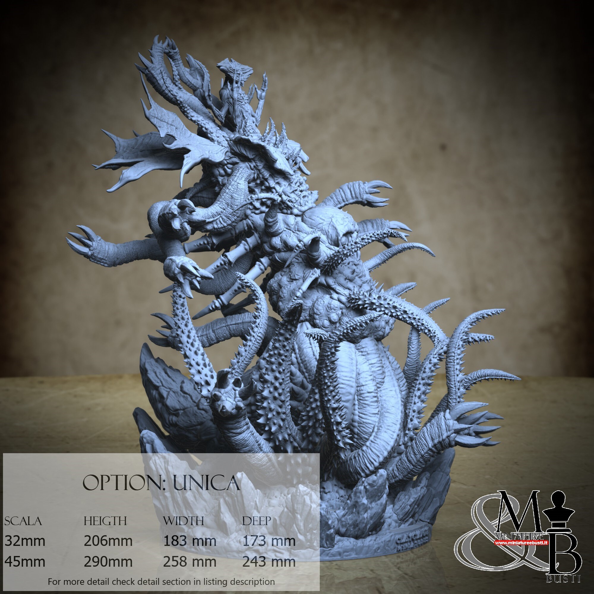 - Base (10 pieces) in Resin: Height: 48 mm, Width: 126 mm, Depth: 138 mm
