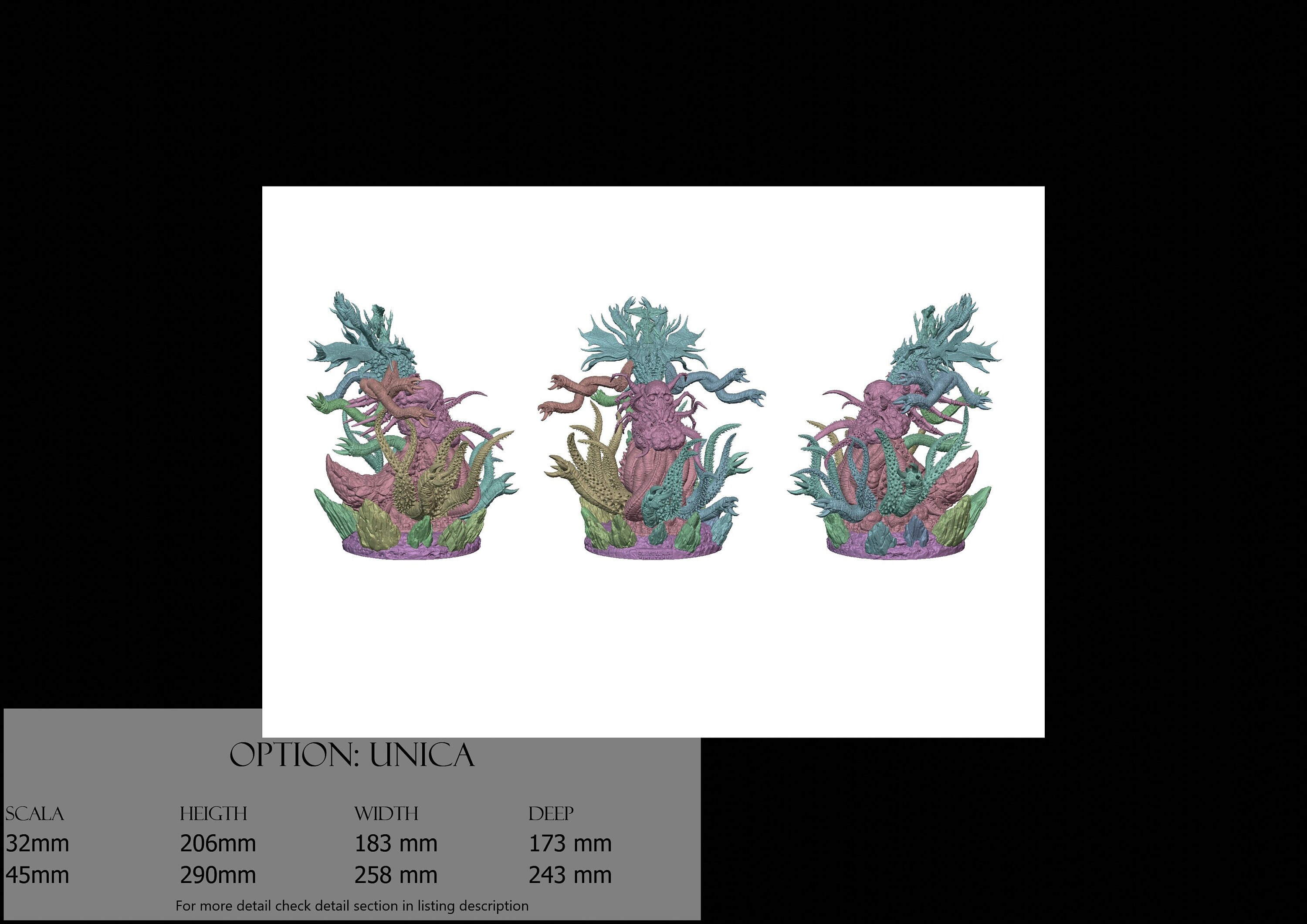- New component (13 pieces) in Resin: Height: 270 mm, Width: 258 mm, Depth: 243 mm