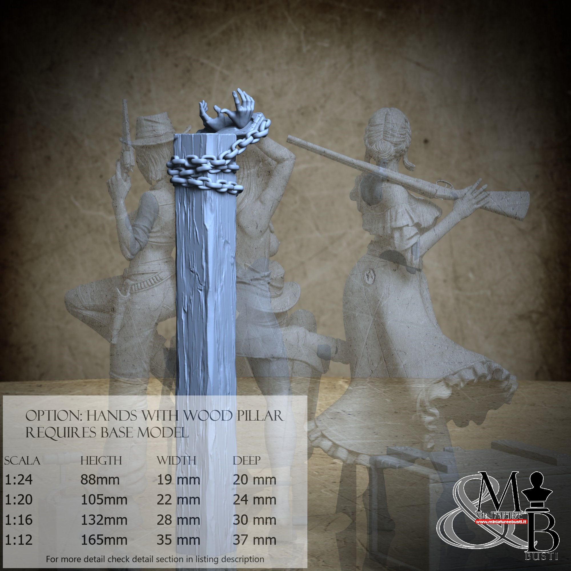 - Props (3 pezzi) in Resina : Altezza: 26 mm, Larghezza: 120 mm, Profondità: 42 mm