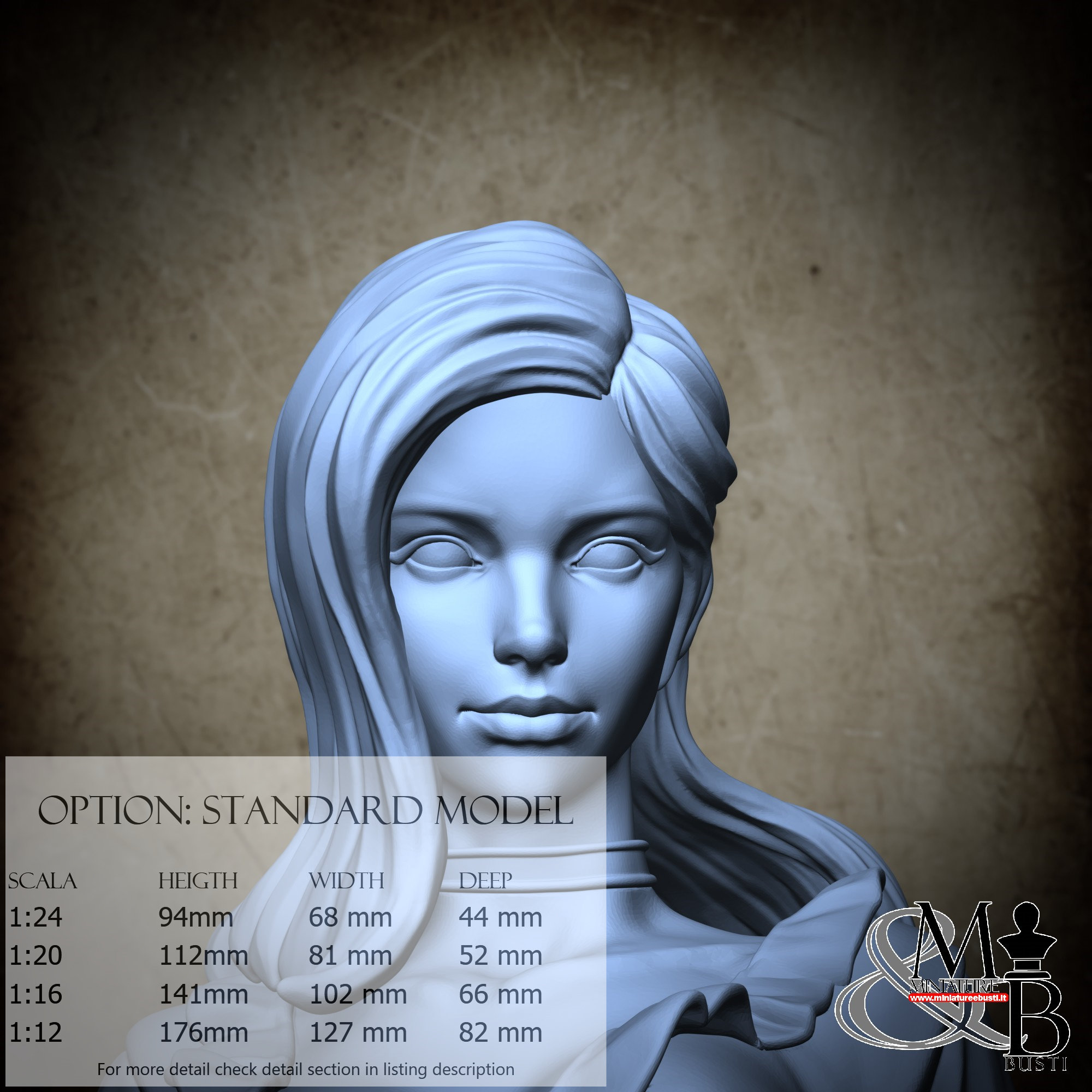 Colla, colori, stucco, e supporti per busti non sono inclusi nel prezzo.