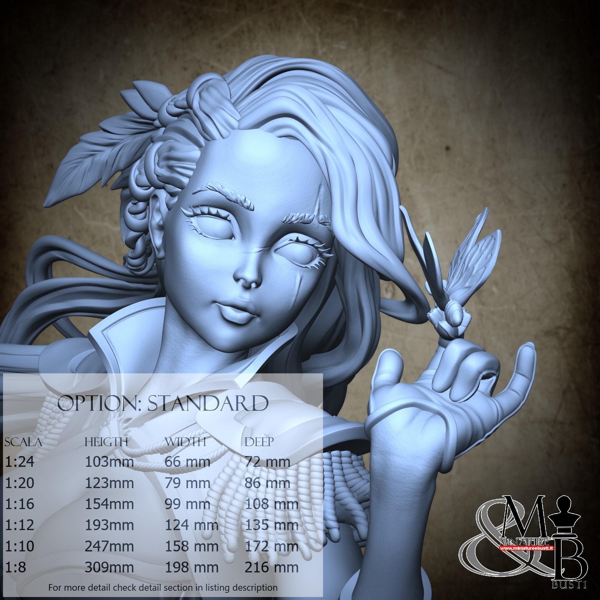 Colla, colori, stucco, e supporti per busti non sono inclusi nel prezzo.
