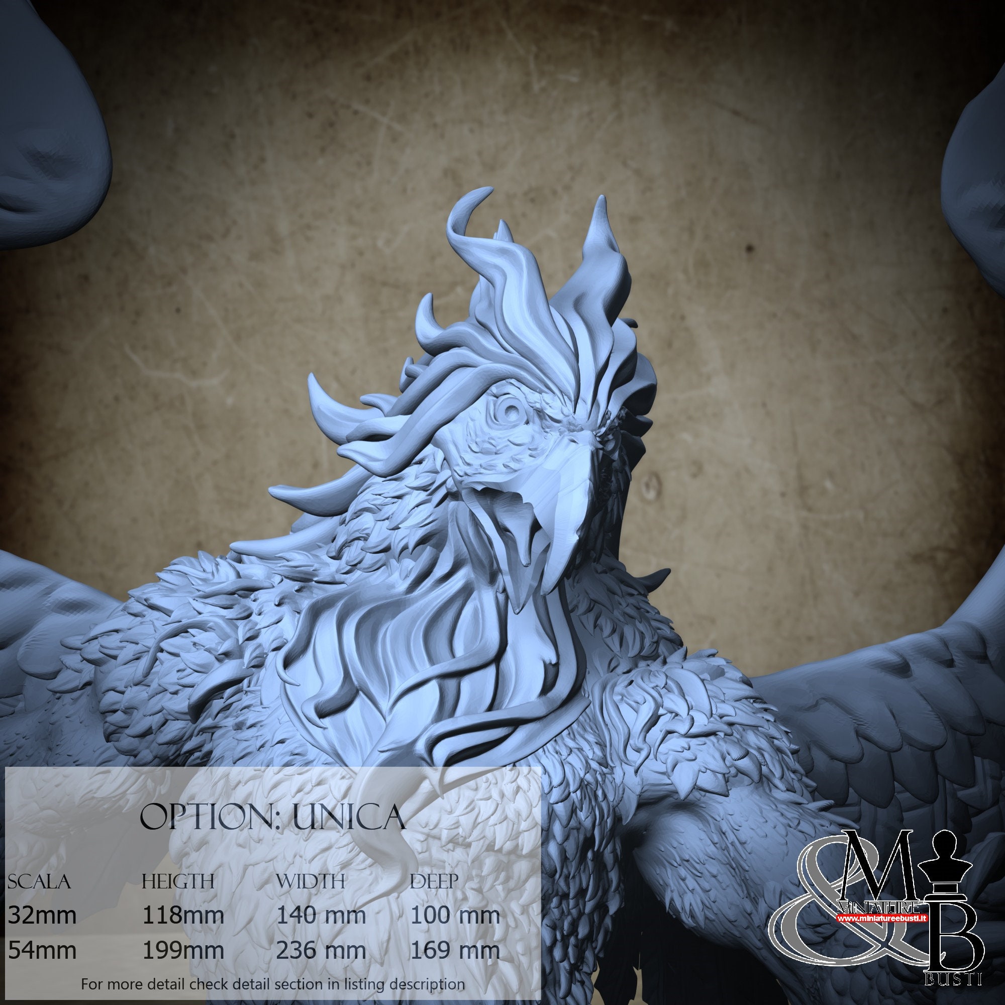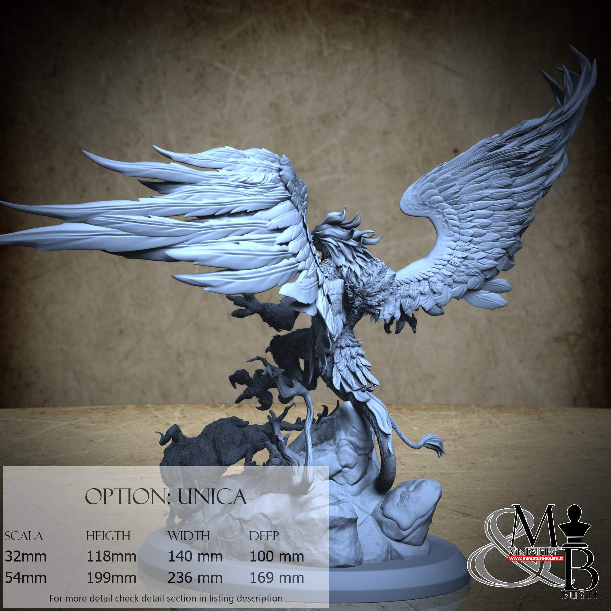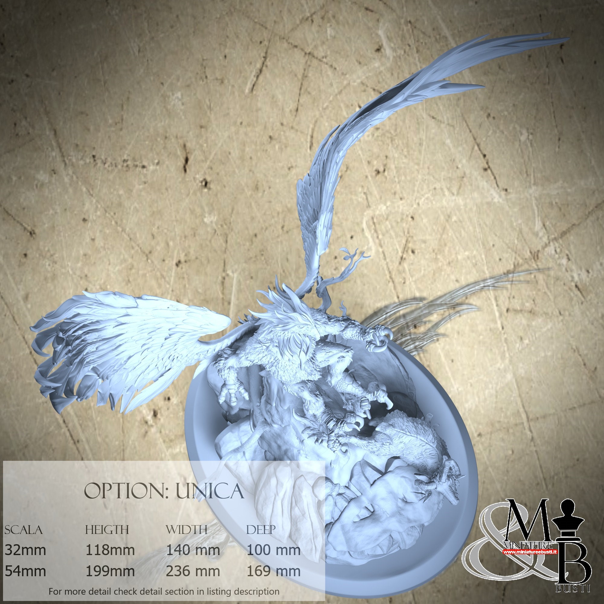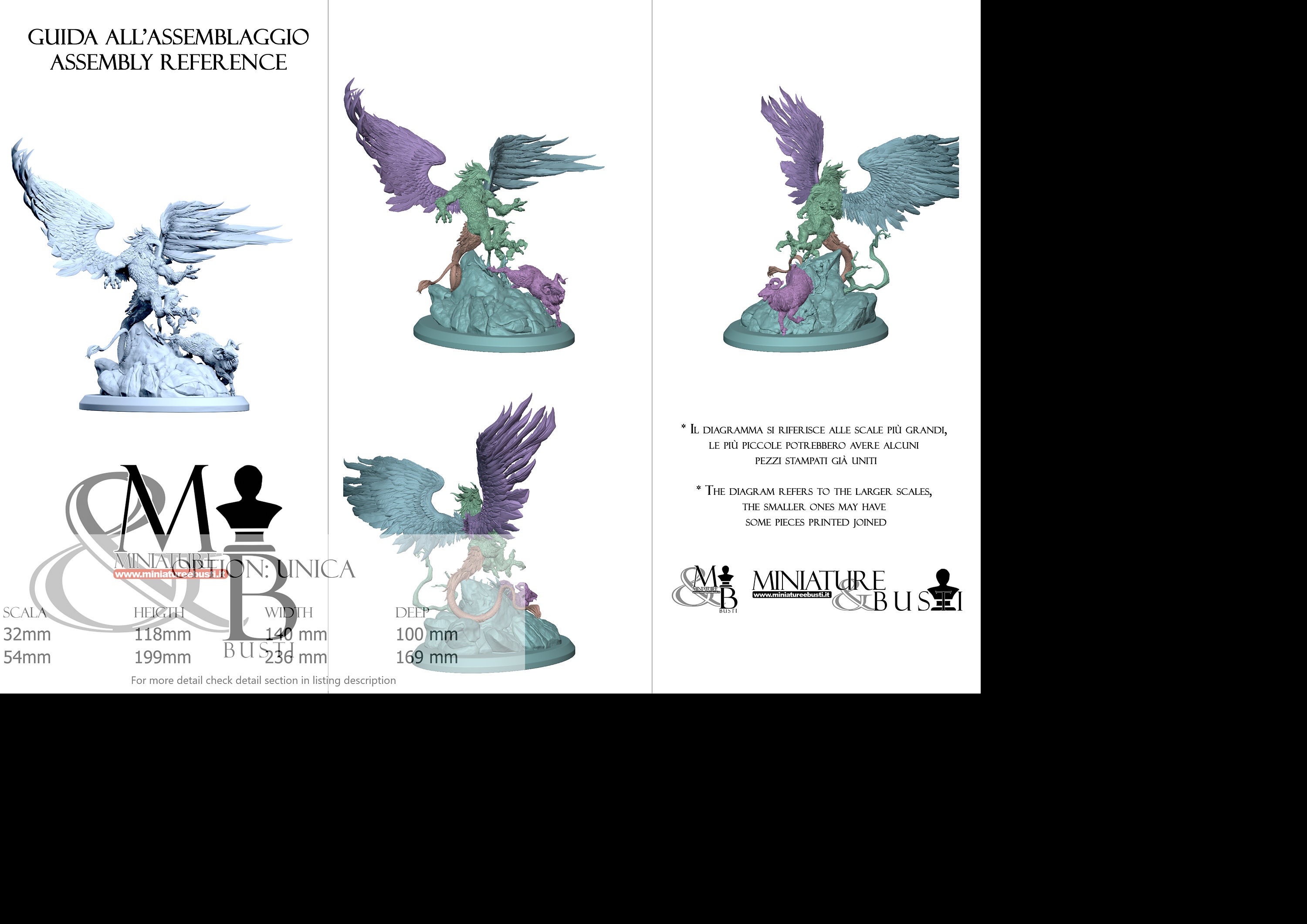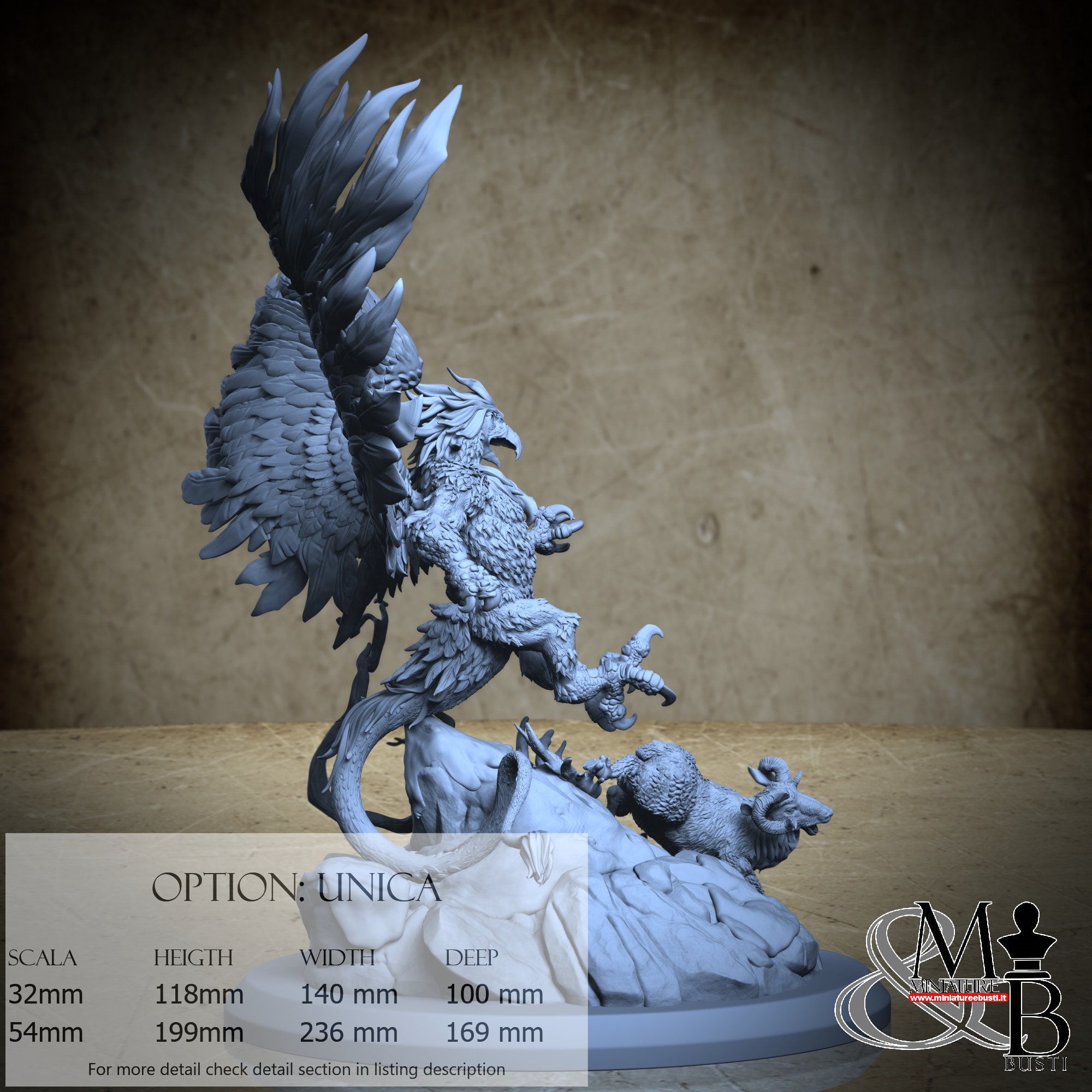 - Griffin (4 pieces) in Resin: Height: 99 mm, Width: 140 mm, Depth: 88 mm