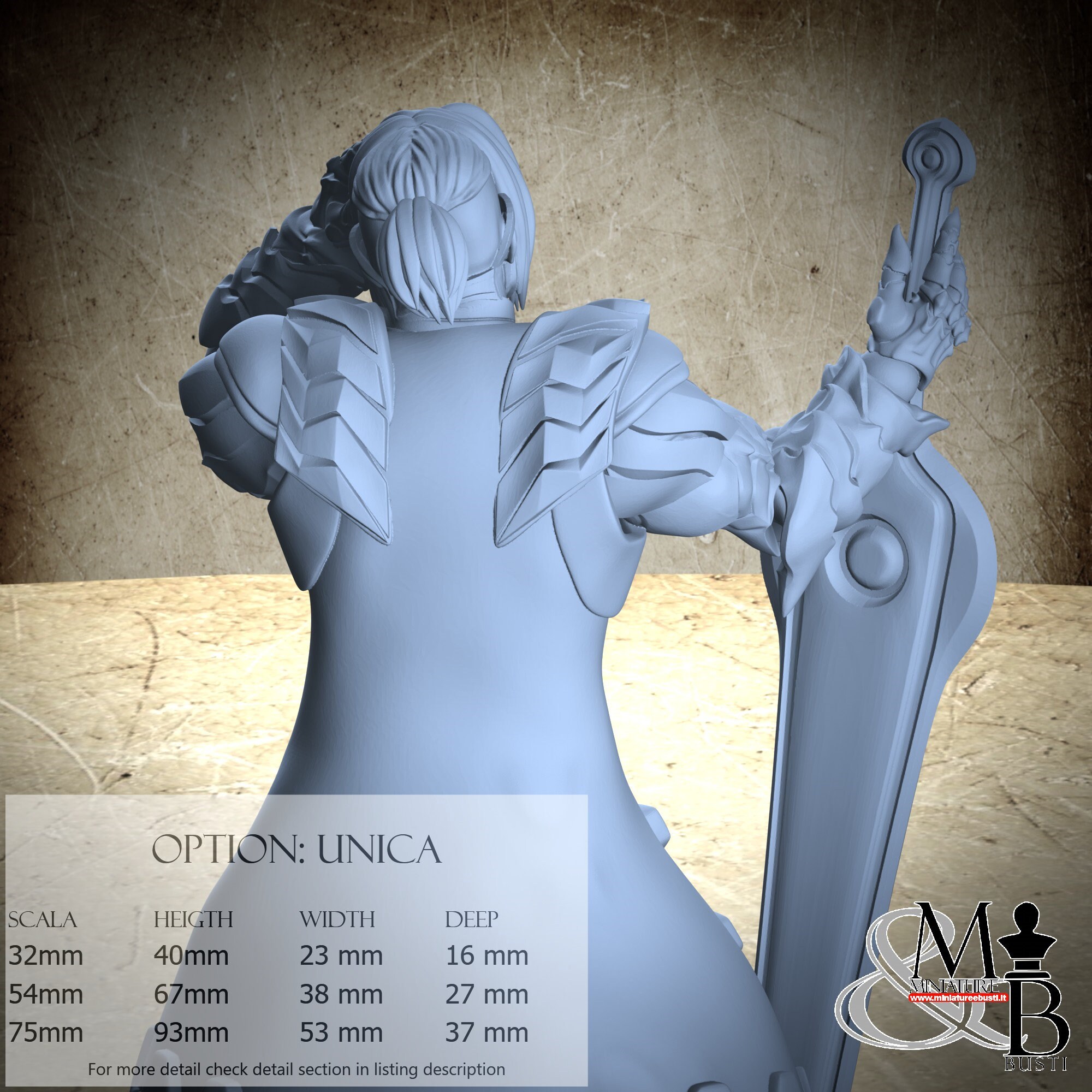- Figure (1 piece) in Resin: Height: 40 mm, Width: 23 mm, Depth: 16 mm