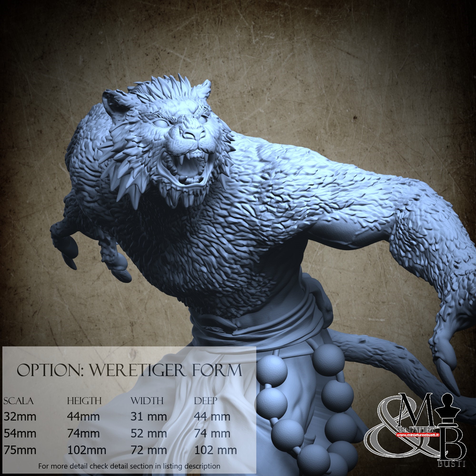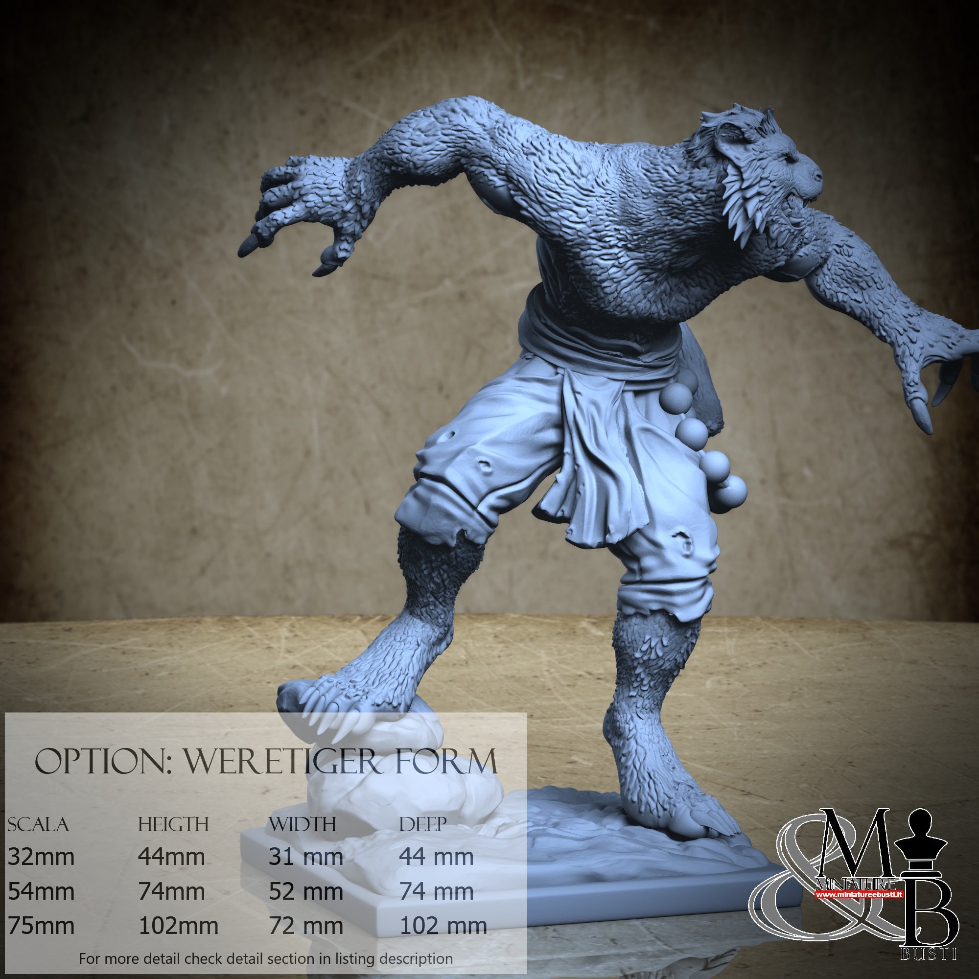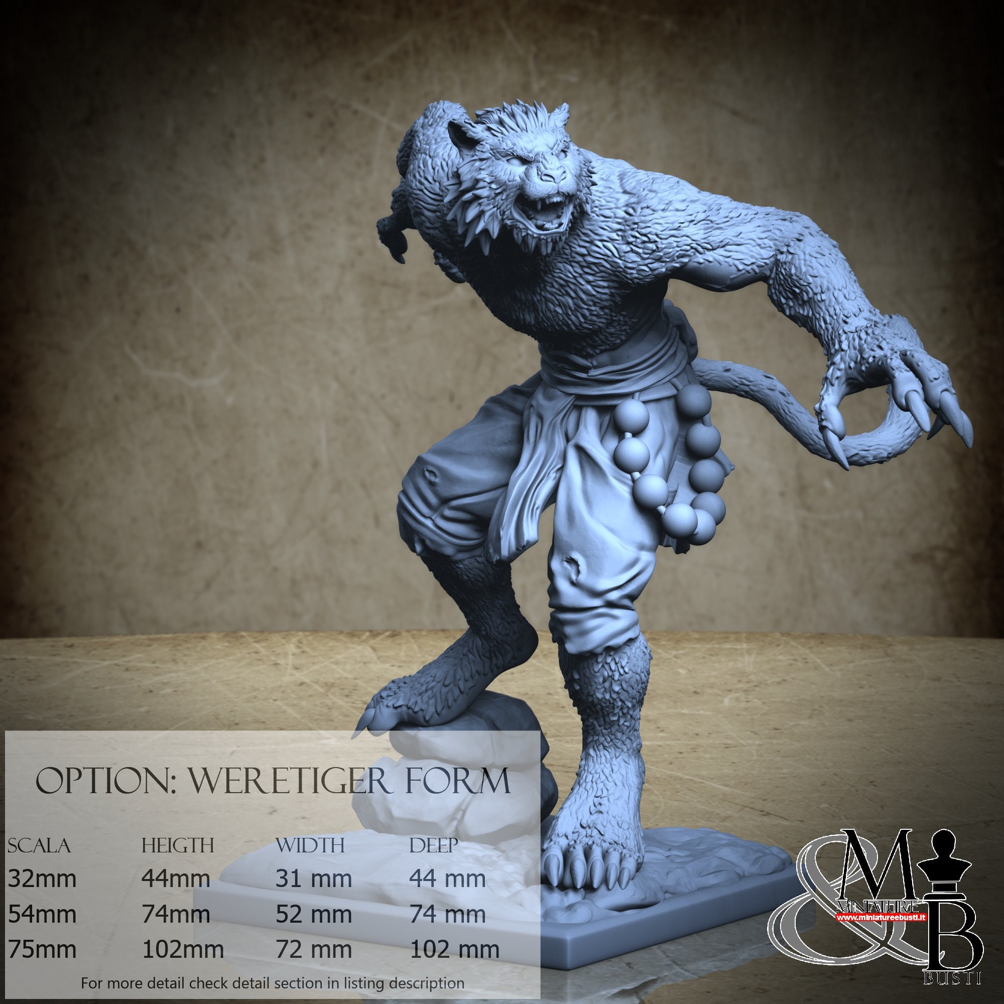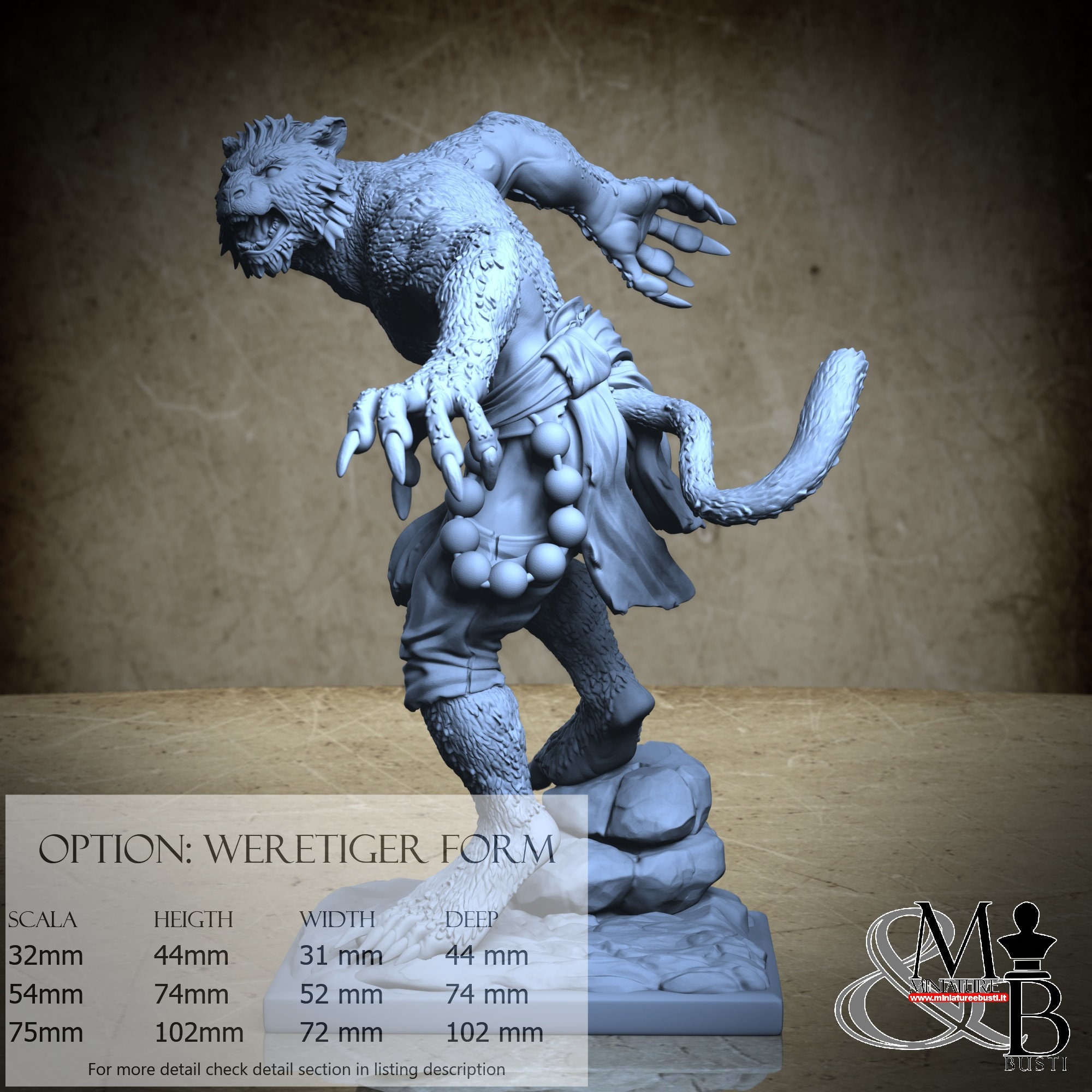 Weretiger Form variant, available in the following scales and costs: