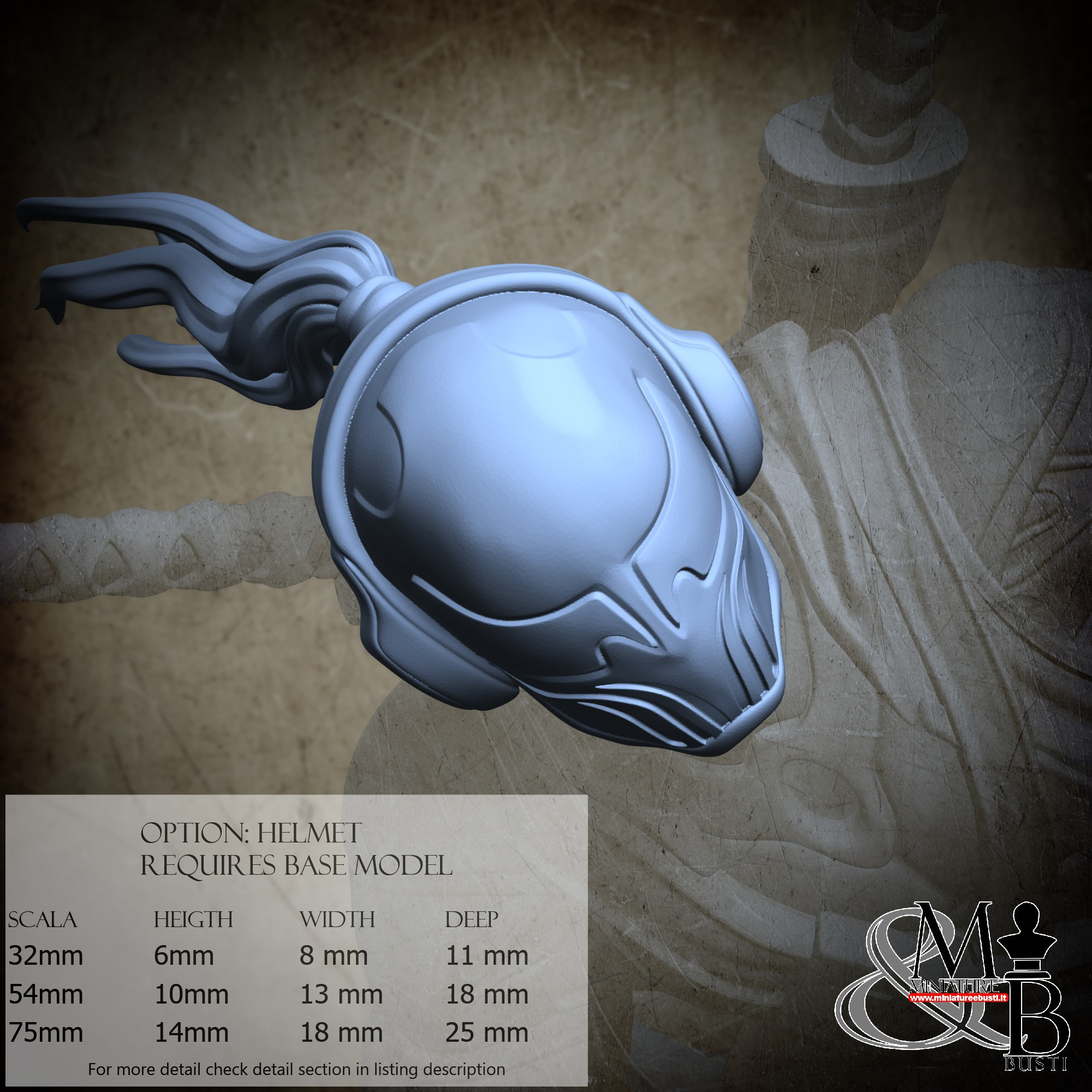 - Helmet (1 piece) in Resin: Height: 10 mm, Width: 13 mm, Depth: 18 mm