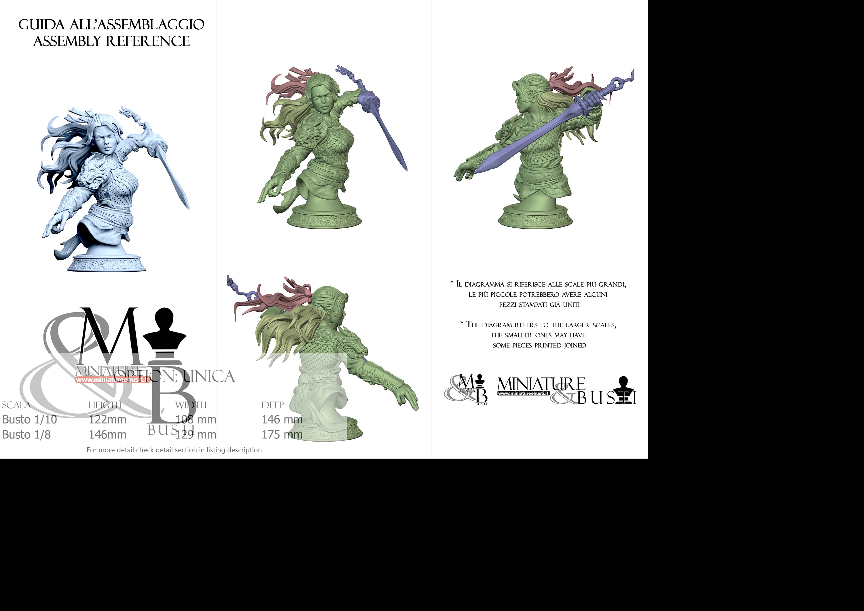 Bust Scale 1/10, cost €. 35.00 (Height: 122 mm, Width: 108 mm, Depth: 146 mm), composed of the following components: