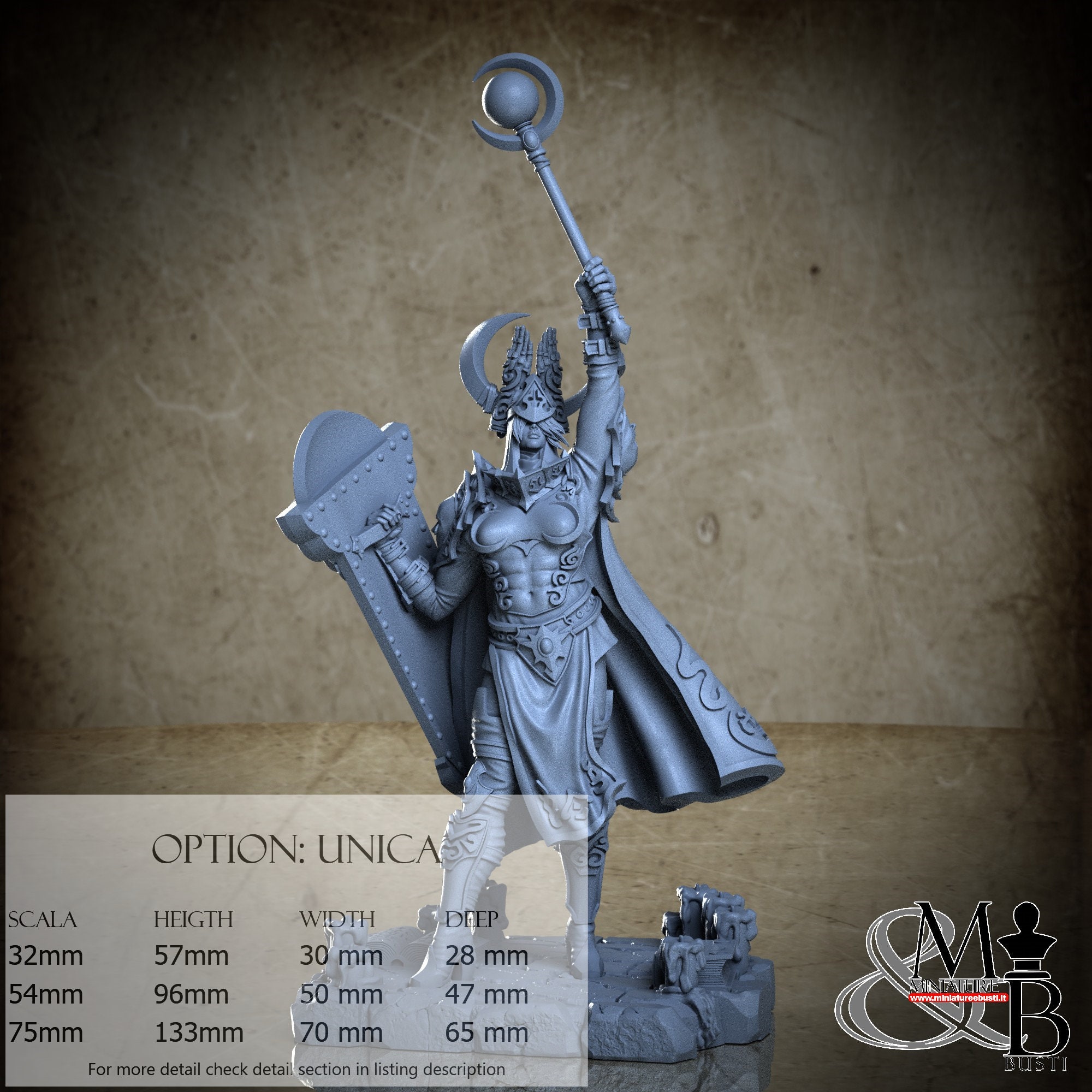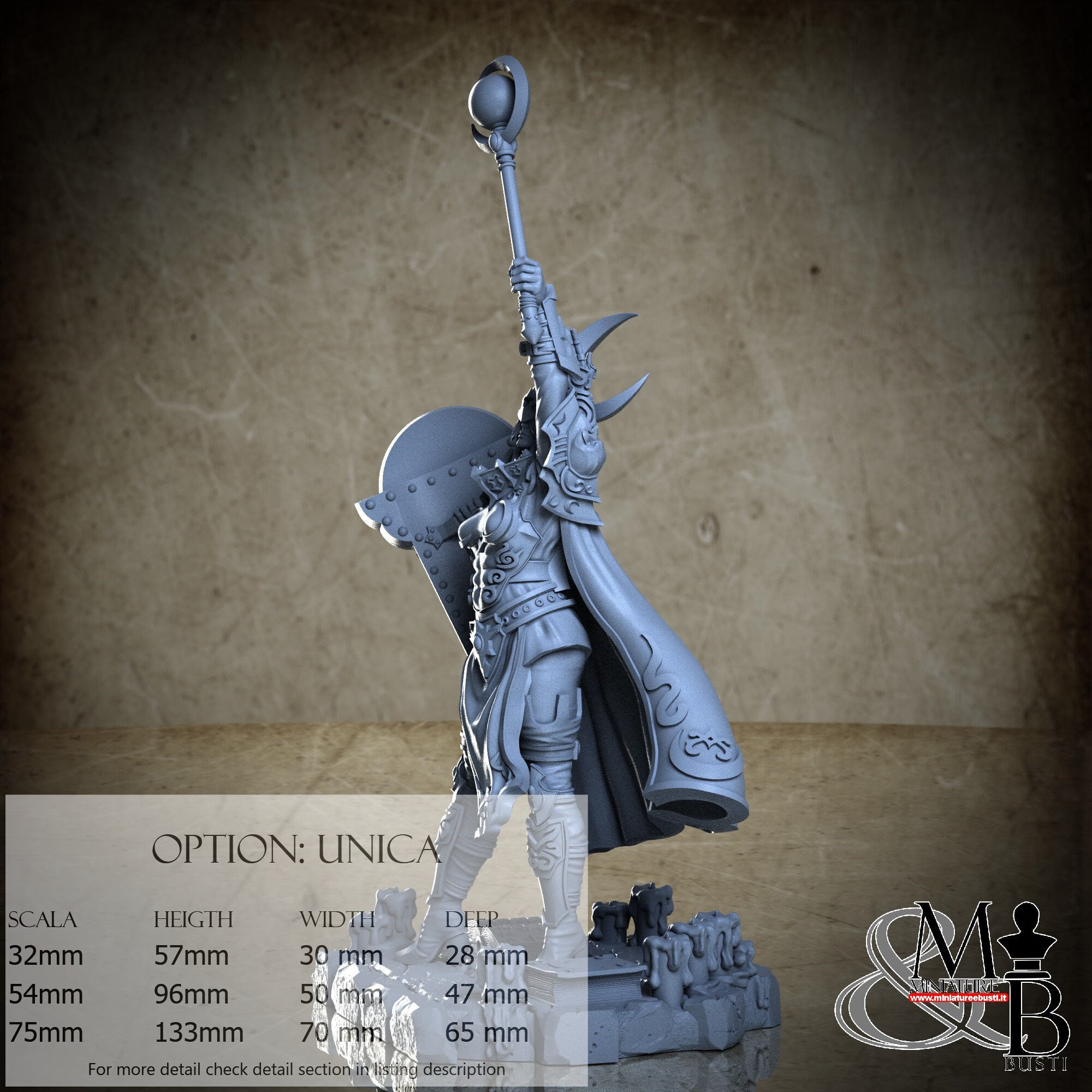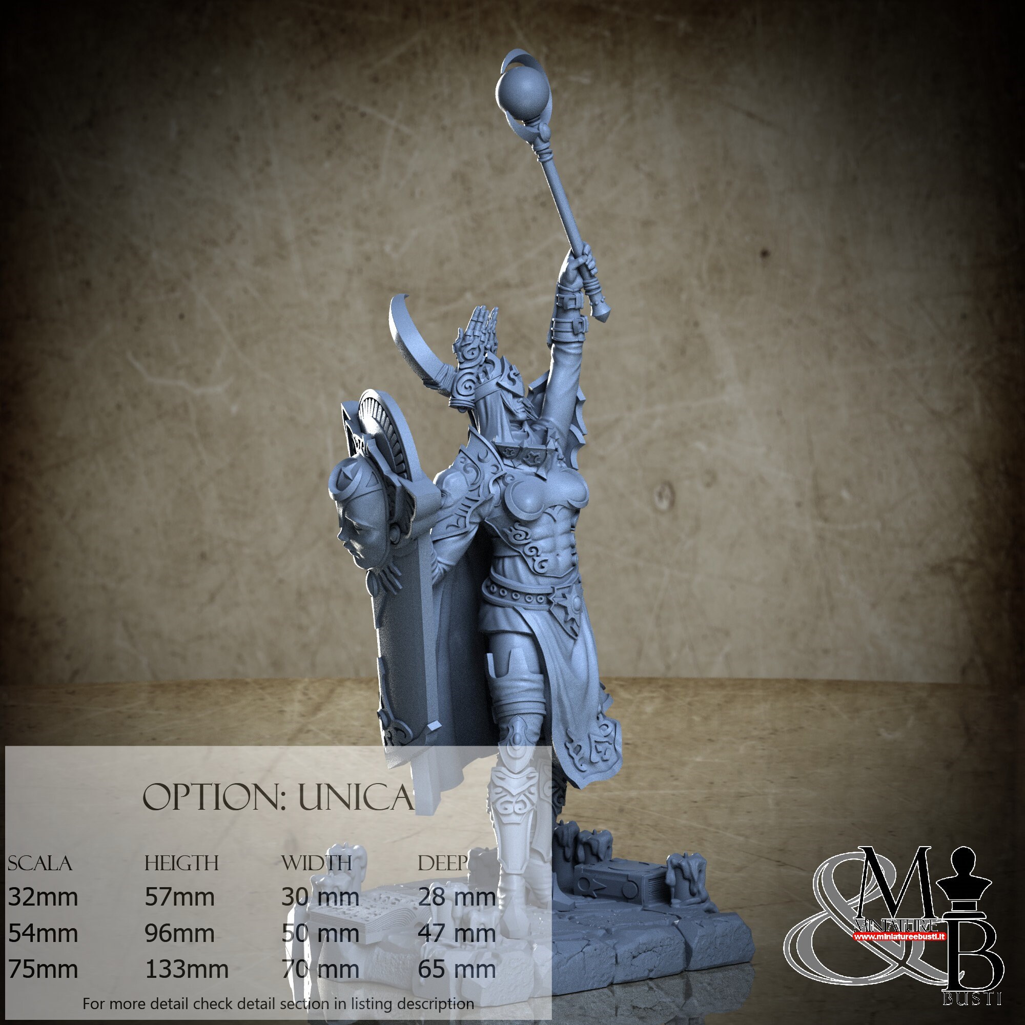 - Figure (1 piece) in Resin: Height: 54 mm, Width: 30 mm, Depth: 14 mm