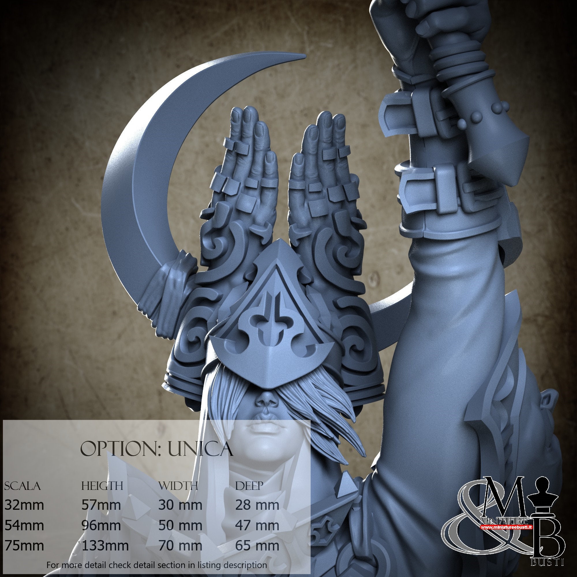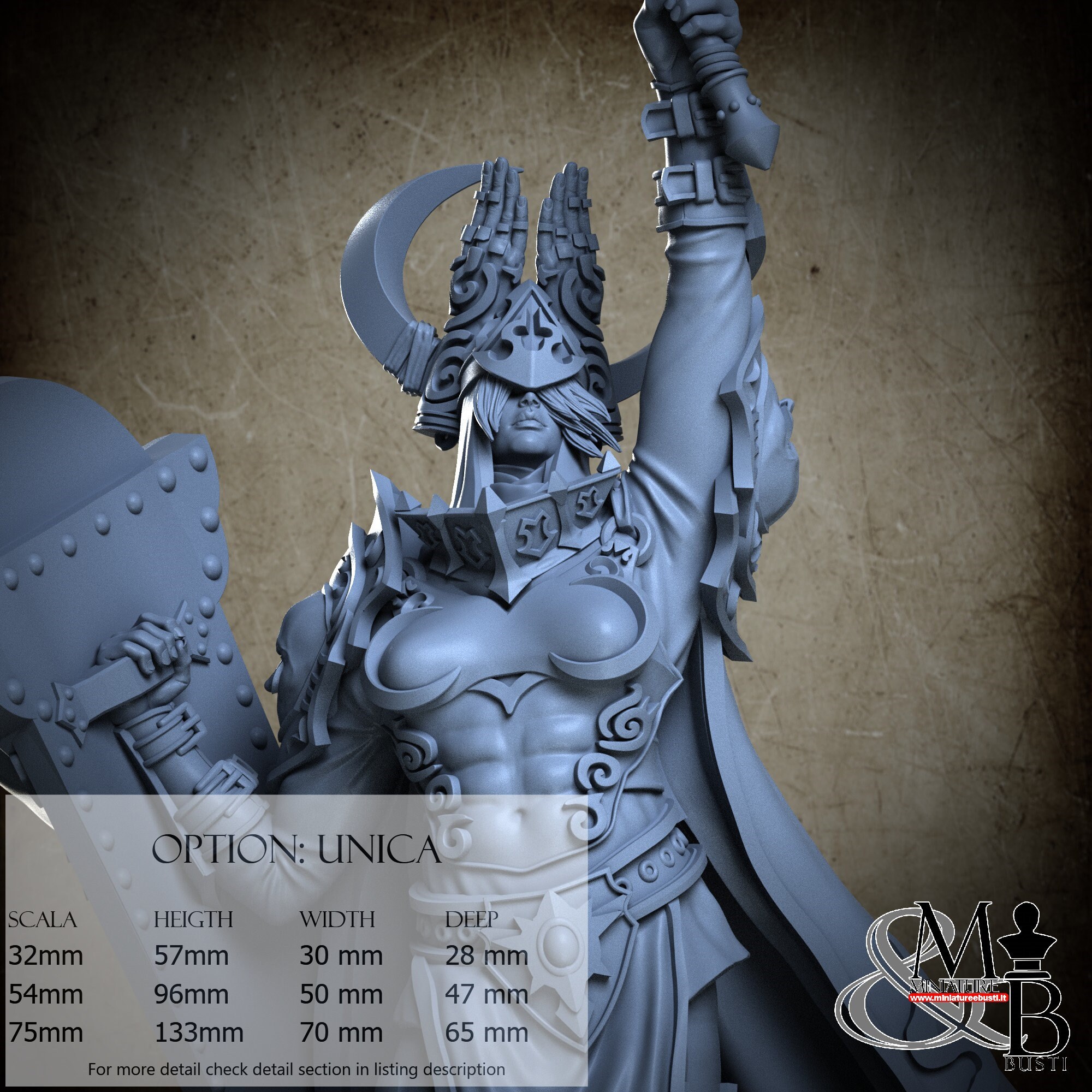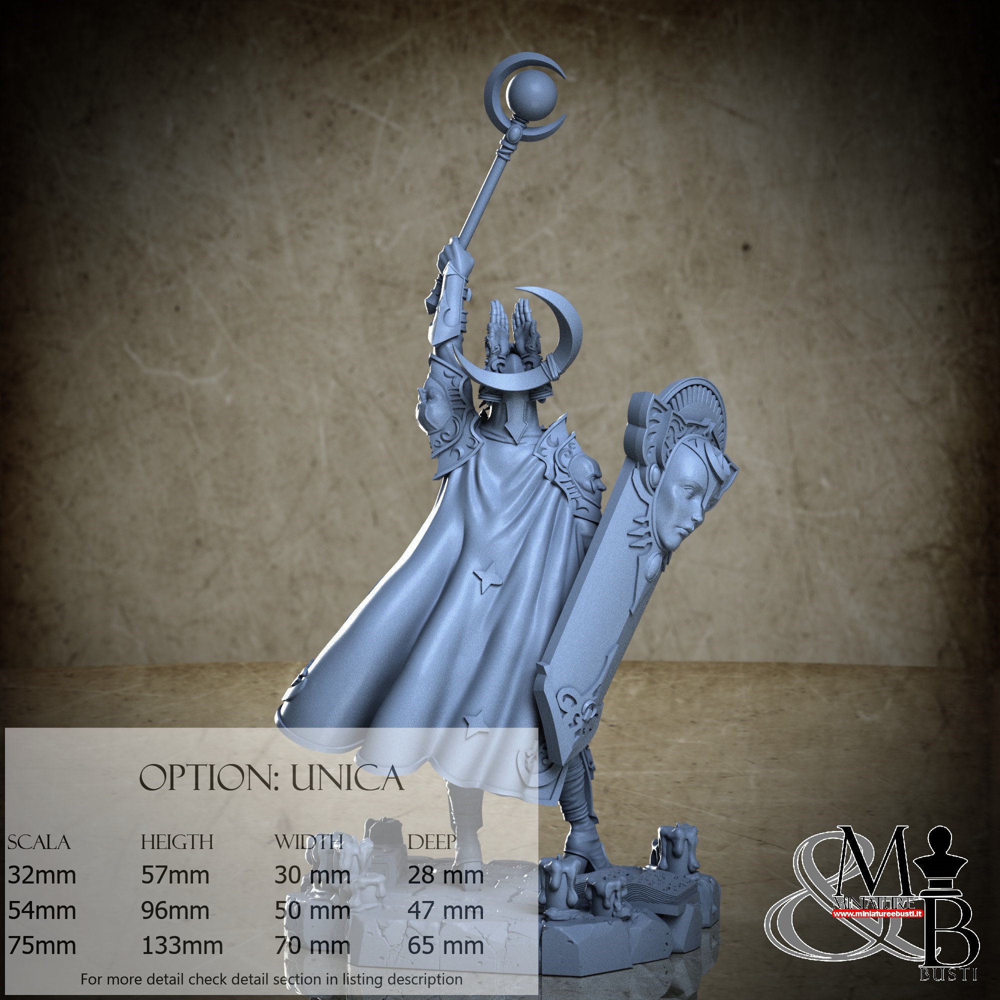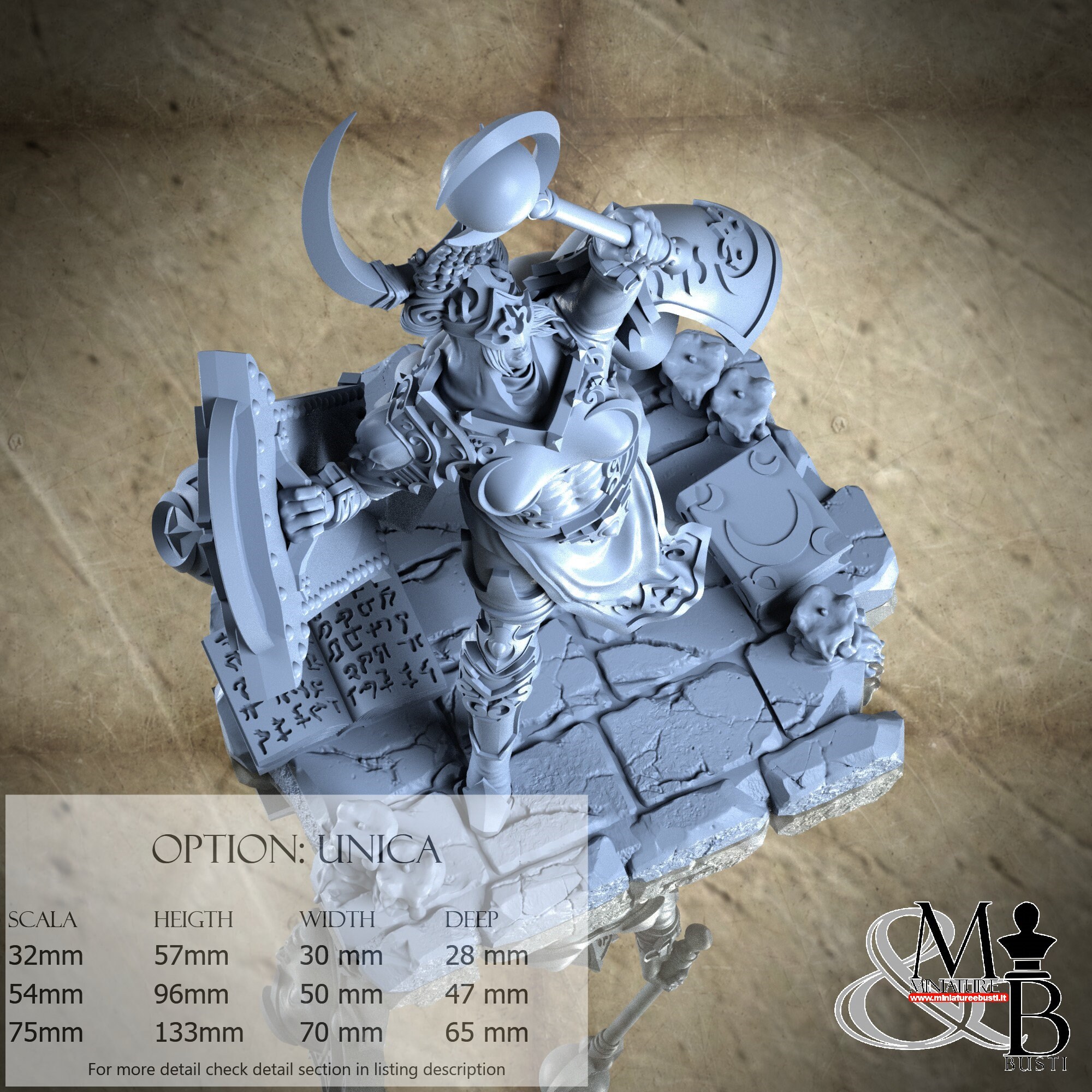 - Figure (1 piece) in Resin: Height: 54 mm, Width: 30 mm, Depth: 14 mm
