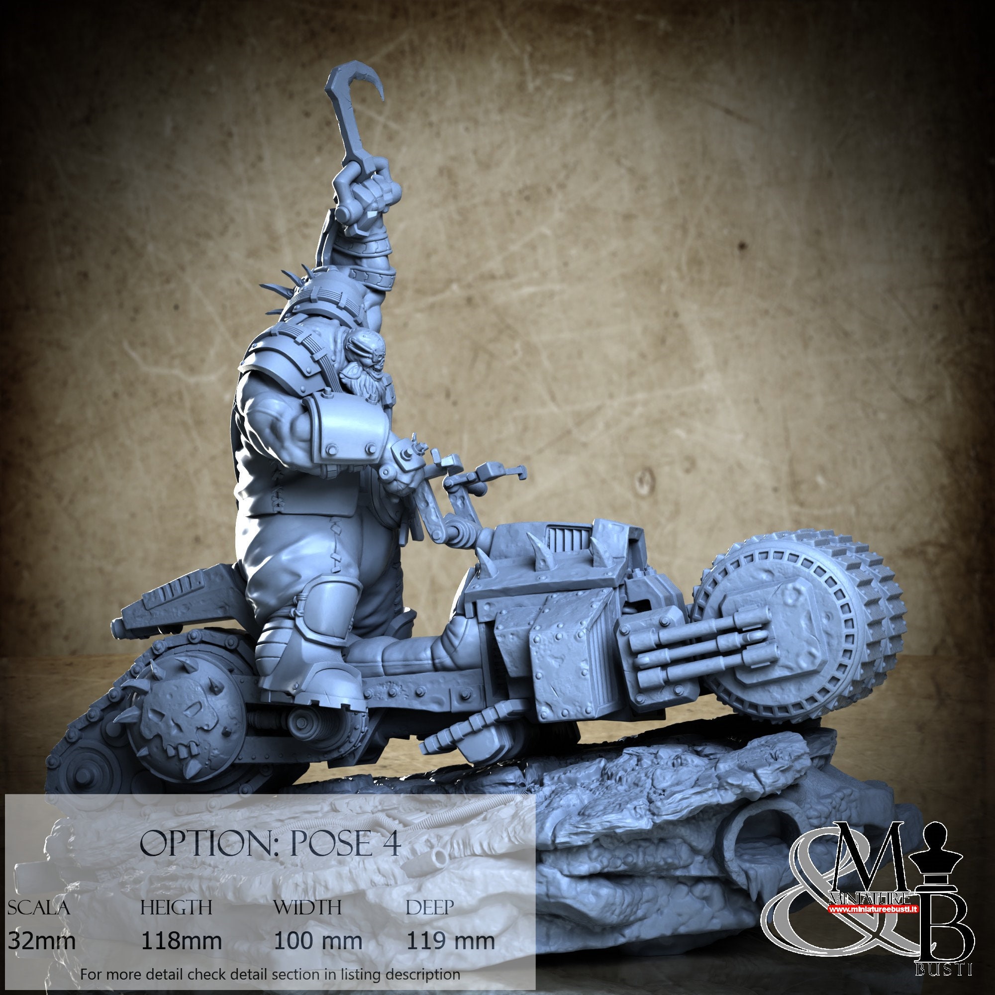 - Scale 32 mm, total measures Height: 93 mm, Width: 86 mm, Depth: 131 mm, €. 35.00