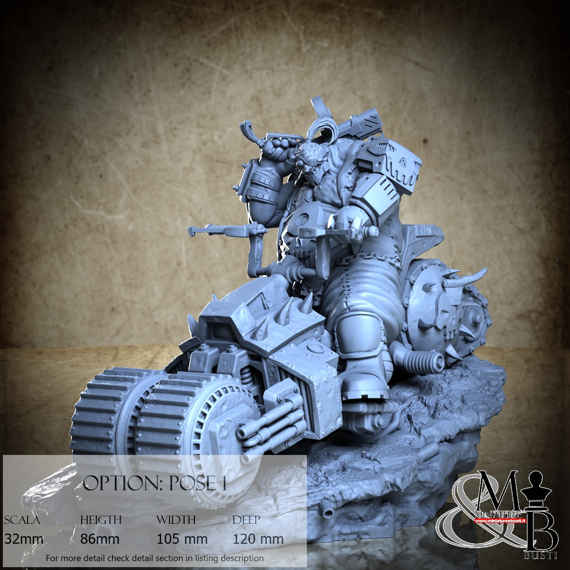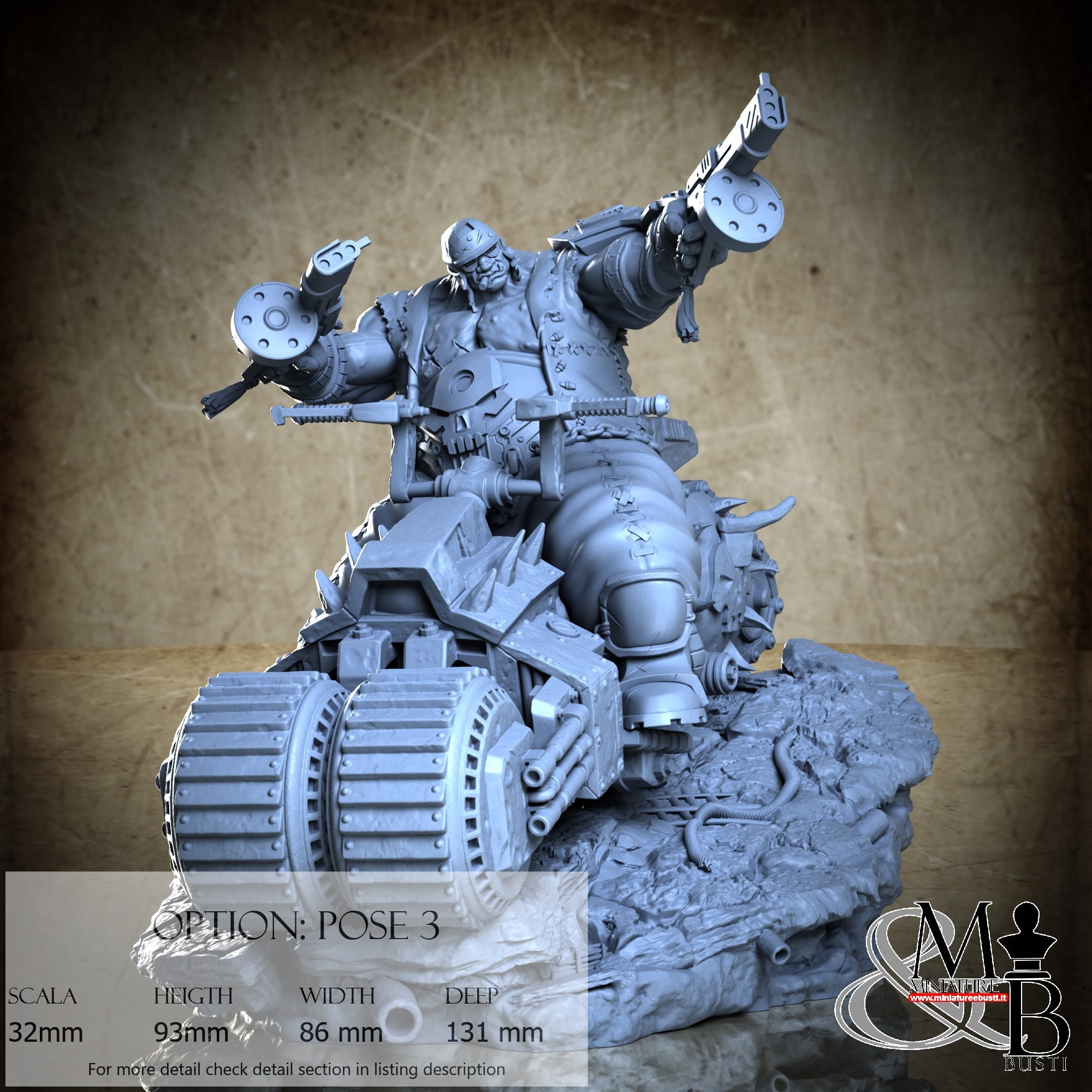 - Scale 32 mm, total measures Height: 95 mm, Width: 94 mm, Depth: 131 mm, €. 35.00