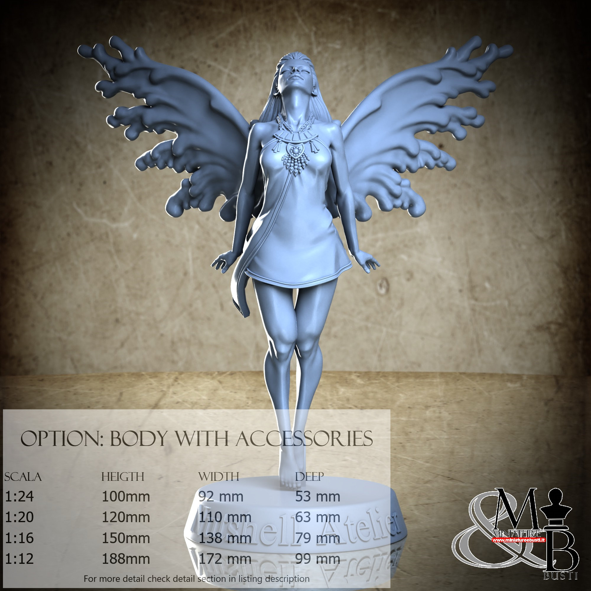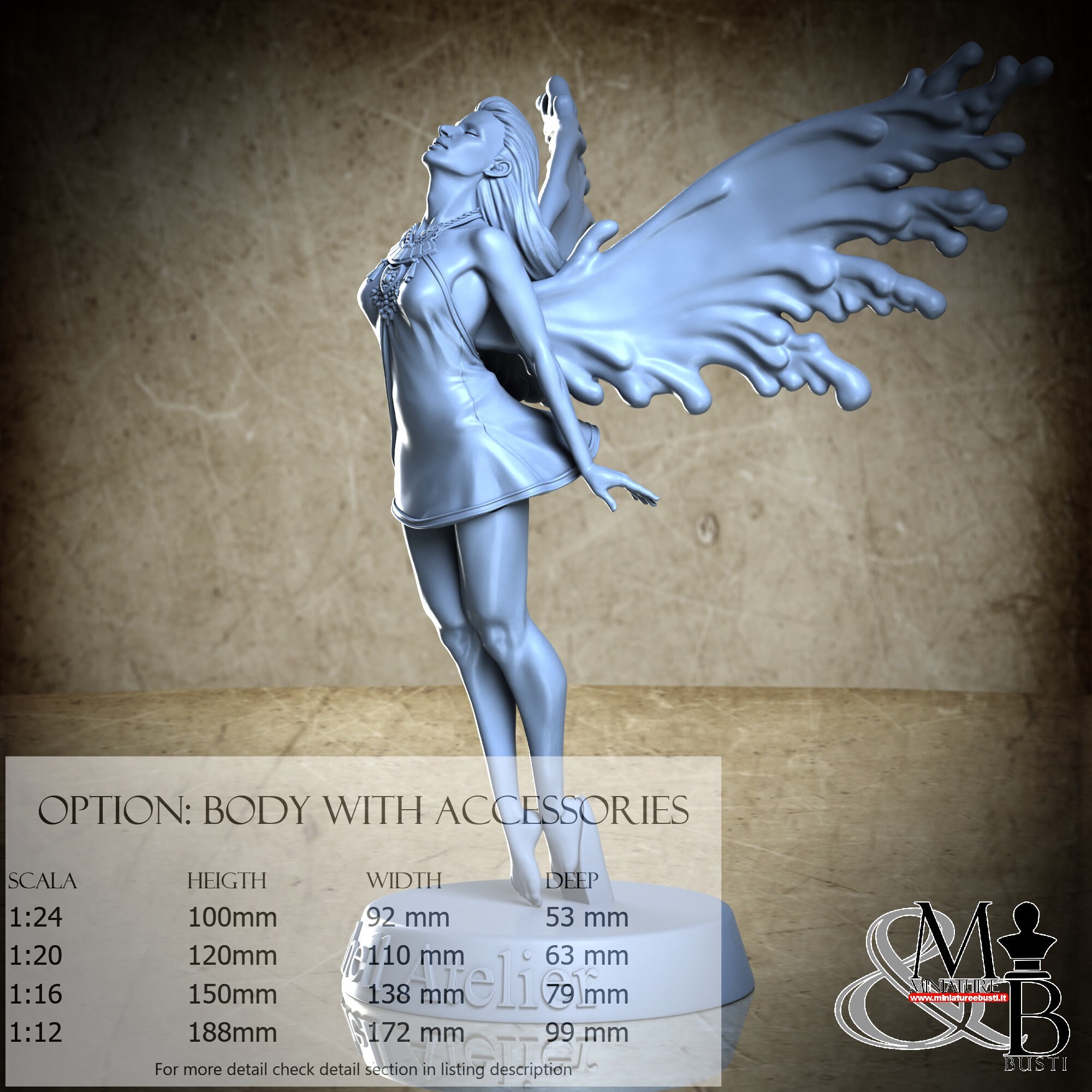 Colla, colori, stucco, e supporti per busti non sono inclusi nel prezzo.