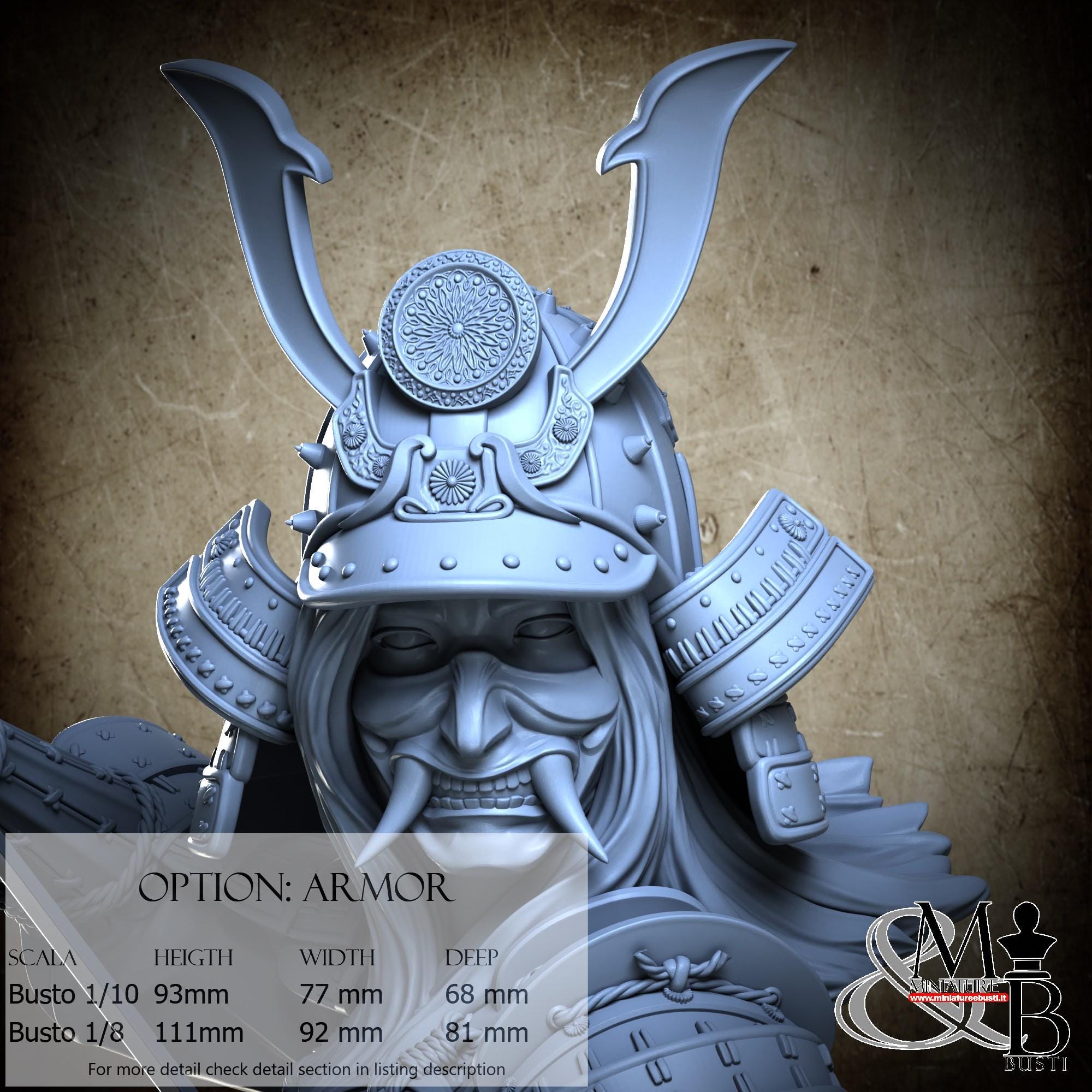 1/8 Bust Scale, cost €45.00 (Height: 111 mm, Width: 92 mm, Depth: 81 mm), composed of the following components: