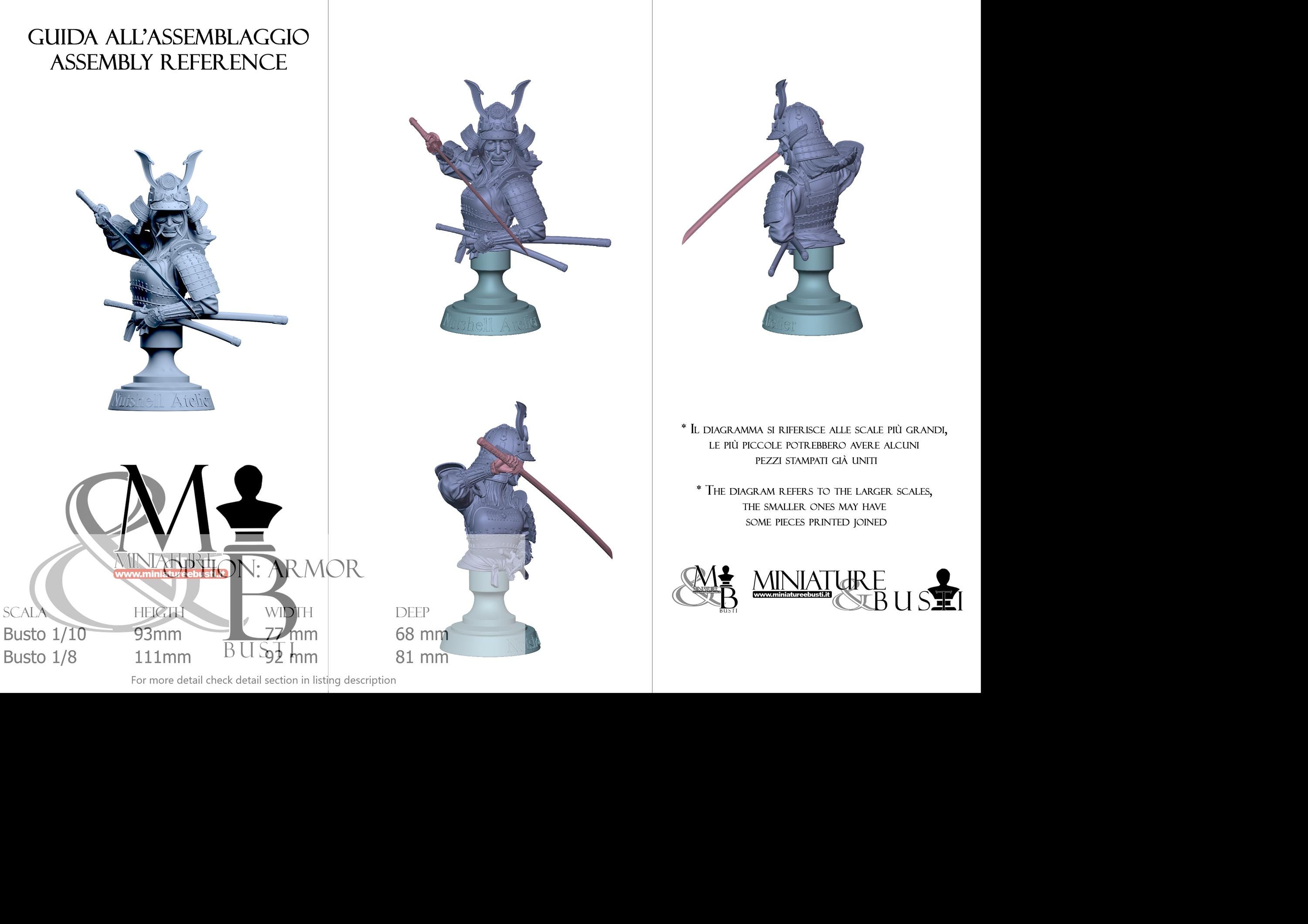 Bust Scale 1/10, cost €35.00 (Height: 93 mm, Width: 77 mm, Depth: 68 mm), composed of the following components: