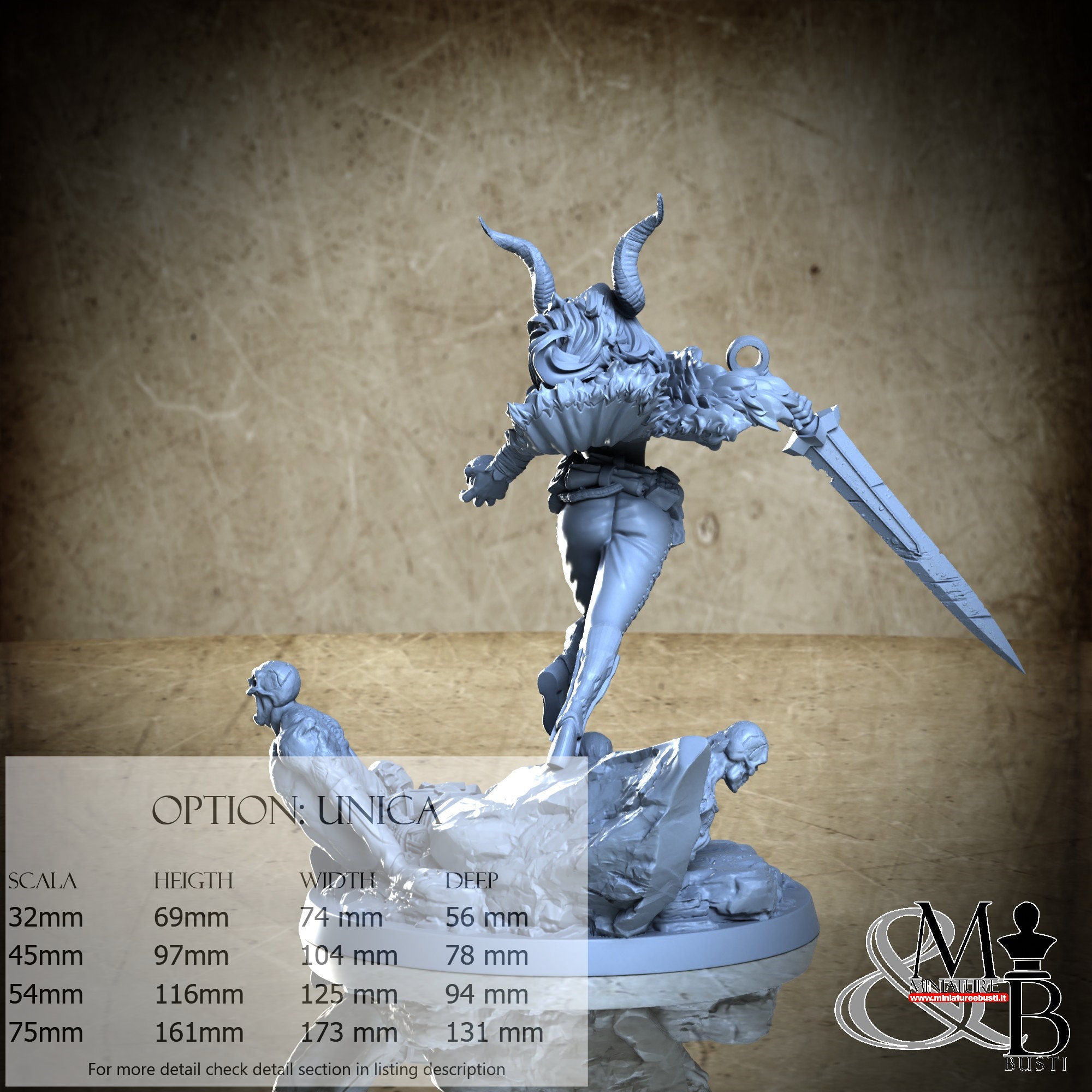 - Figure (1 piece) in Resin: Height: 54 mm, Width: 54 mm, Depth: 31 mm