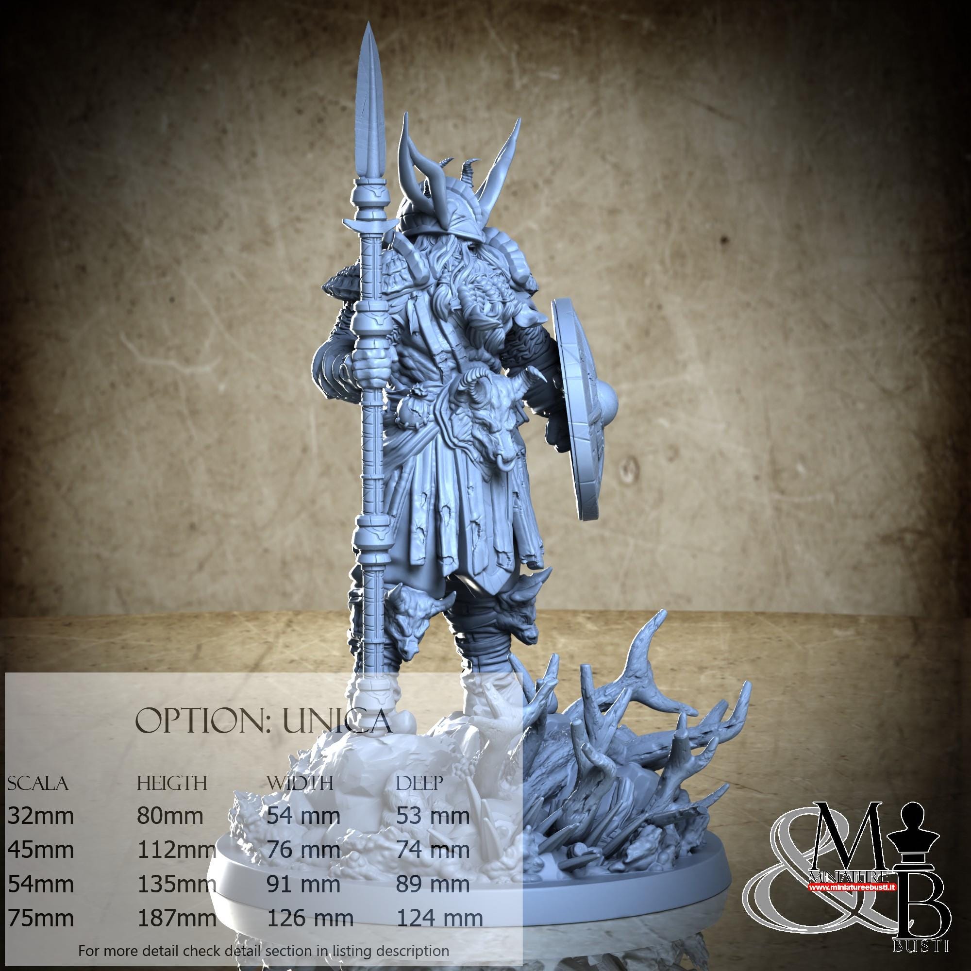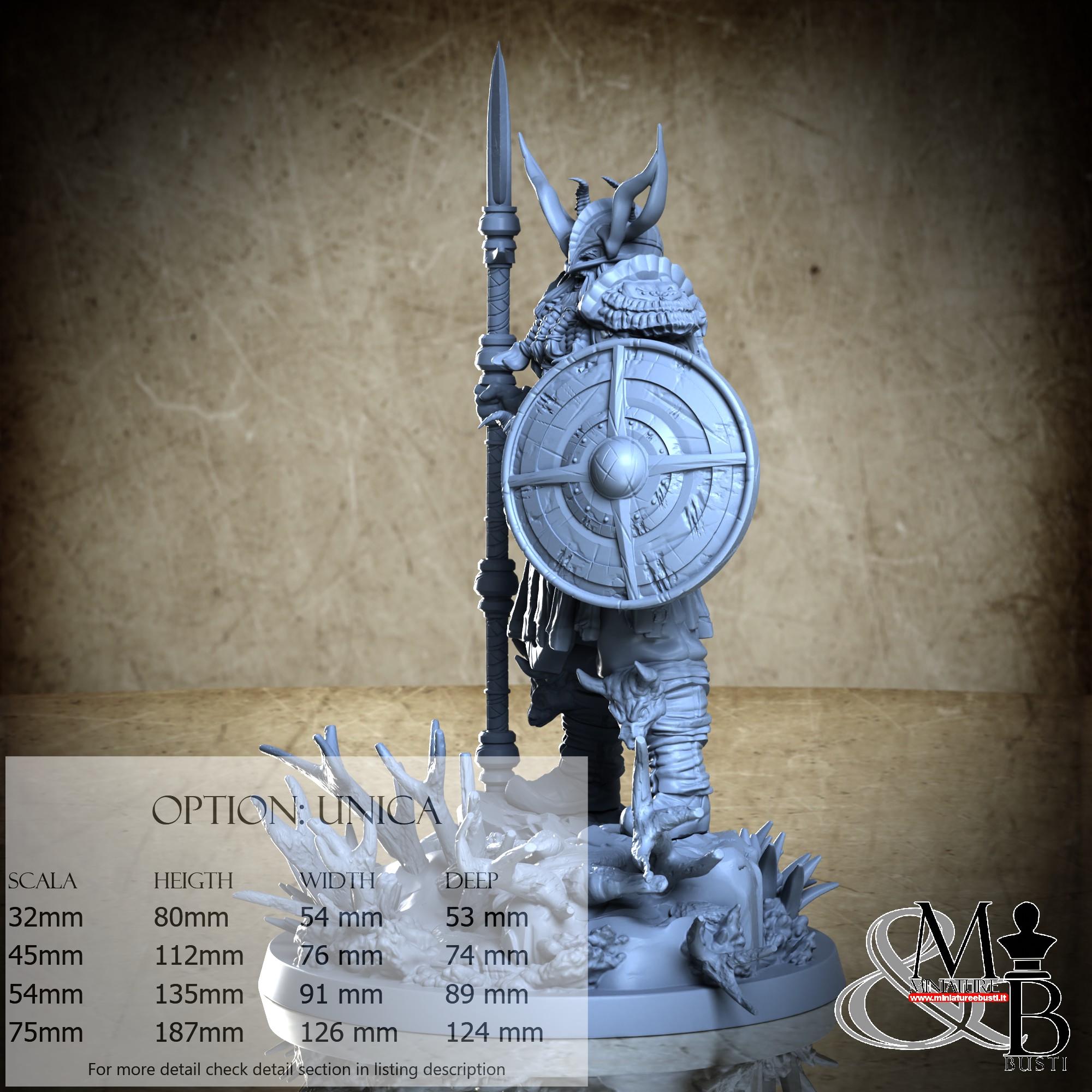 - Figure (1 piece) in Resin: Height: 94 mm, Width: 54 mm, Depth: 31 mm