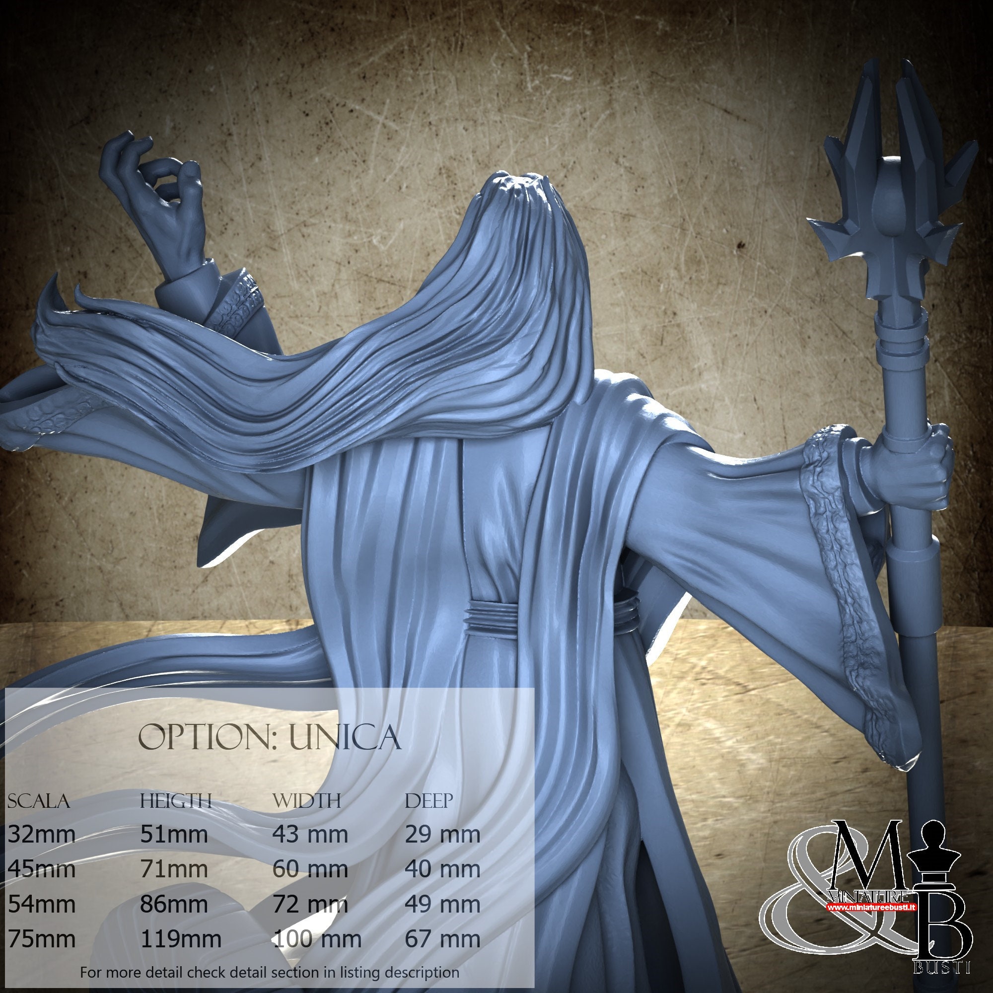 - Figure (1 piece) in Resin: Height: 47 mm, Width: 43 mm, Depth: 29 mm