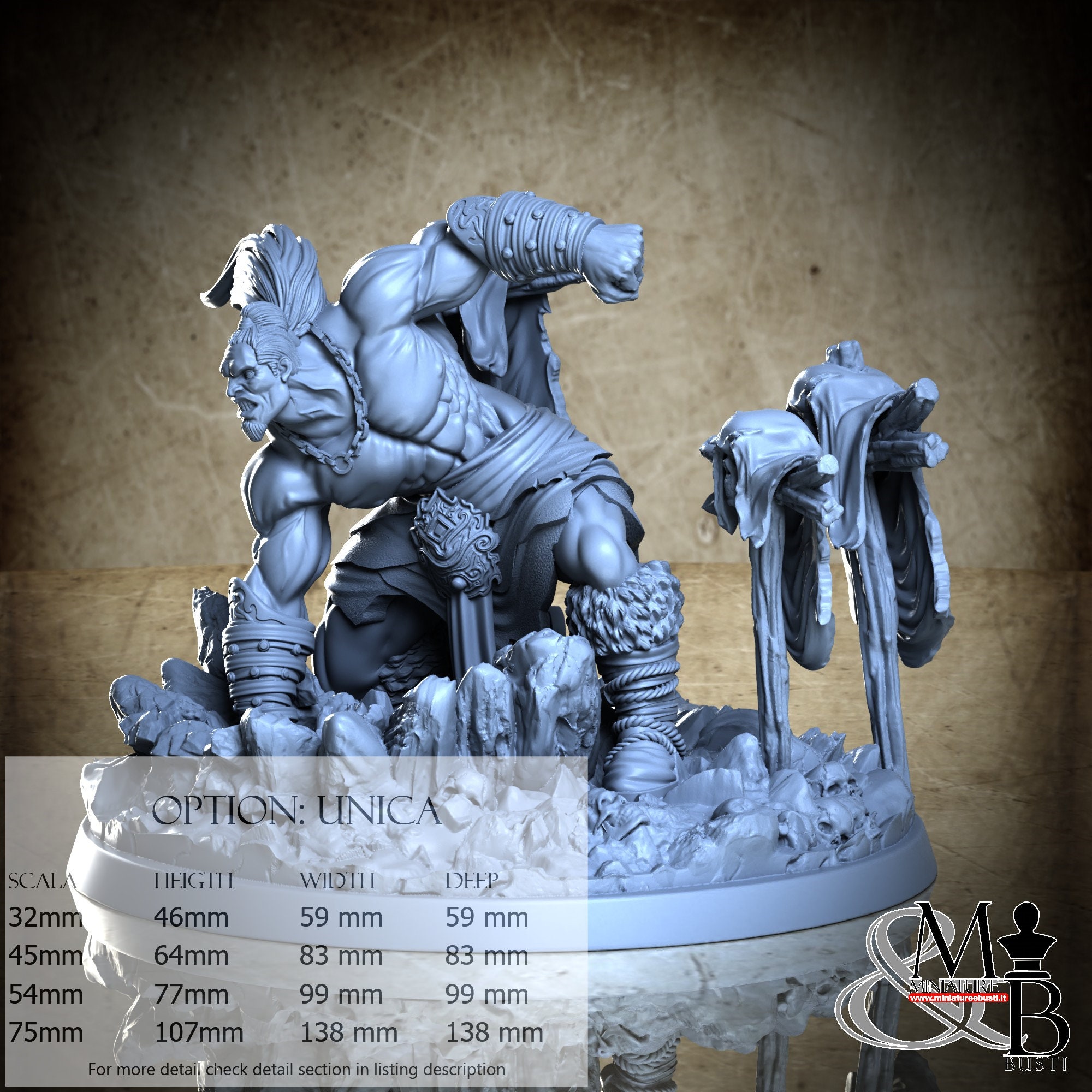 - Figure (1 piece) in Resin: Height: 54 mm, Width: 53 mm, Depth: 43 mm