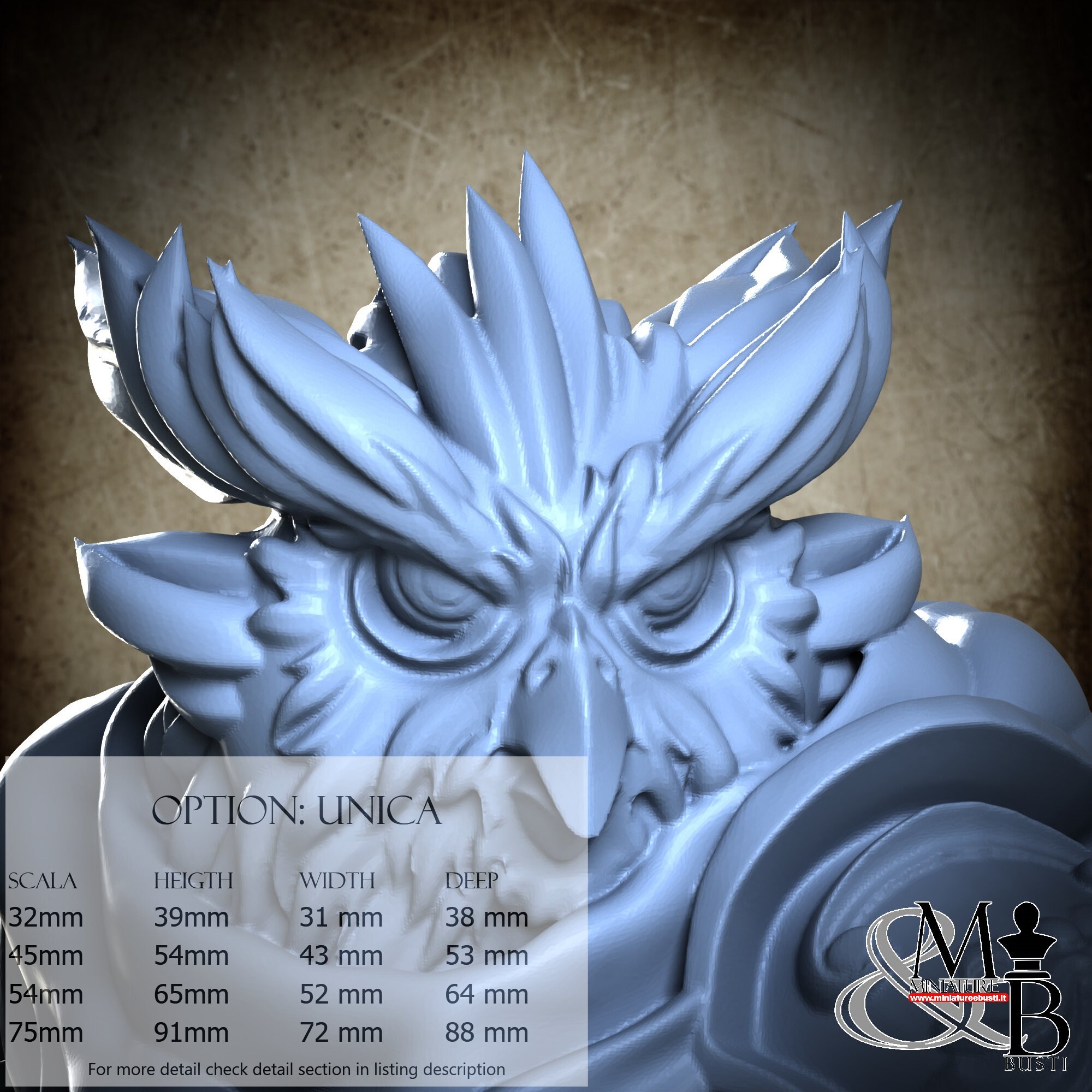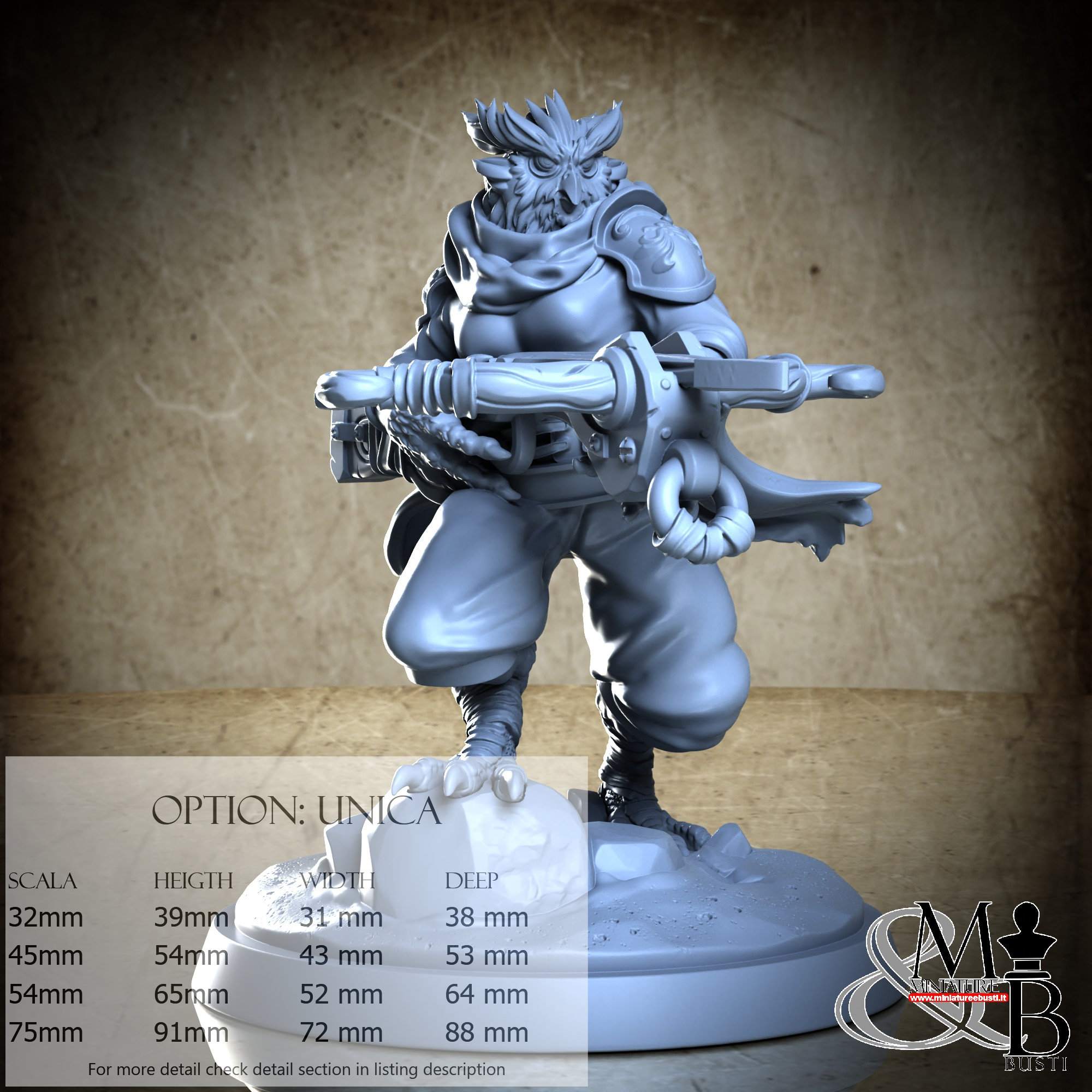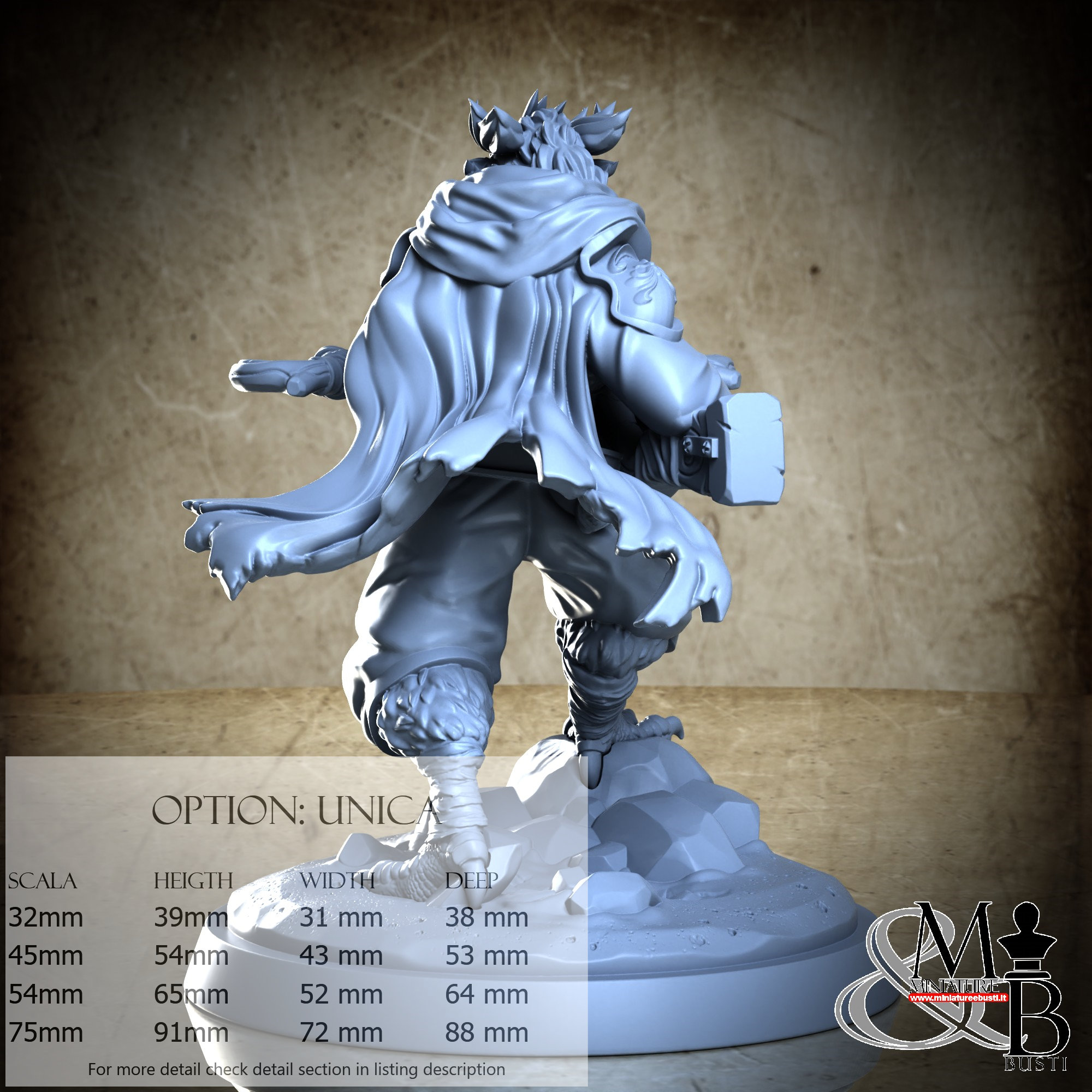 - Figure (1 piece) in Resin: Height: 49 mm, Width: 35 mm, Depth: 50 mm