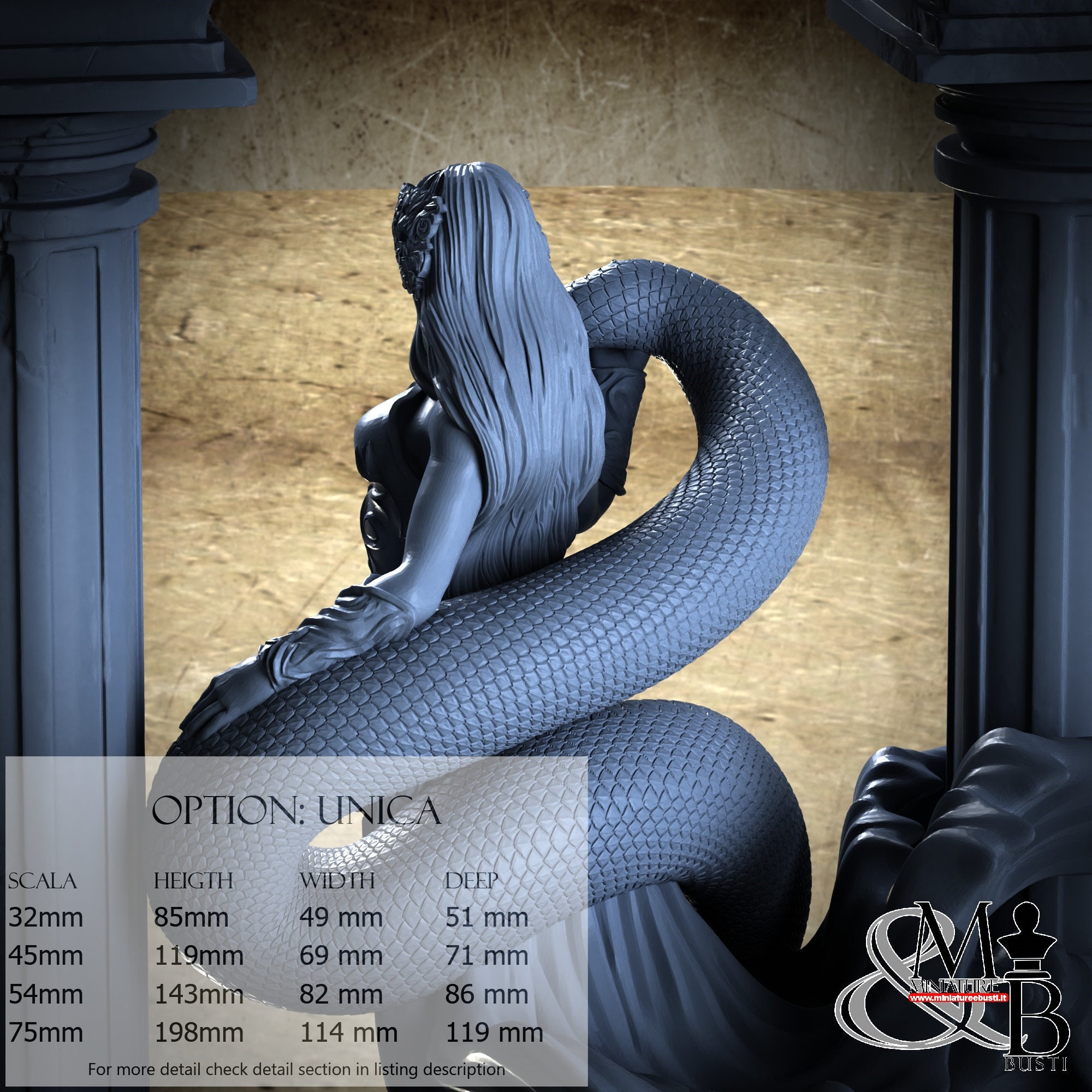 - Base (2 pieces) in Resin: Height: 85 mm, Width: 49 mm, Depth: 49 mm