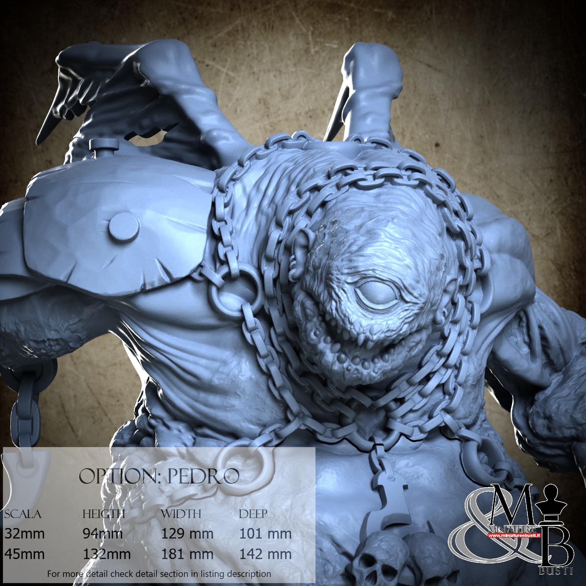 - Scale 32 mm, total measures Height: 94 mm, Width: 129 mm, Depth: 101 mm, €. 24.00