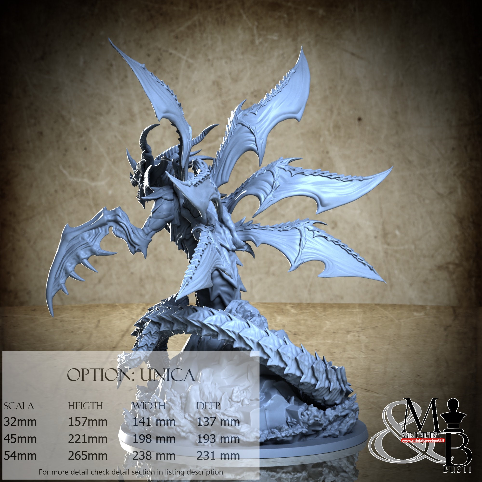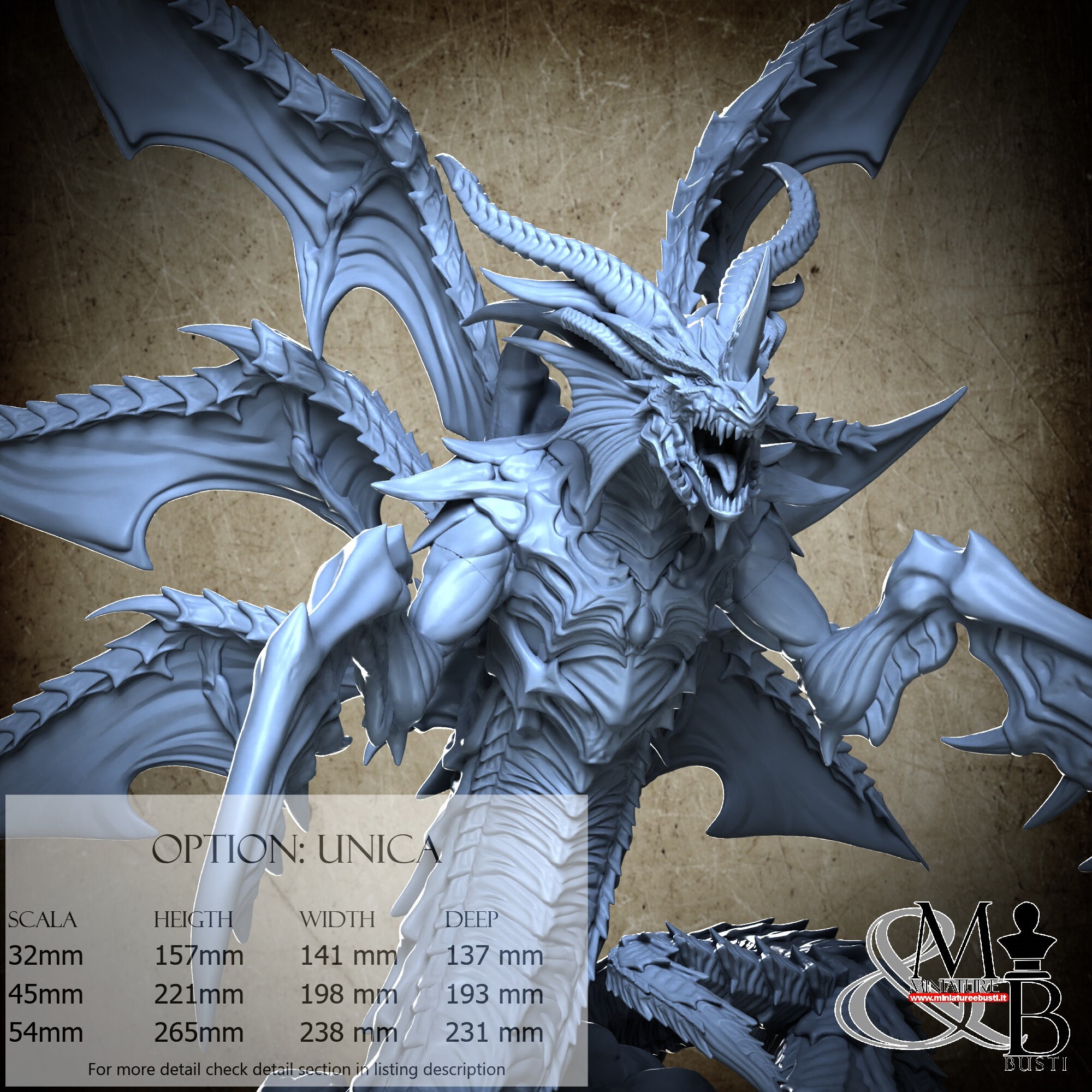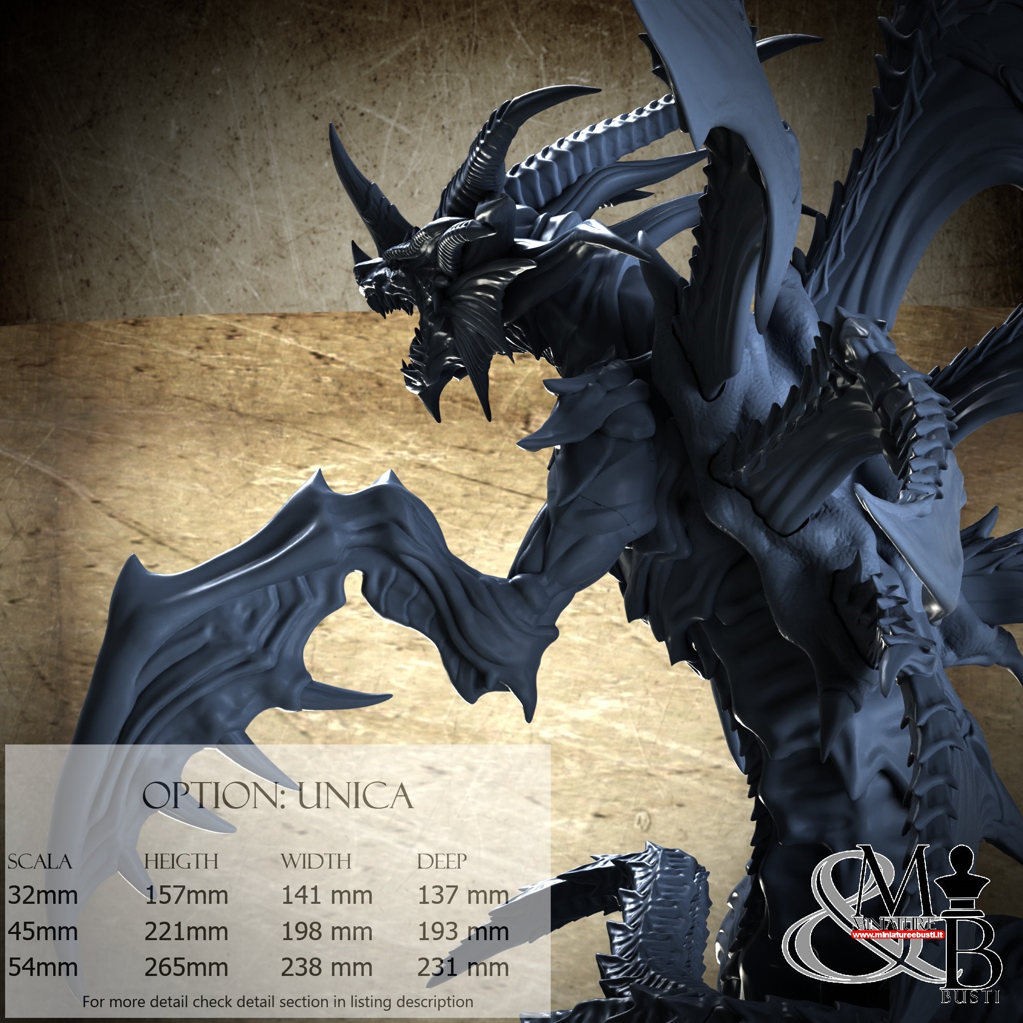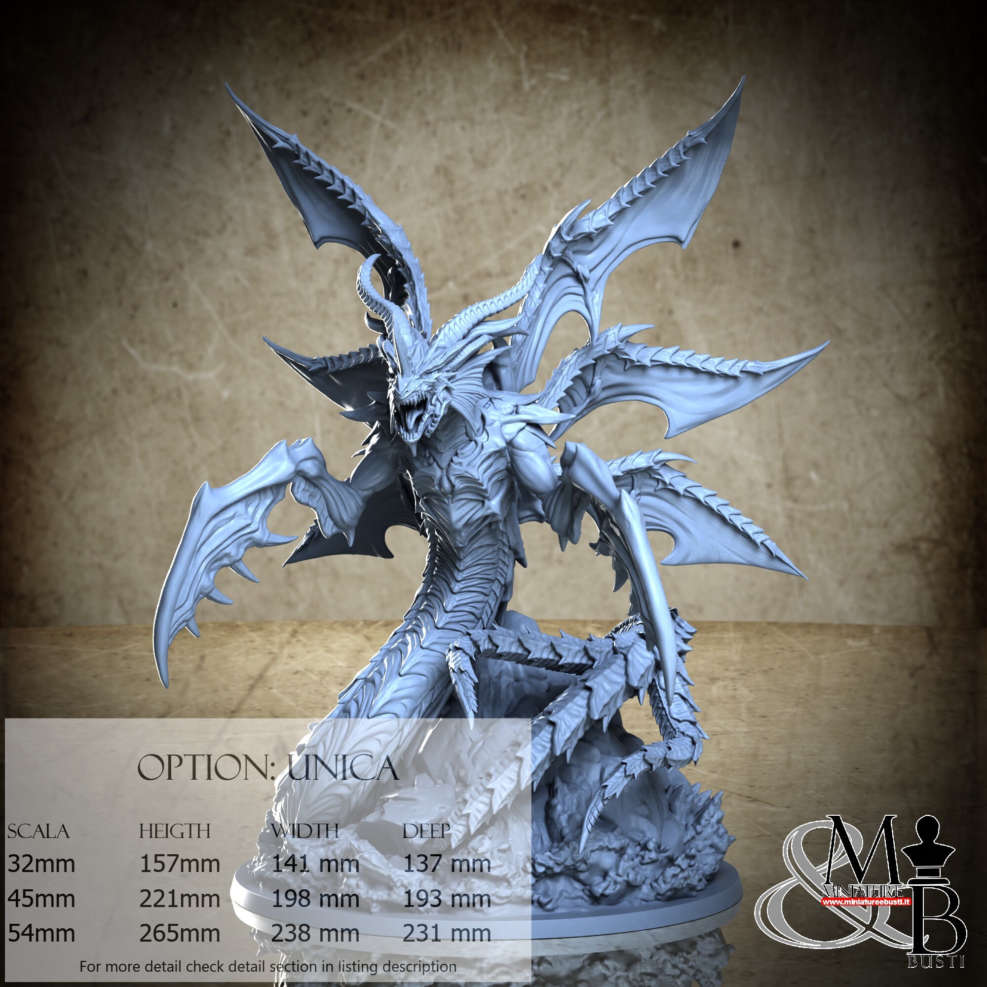 - Base (1 piece) in Resin: Height: 76 mm, Width: 141 mm, Depth: 141 mm
