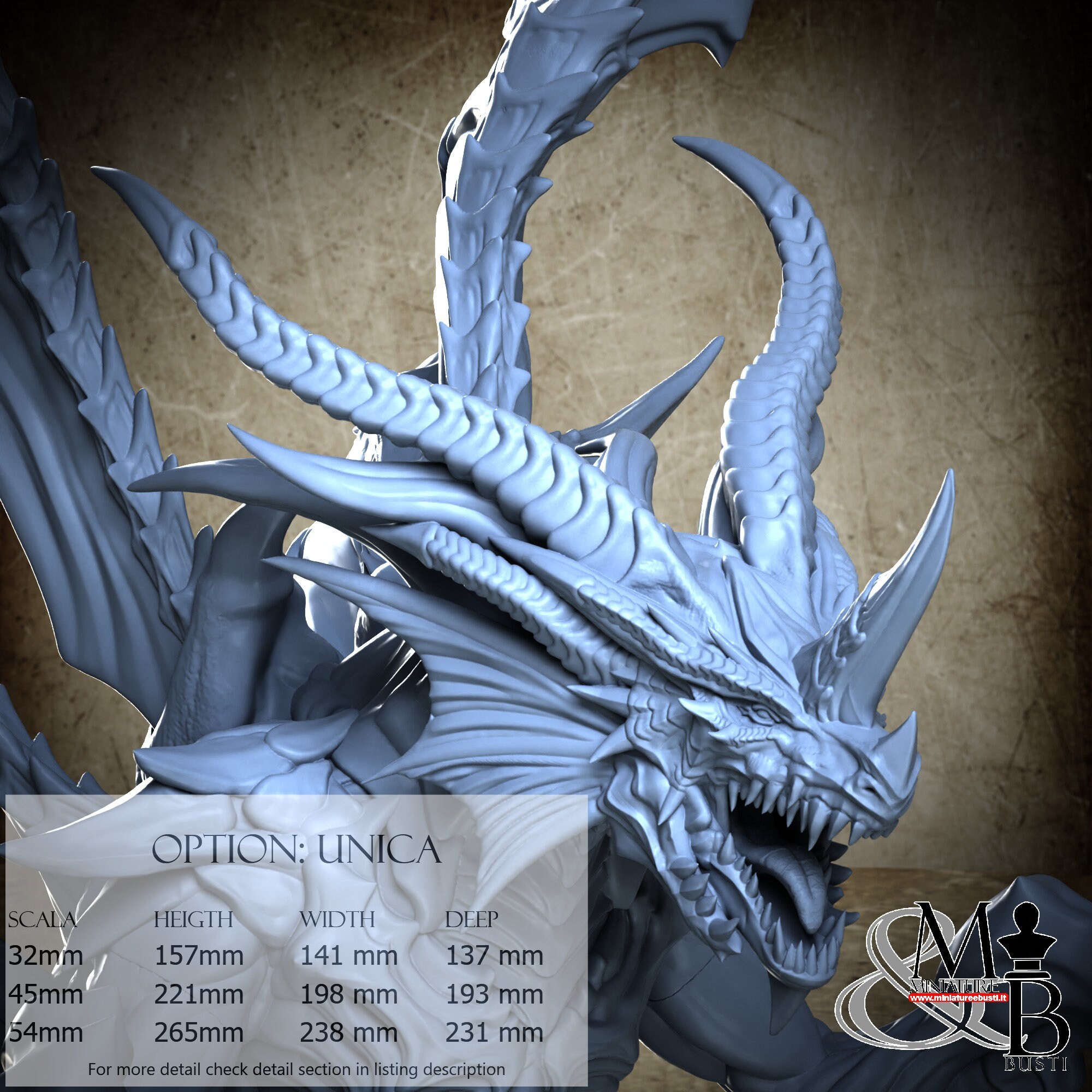 - Base (1 piece) in Resin: Height: 54 mm, Width: 100 mm, Depth: 100 mm