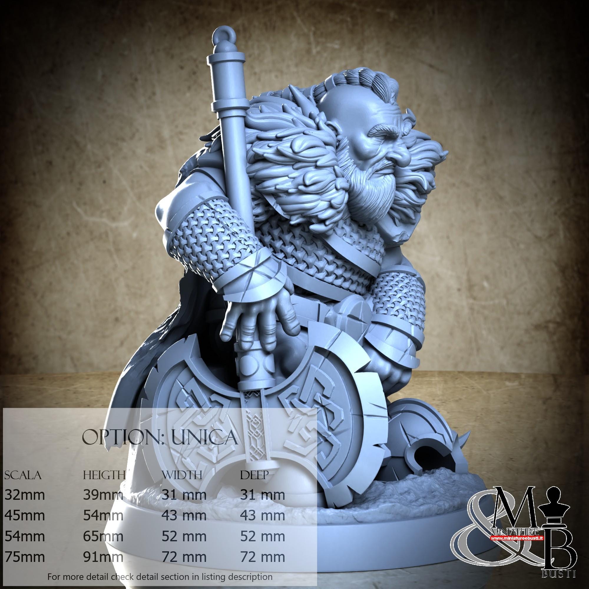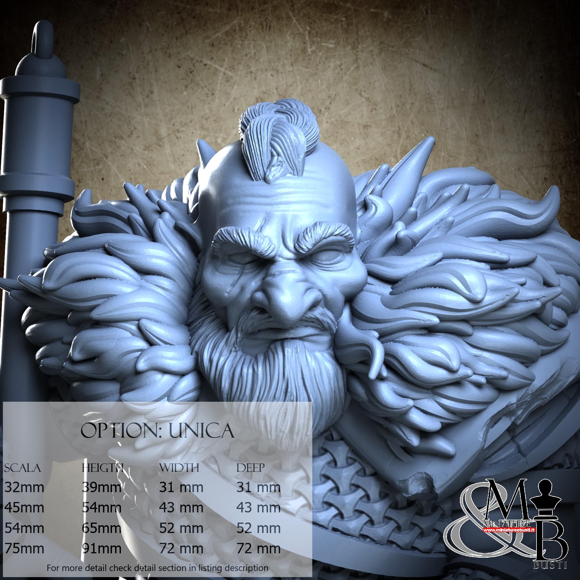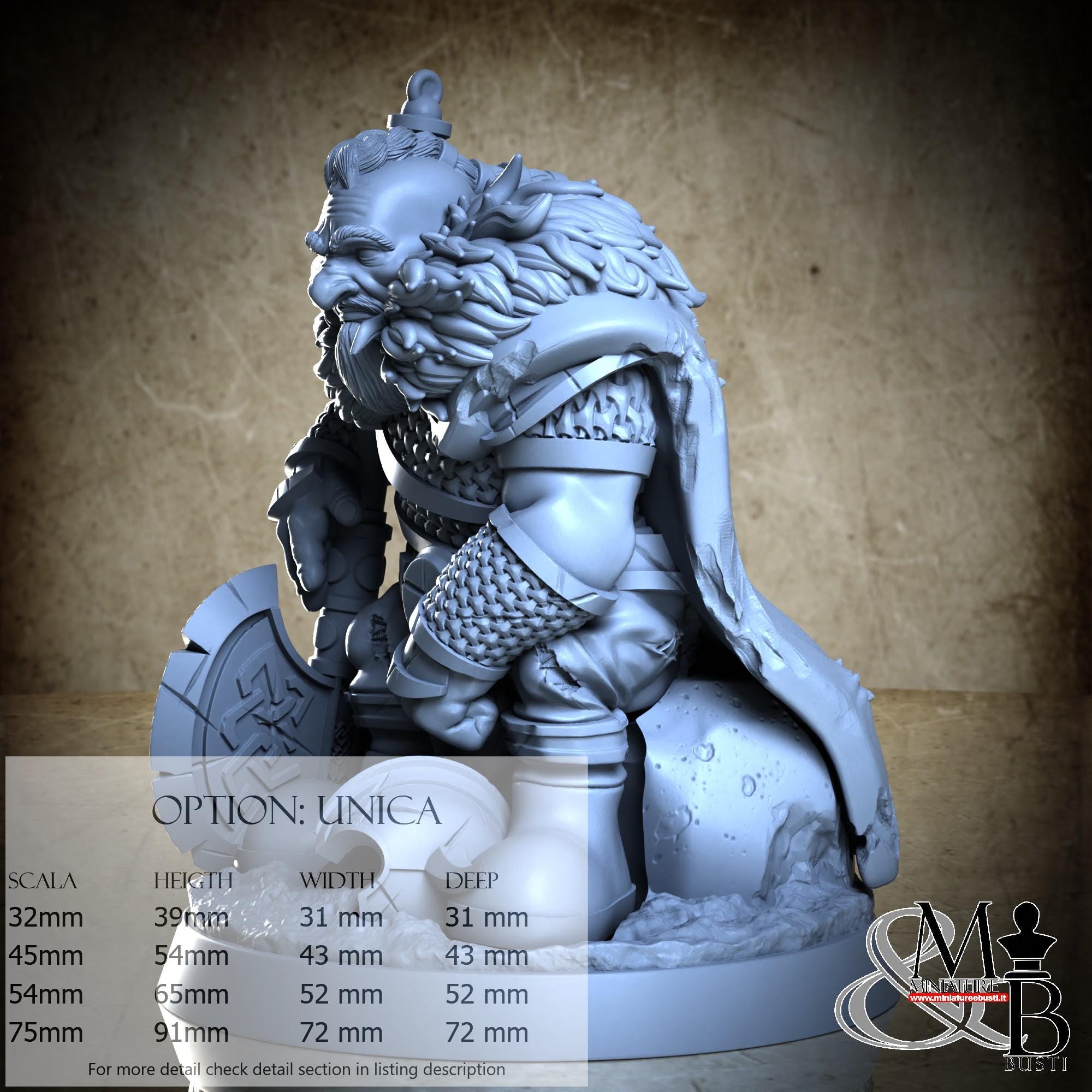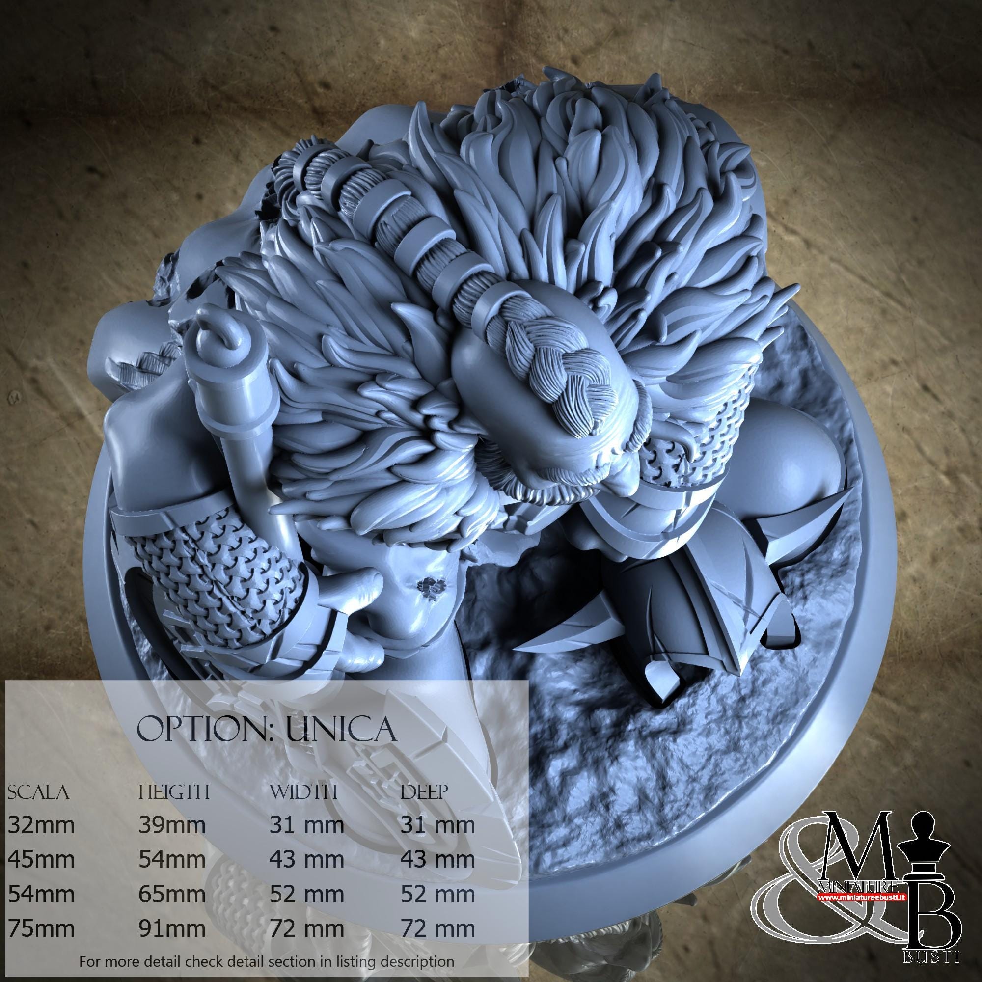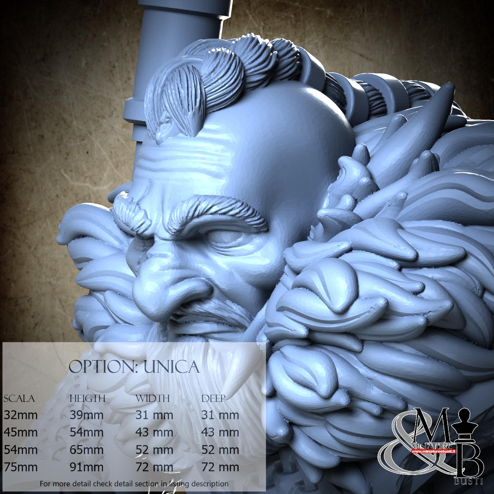 - Base (1 piece) in Resin: Height: 30 mm, Width: 72 mm, Depth: 72 mm