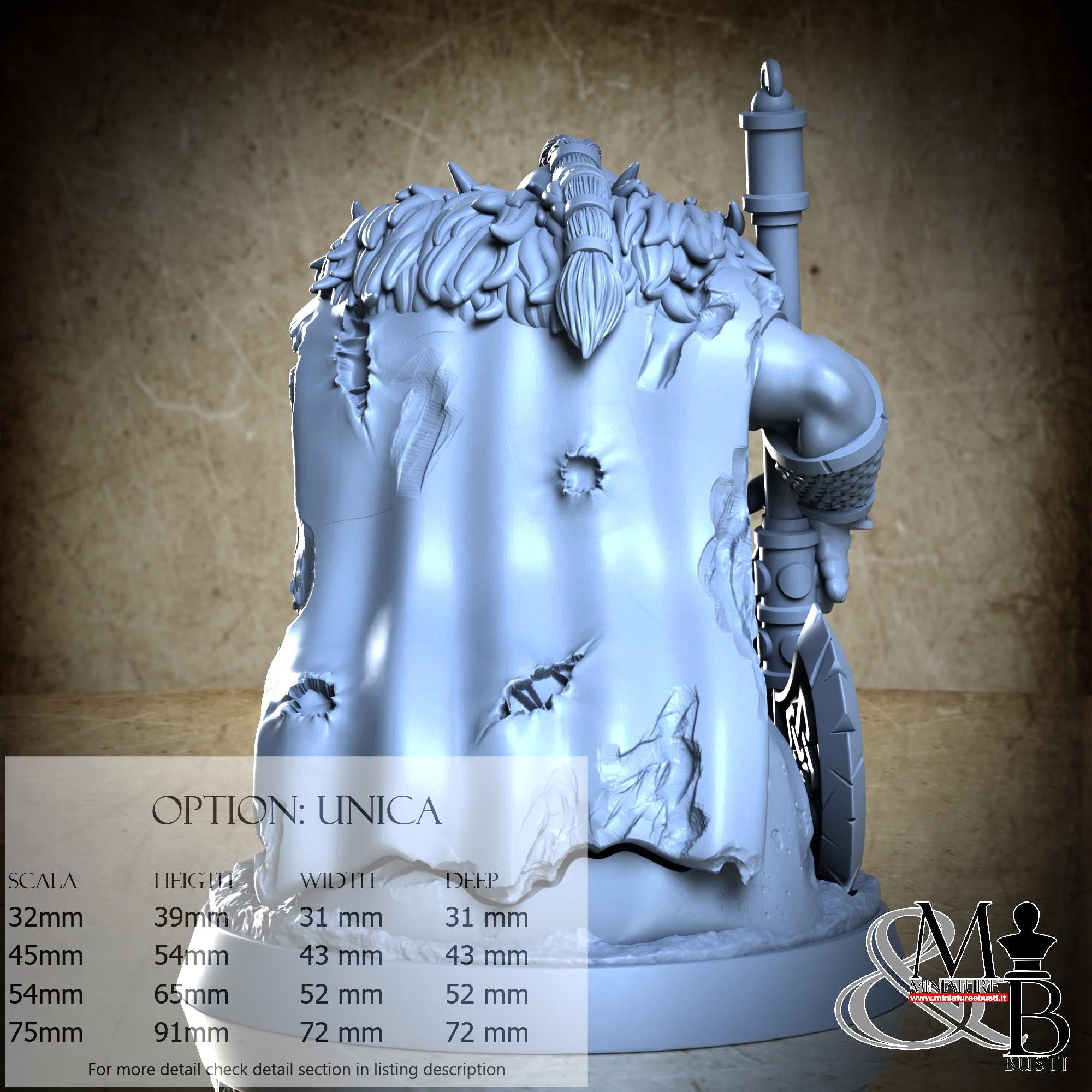 - Figure (1 piece) in Resin: Height: 84 mm, Width: 60 mm, Depth: 65 mm