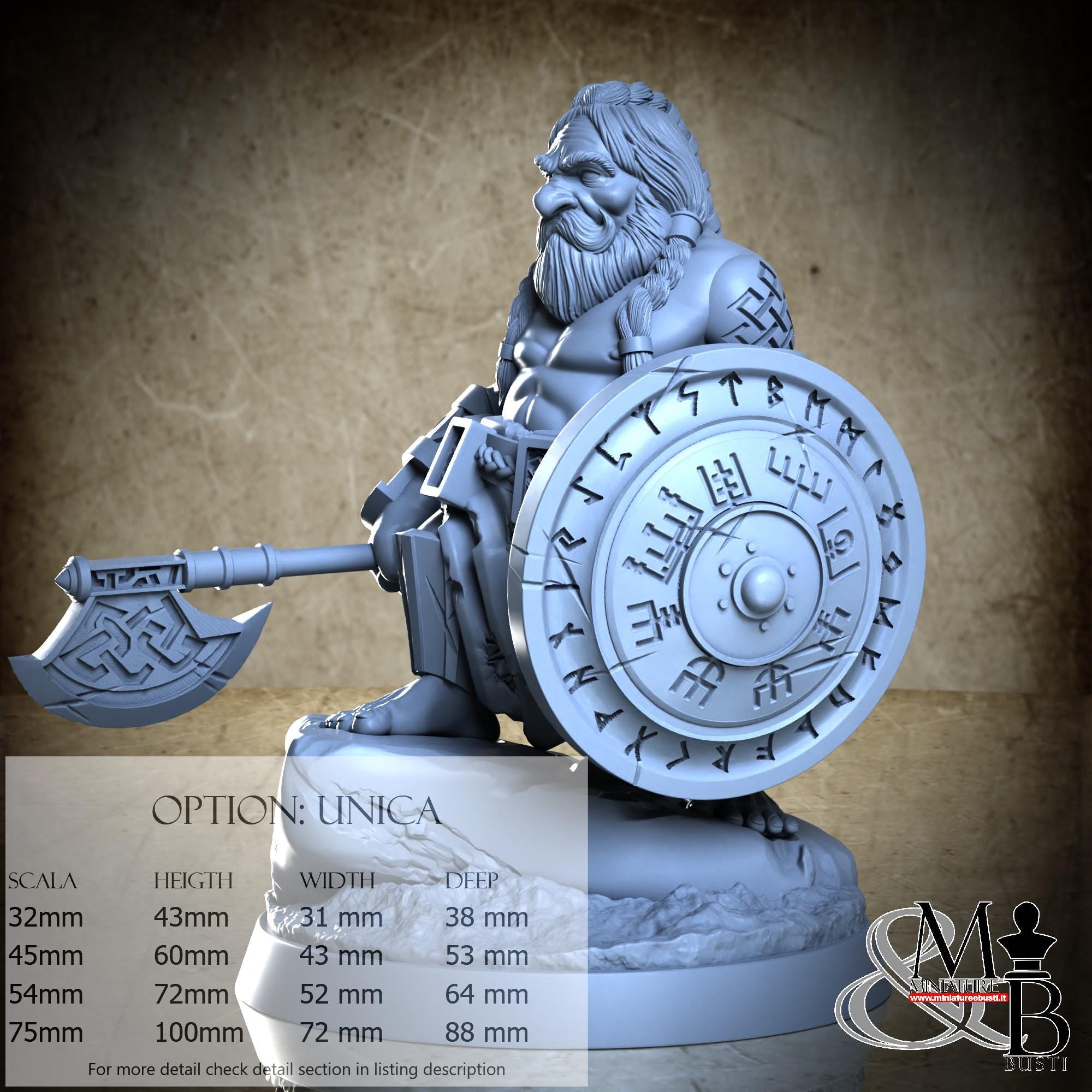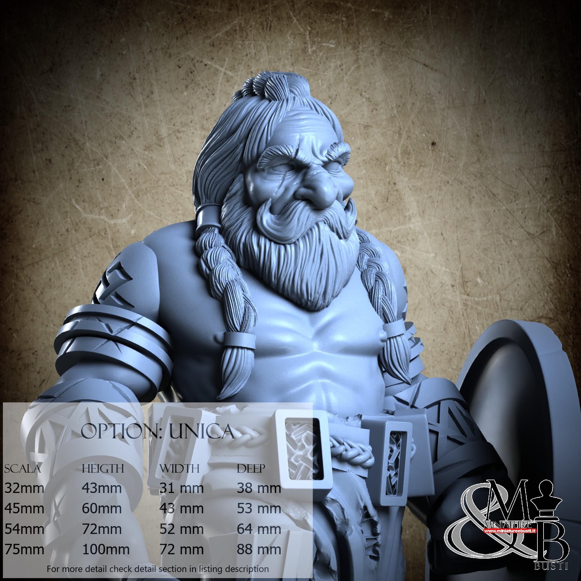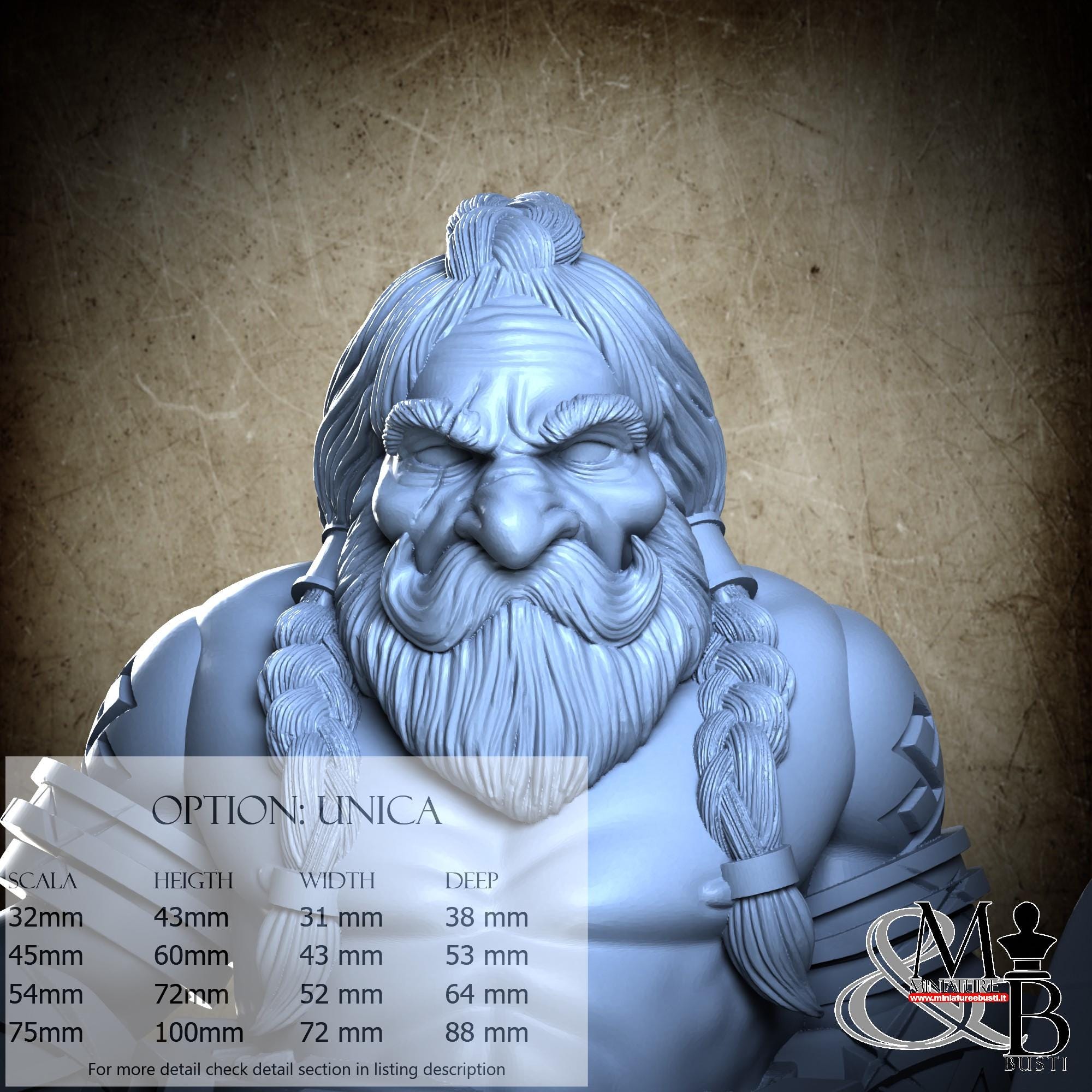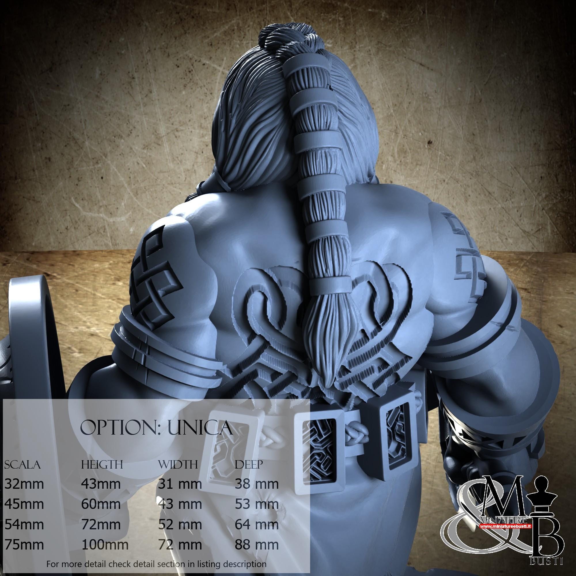 - Figure (1 piece) in Resin: Height: 60 mm, Width: 50 mm, Depth: 57 mm