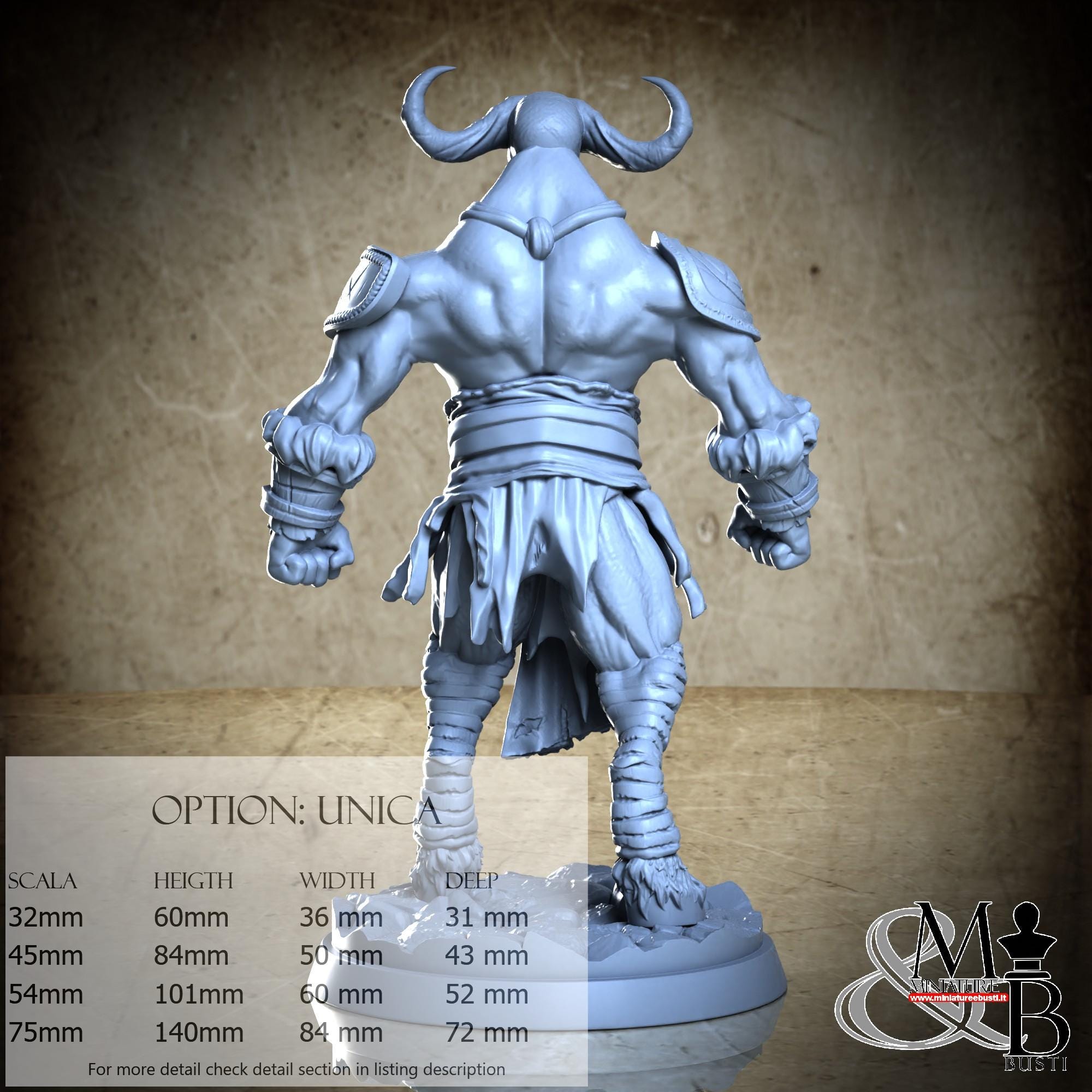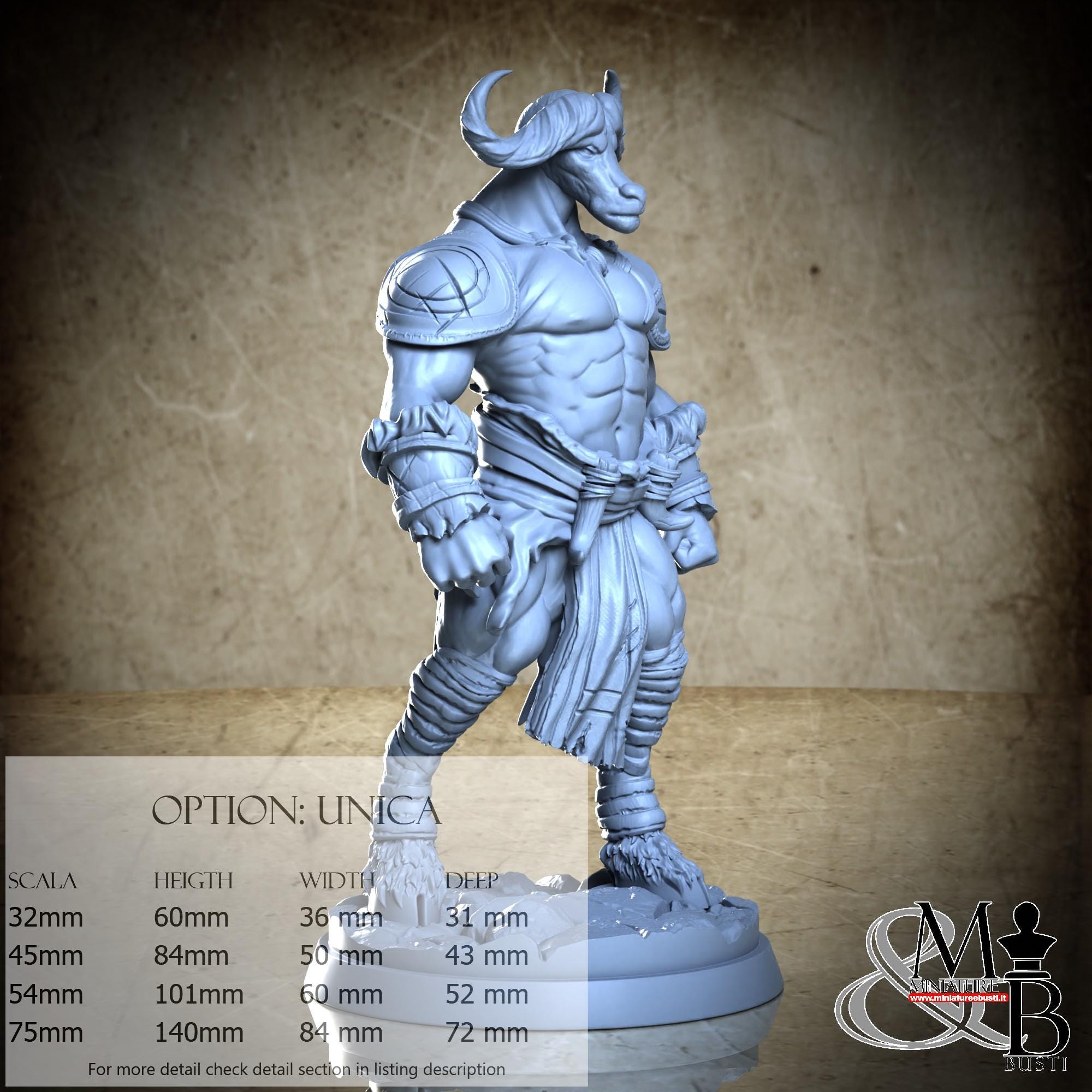 - Figure (1 piece) in Resin: Height: 78 mm, Width: 50 mm, Depth: 25 mm