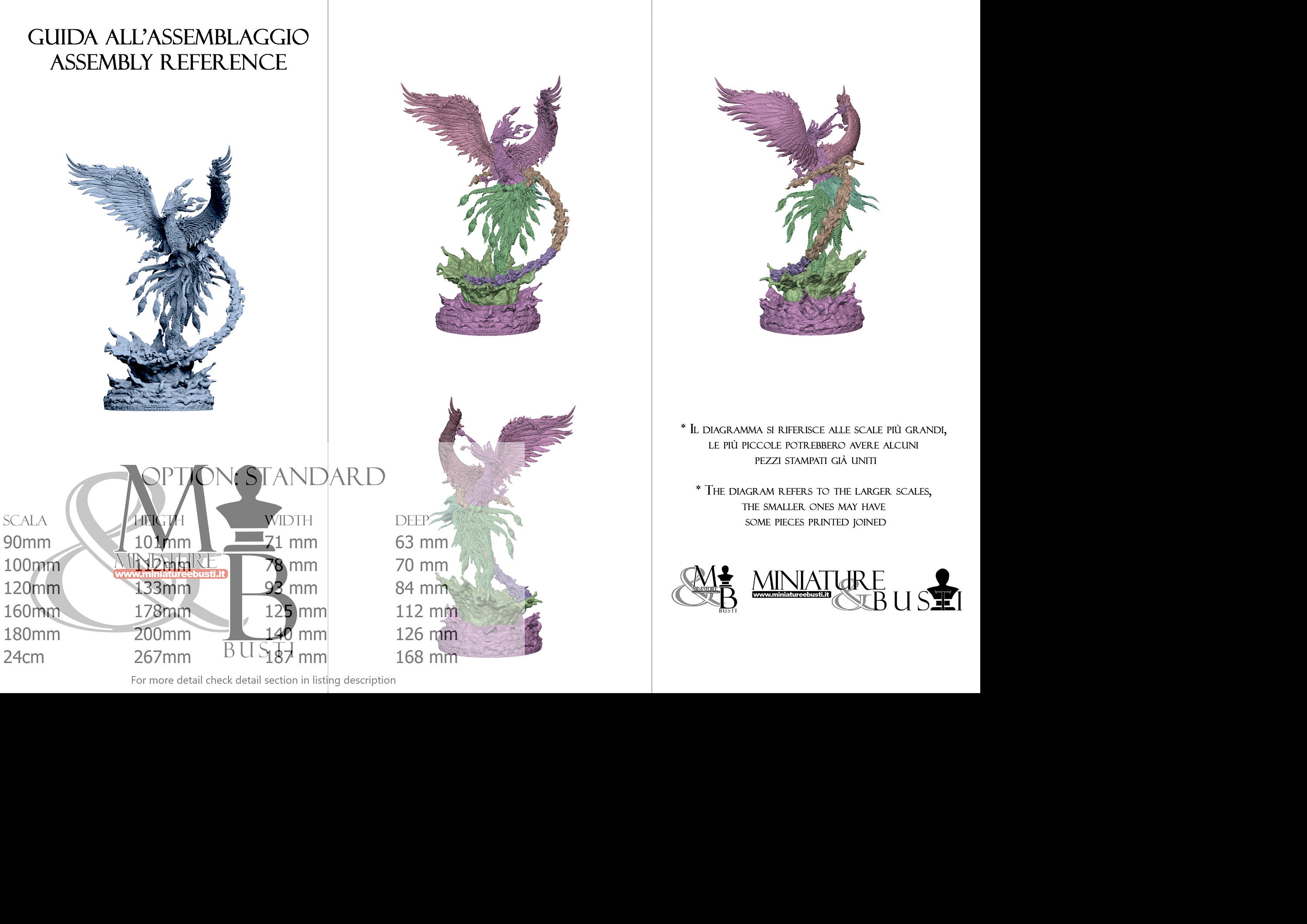 - Base (2 pieces) in Resin: Height: 32 mm, Width: 44 mm, Depth: 44 mm