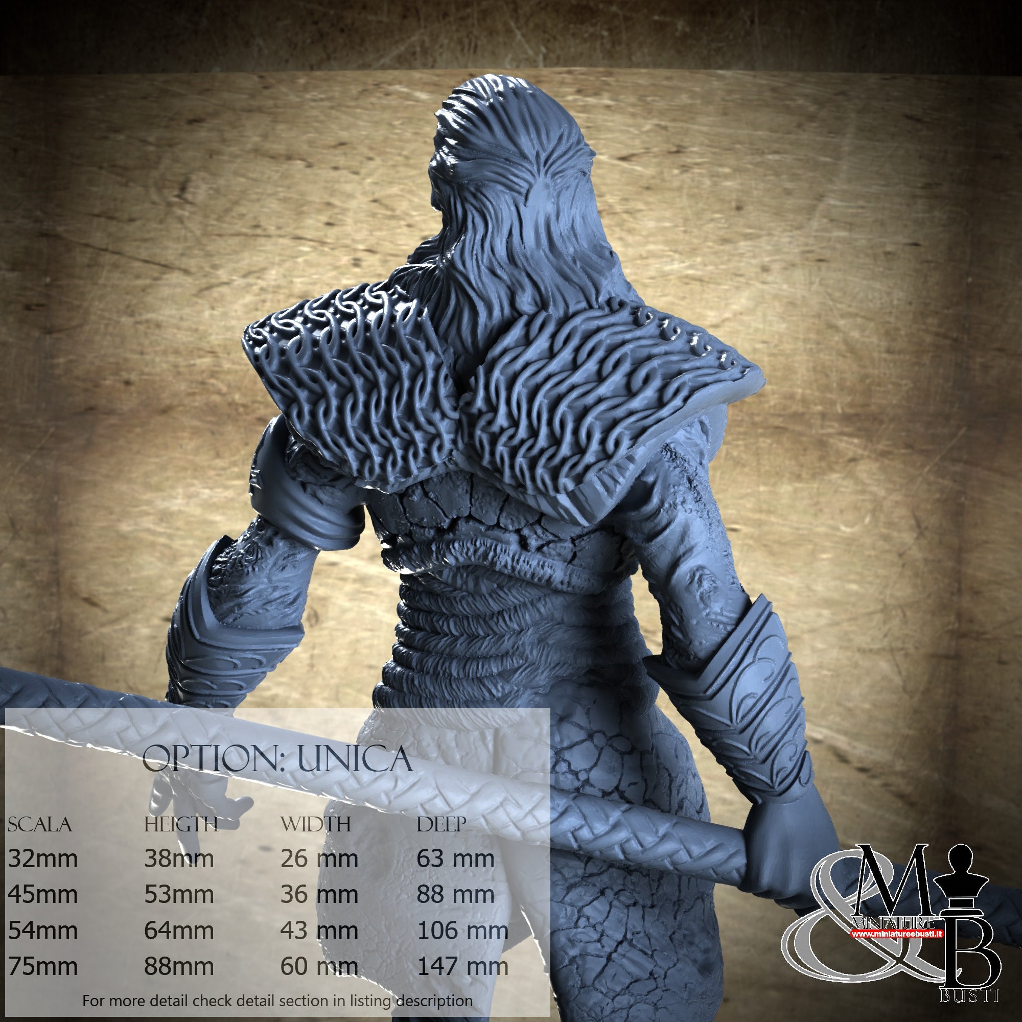 - Figure (1 piece) in Resin: Height: 34 mm, Width: 22 mm, Depth: 63 mm