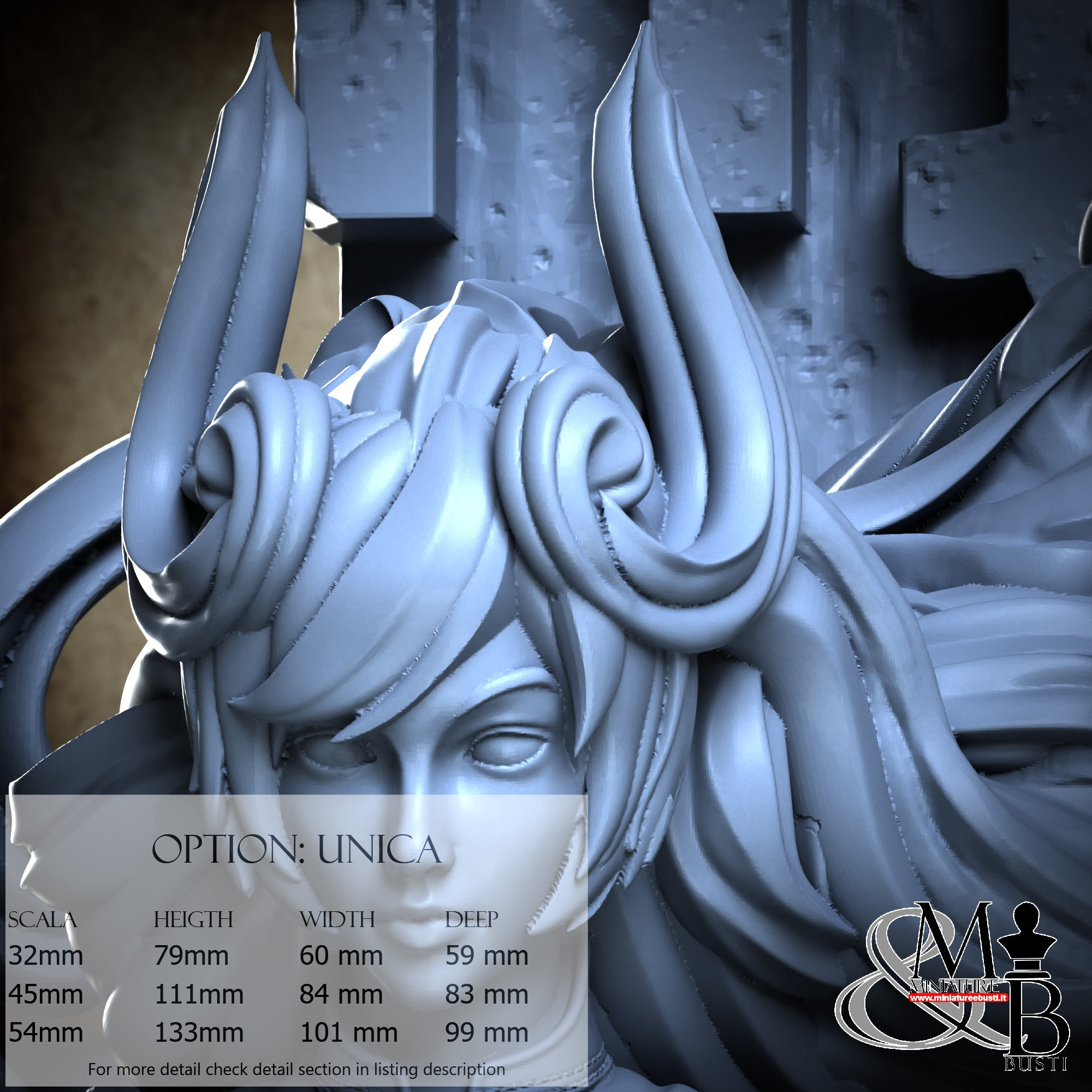 - Base (1 piece) in Resin: Height: 79 mm, Width: 59 mm, Depth: 59 mm