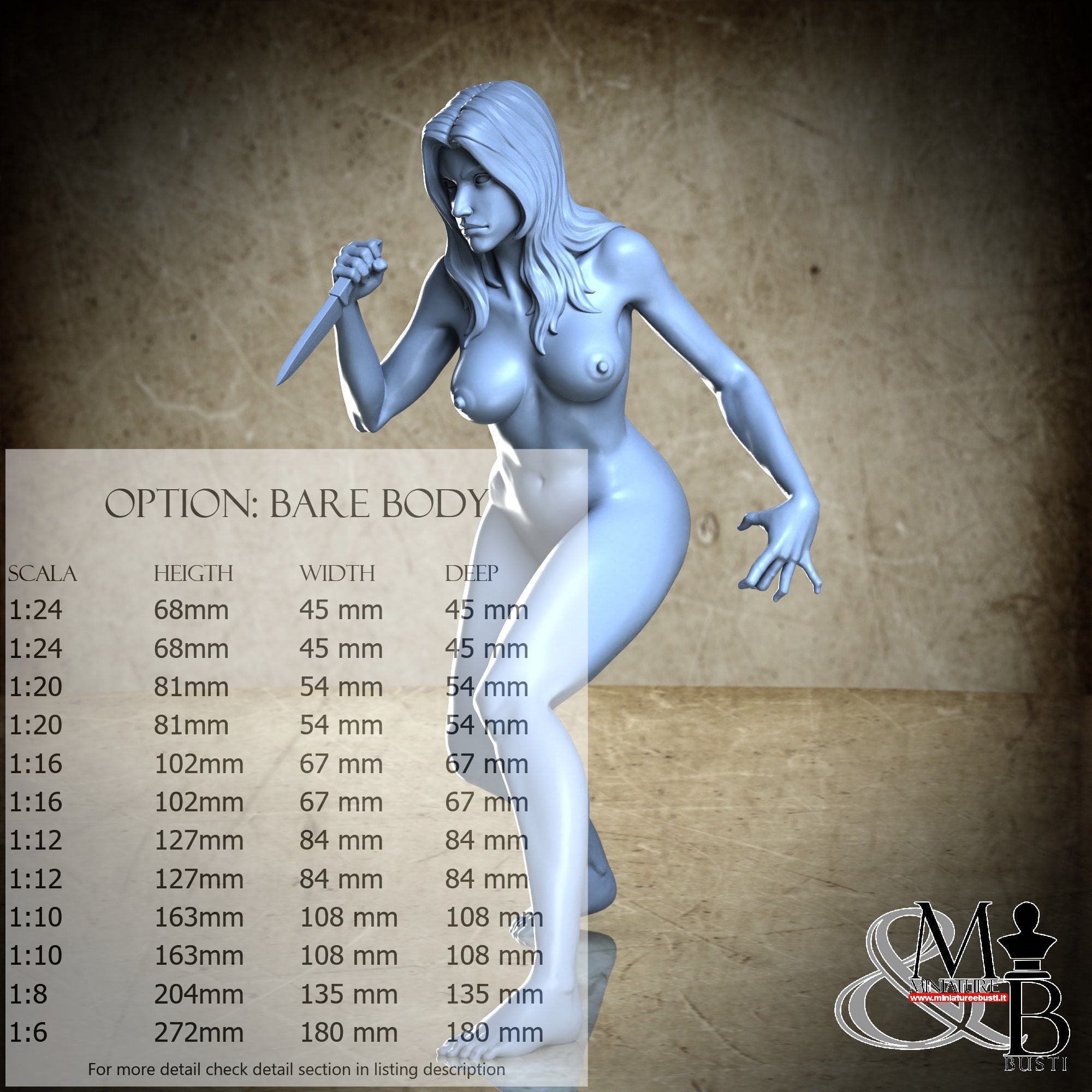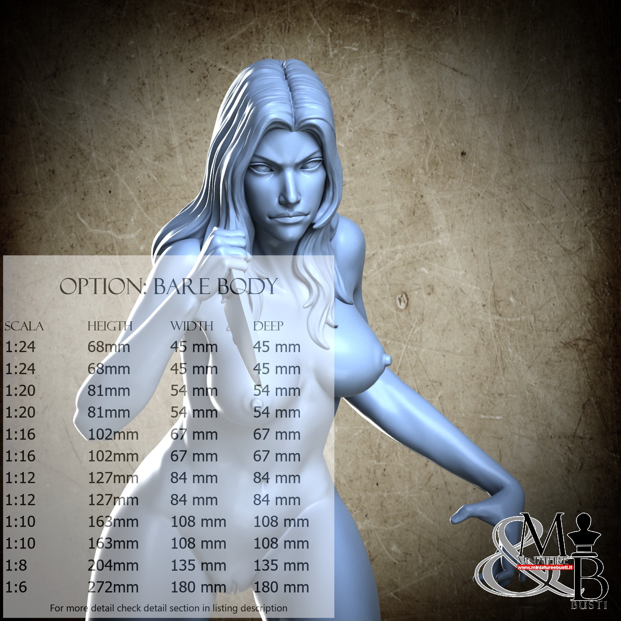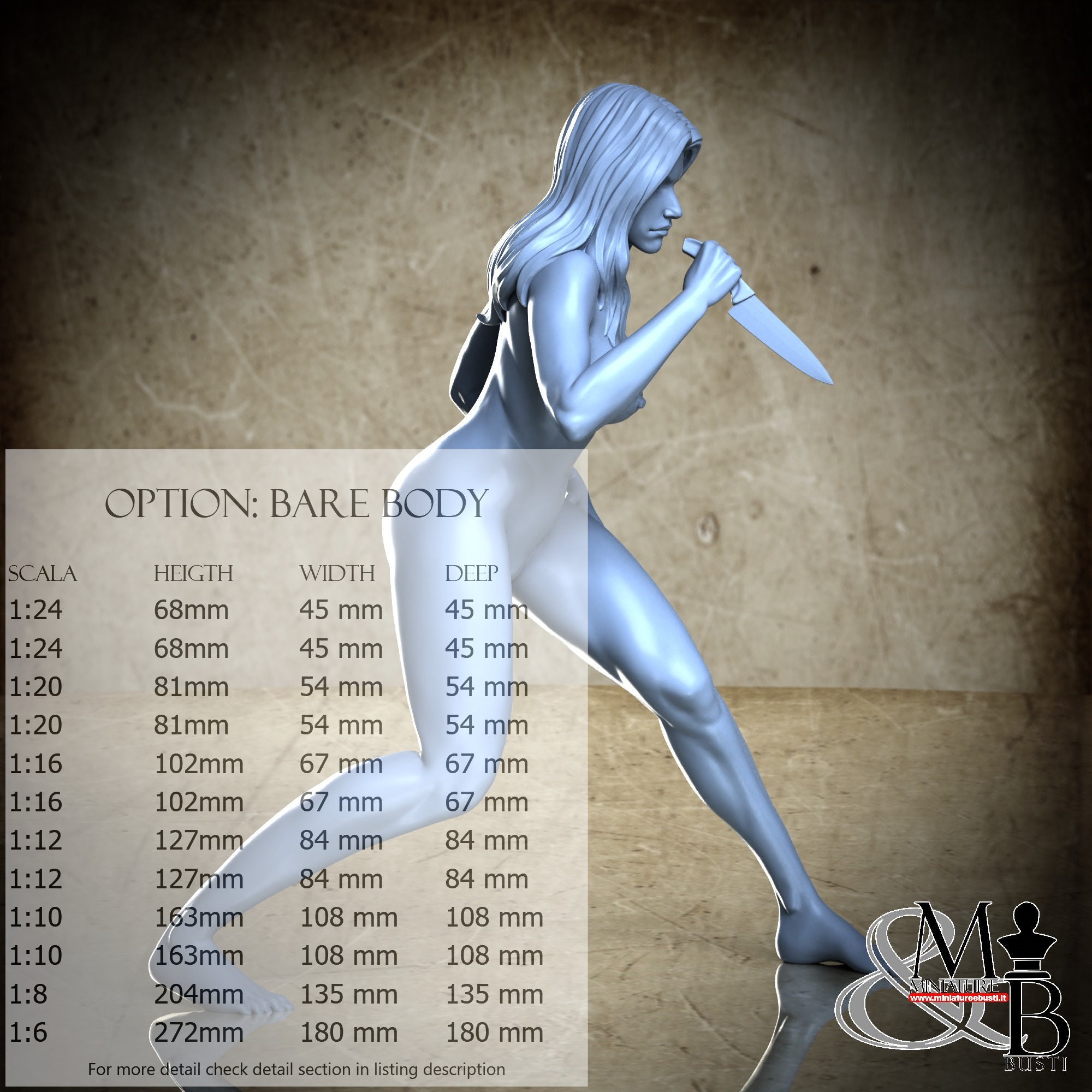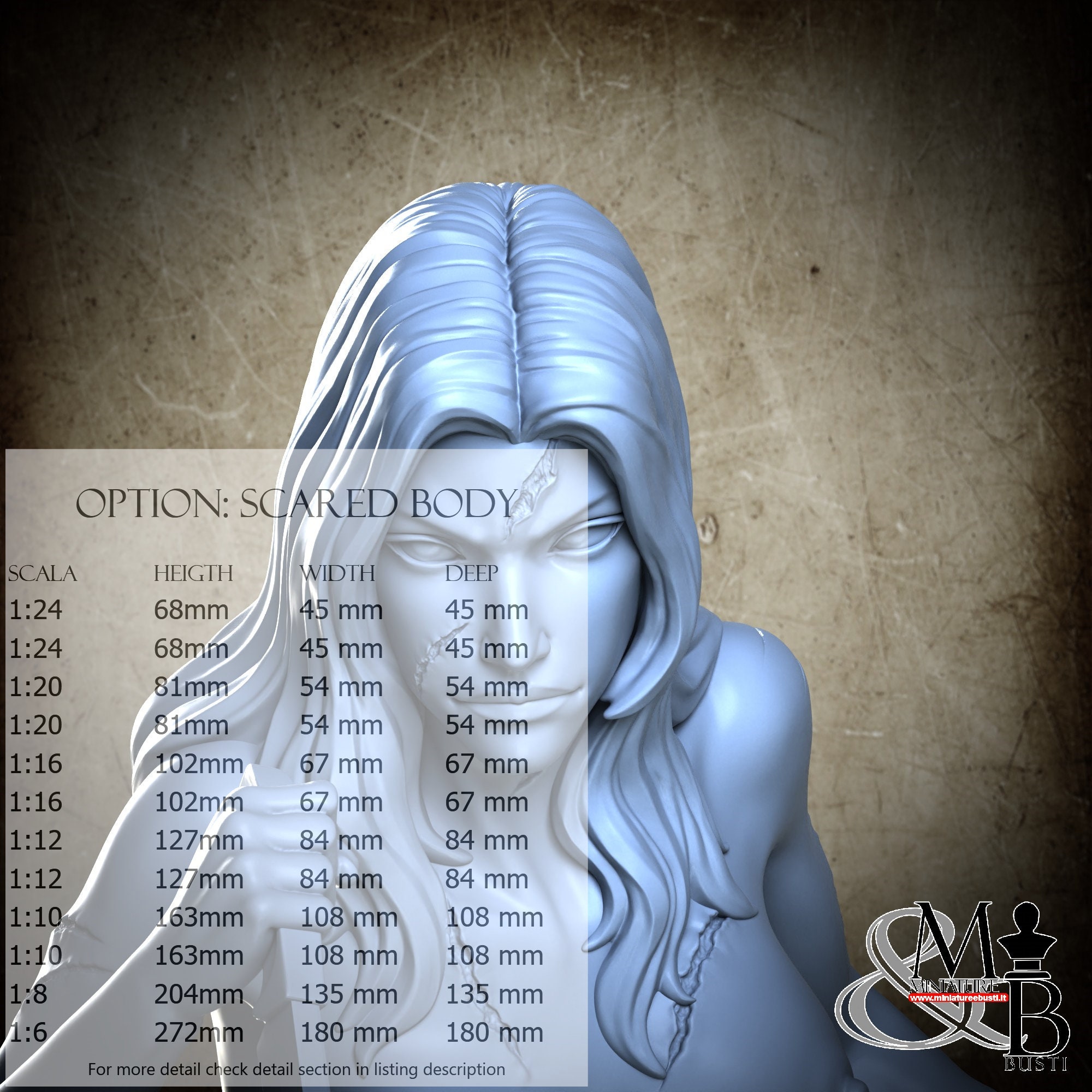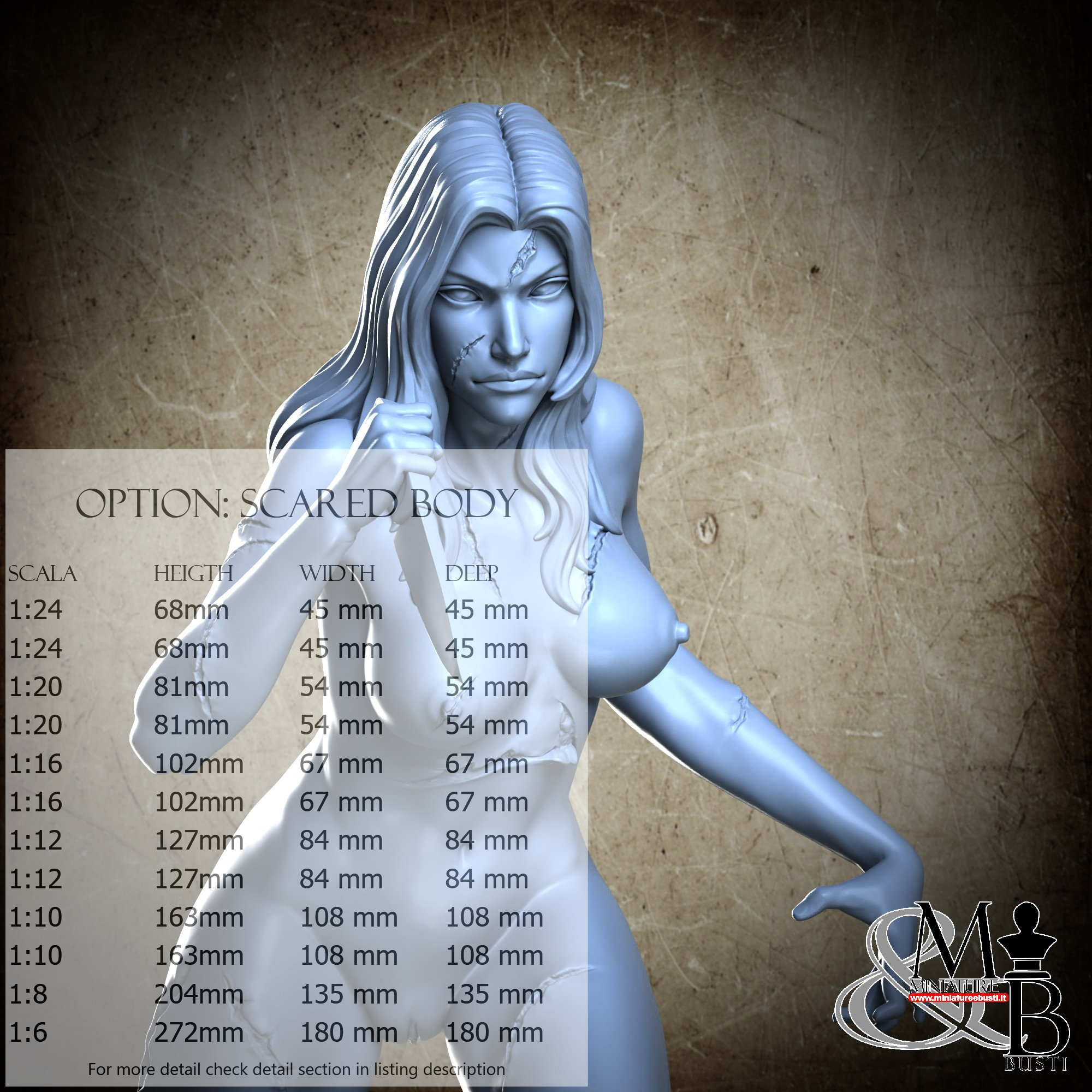 Variante Scared Body, disponibile nelle seguenti scale e costi: