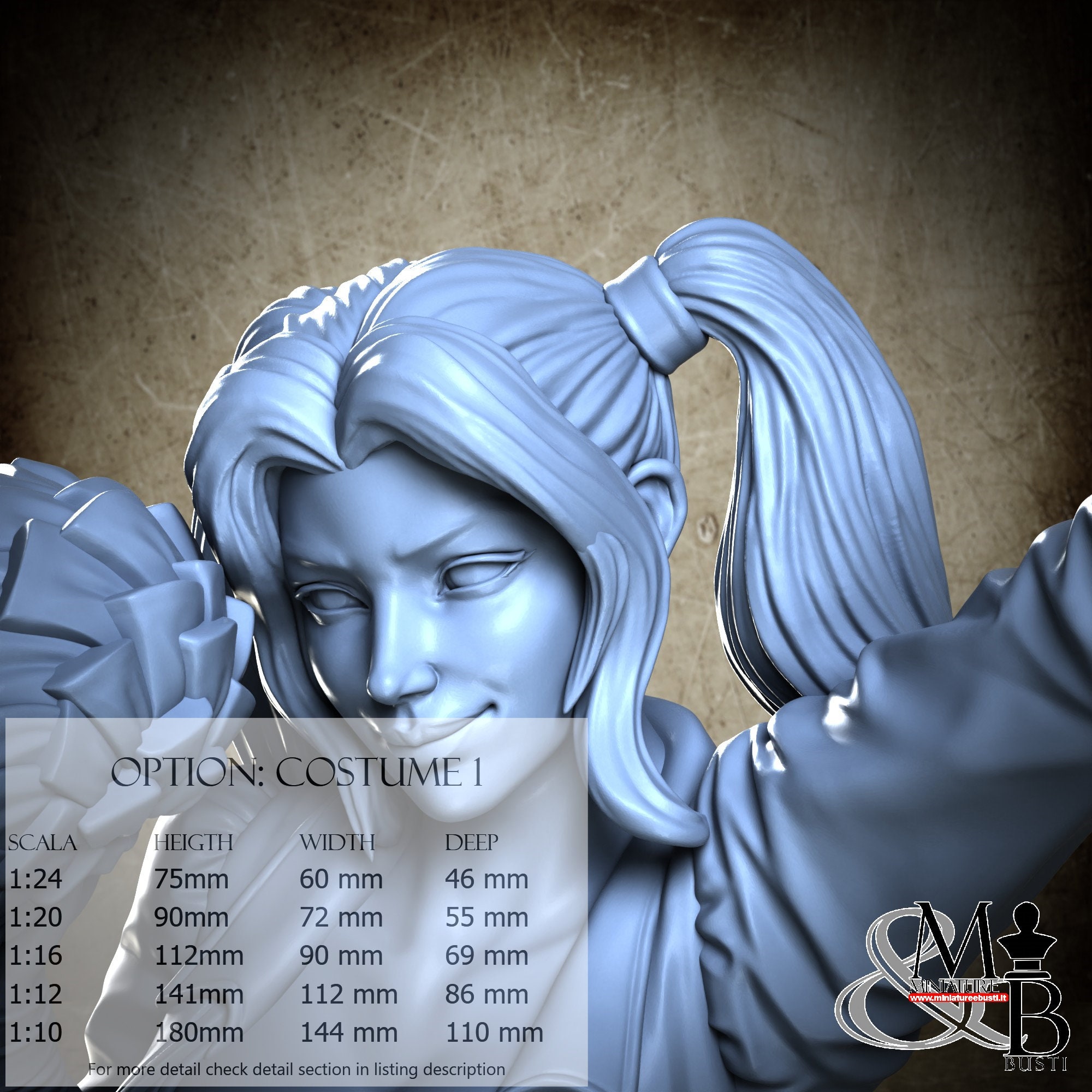 Colla, colori, stucco, e supporti per busti non sono inclusi nel prezzo.