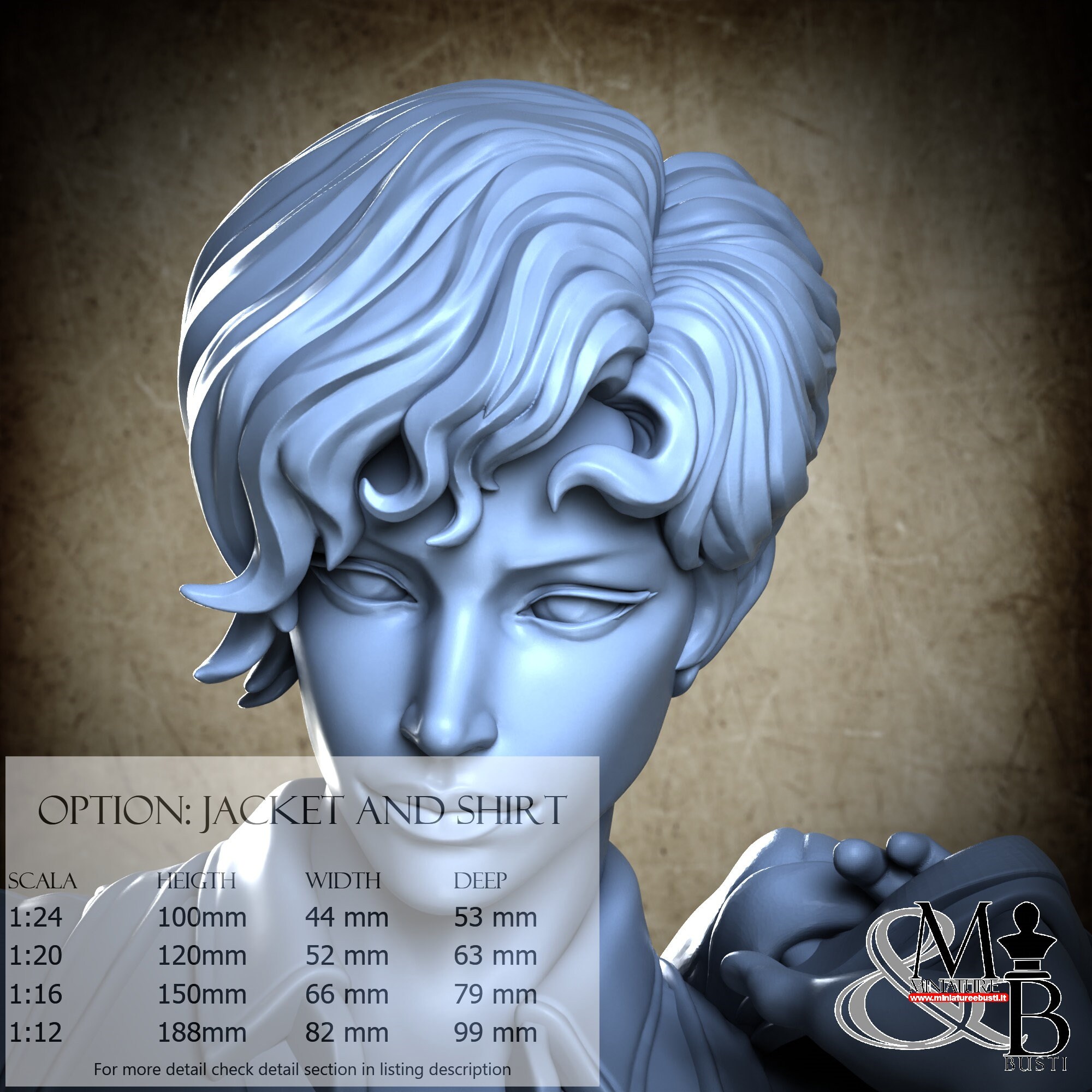 Colla, colori, stucco, e supporti per busti non sono inclusi nel prezzo.